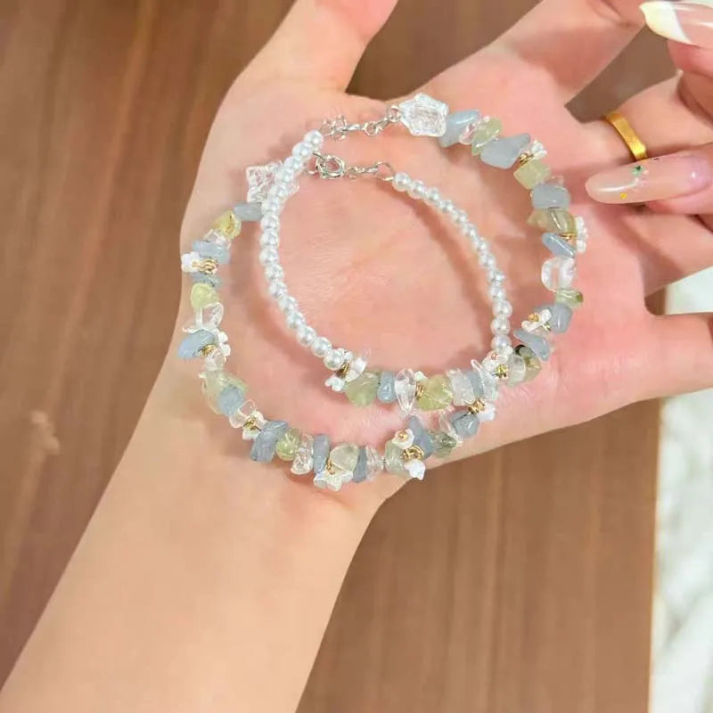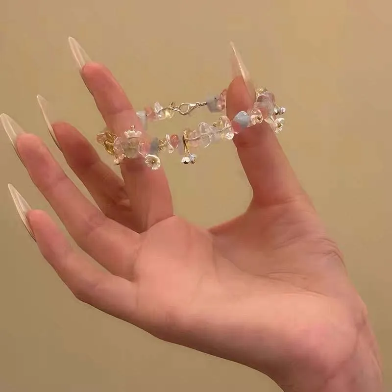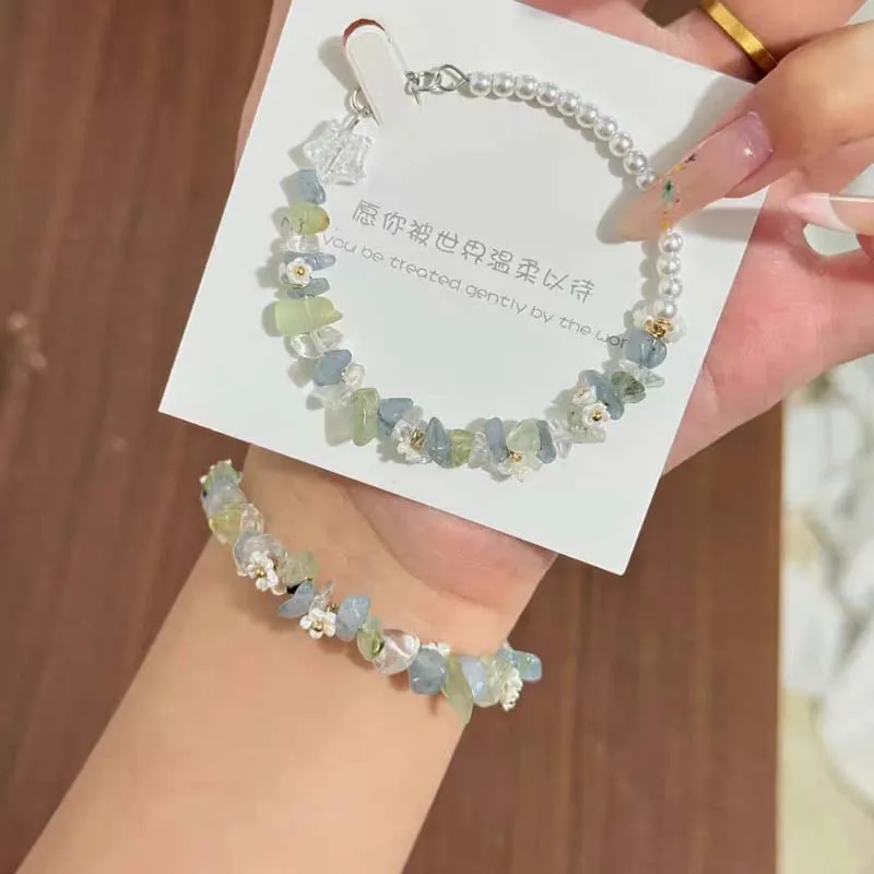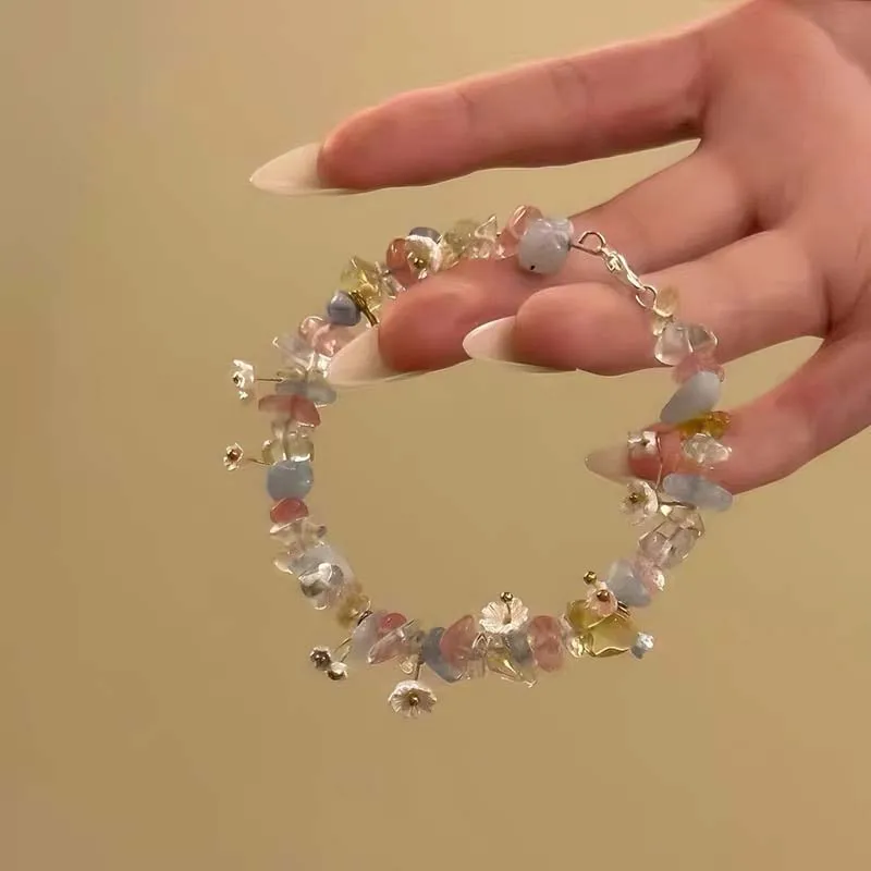 Daiiibabyyy Sweet Pearl Flower Bracelets for Women Exquisite Colorful Irregular Crystal Gravel Beaded Charm Bracelets Wedding Jewelry