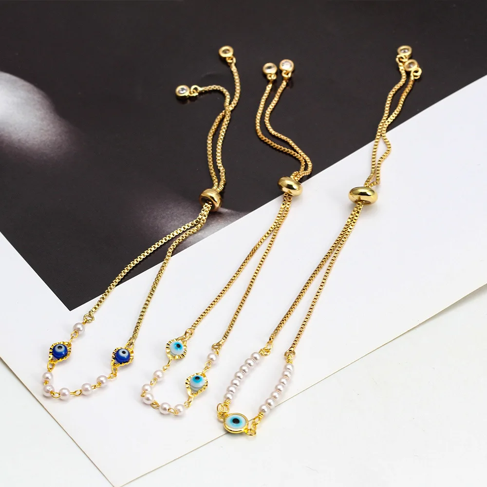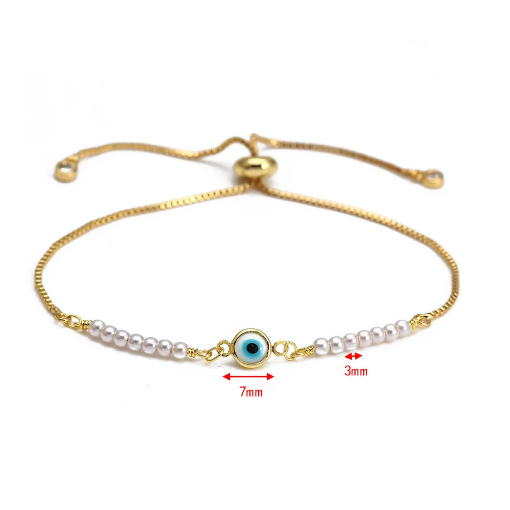 Daiiibabyyy Turkish Lucky Evil Eye Pearl Charm Bracelet for Women Girls Handmade Friendship Bracelet Wish Jewelry Gift