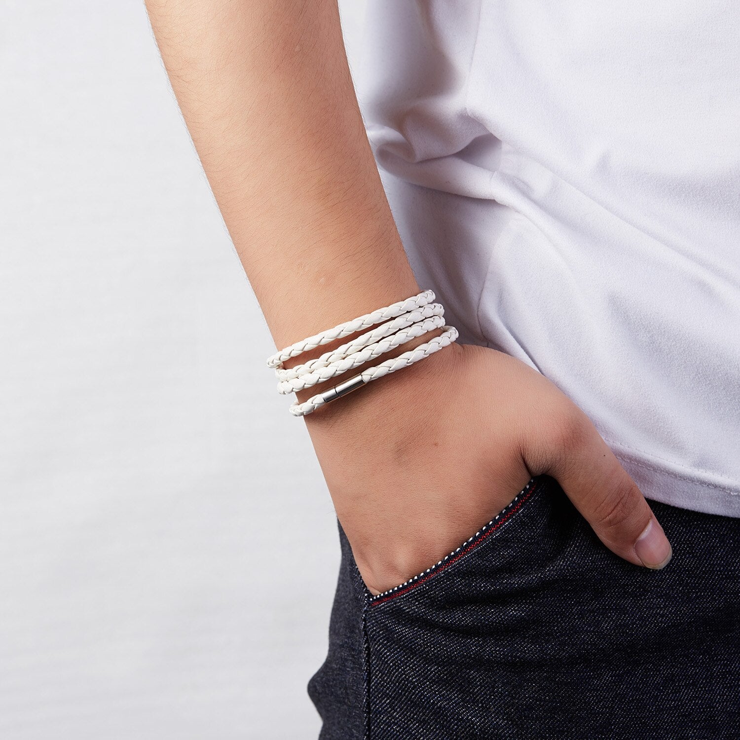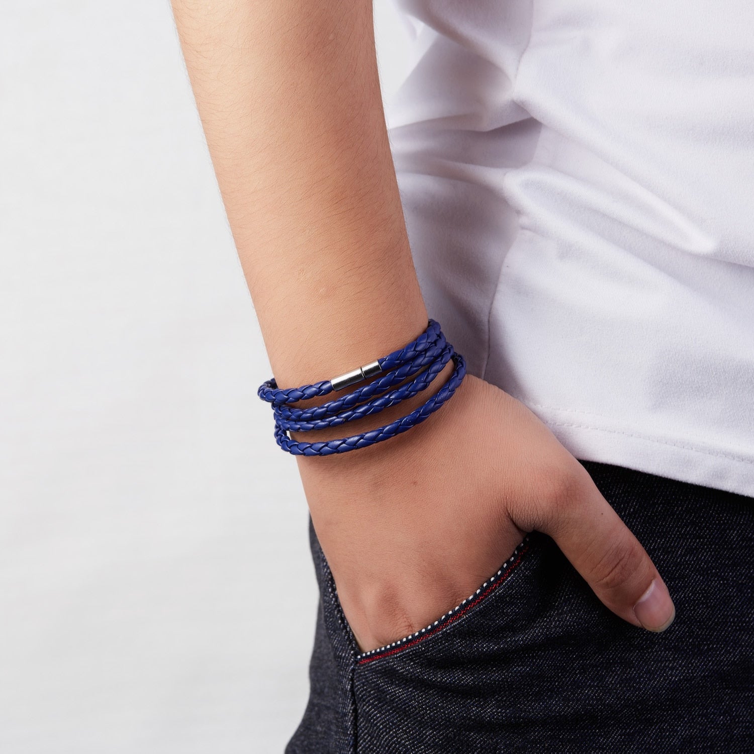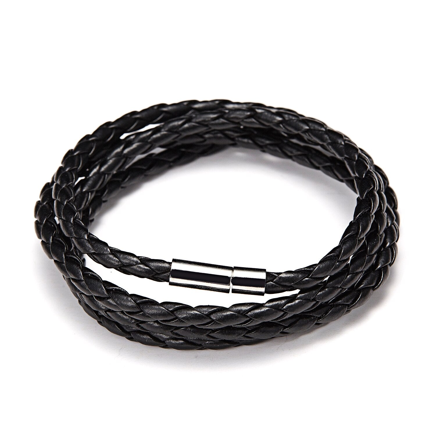Four Layer Braided Leather Bracelet For Men Fashion 4mm Thick Handmade Woven Clasps Charm Bracelet Lucky Jewelry Accessary Gifts
