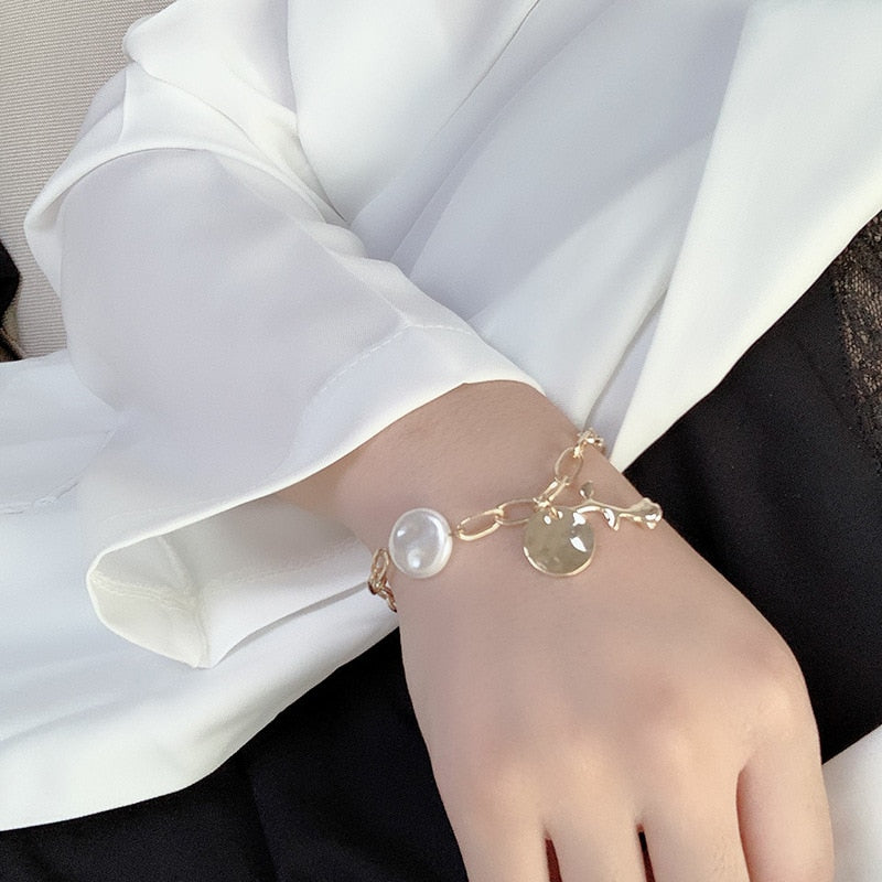 South Korea's new metal pearl bracelet, rose pendant, simple fashion women's bracelet 2022 new jewelry