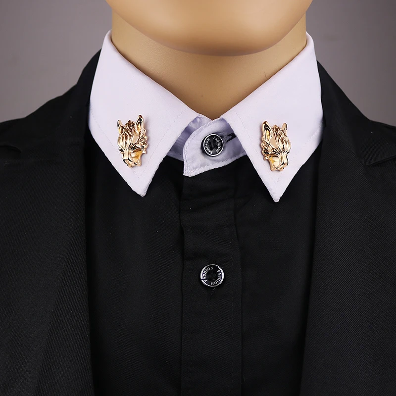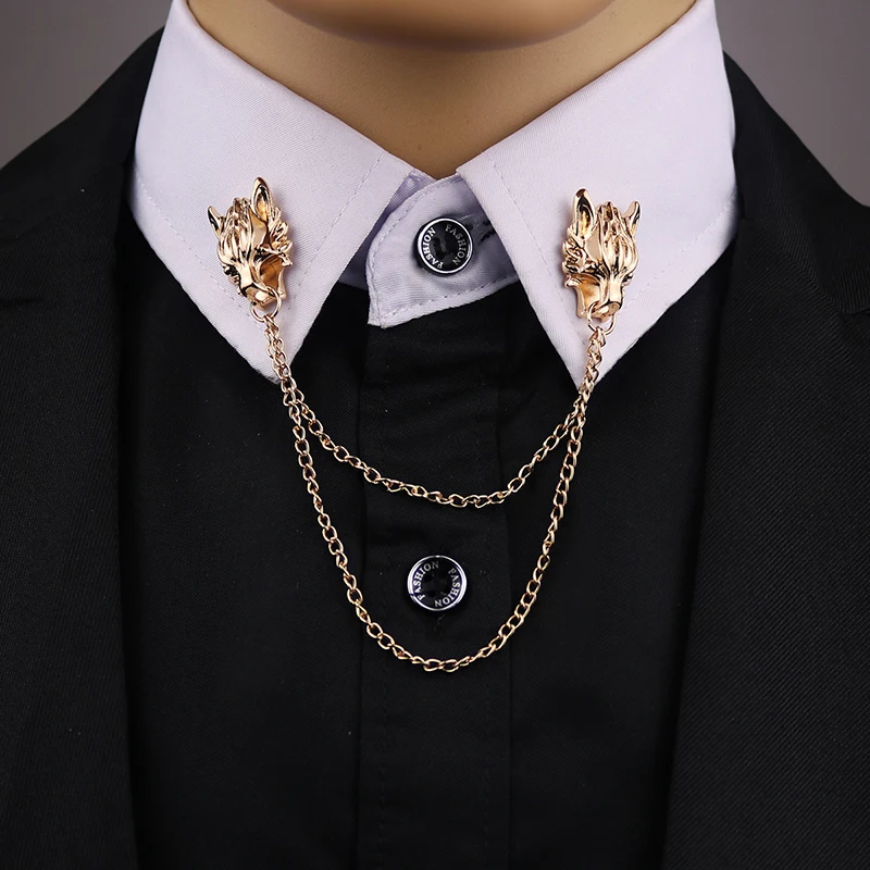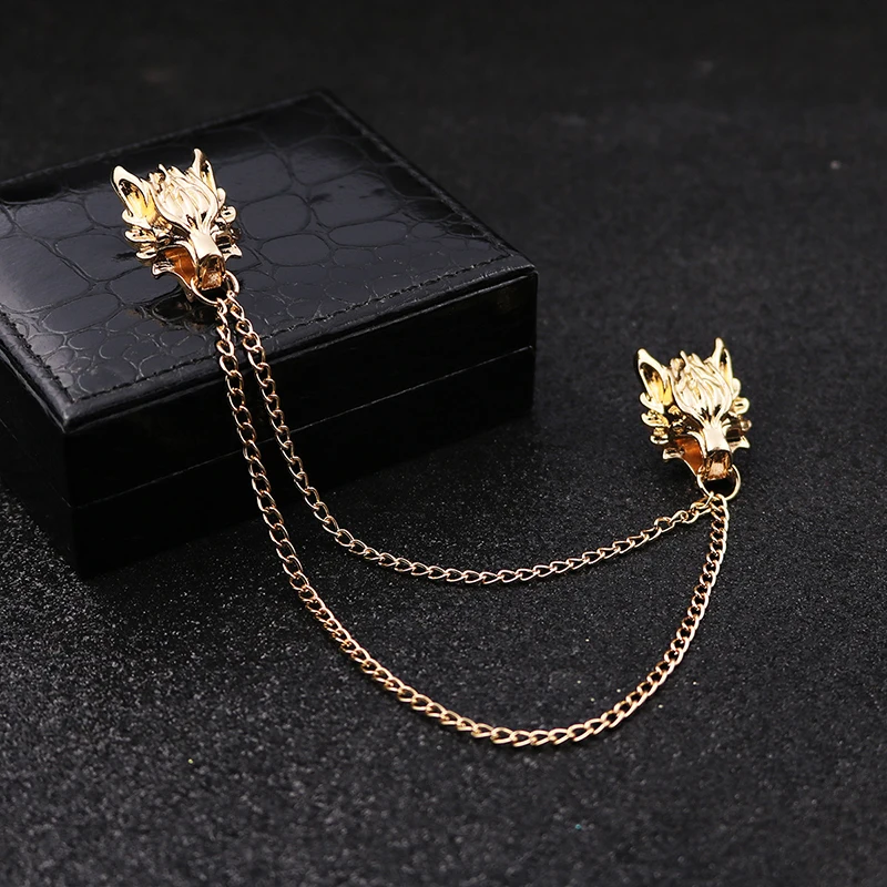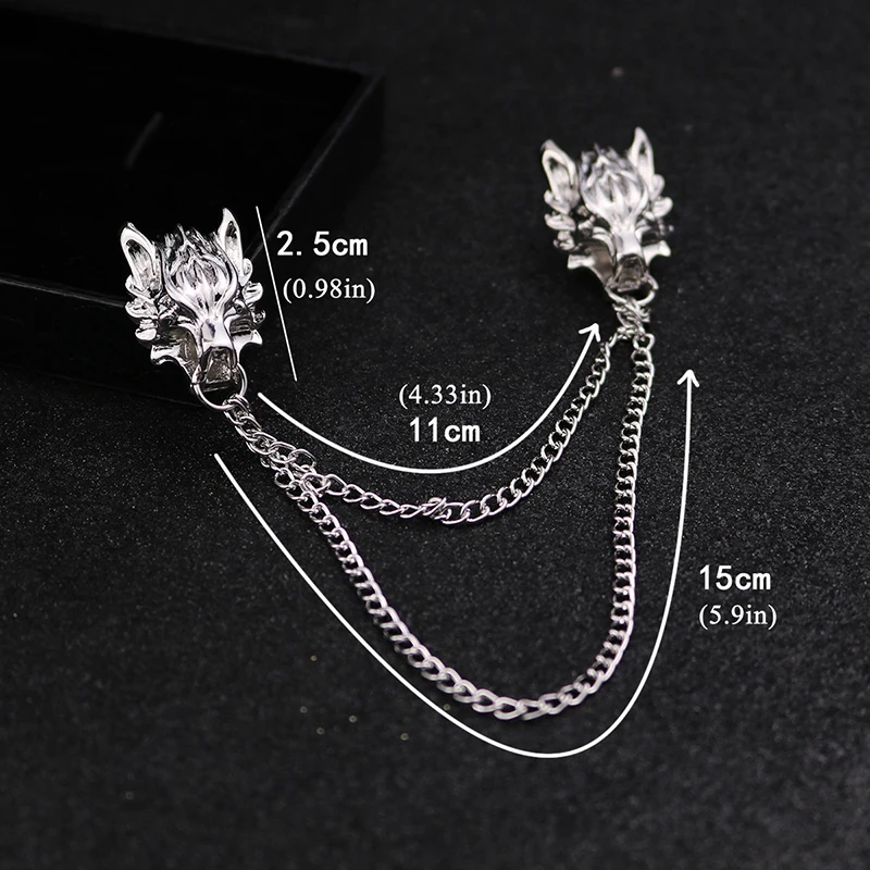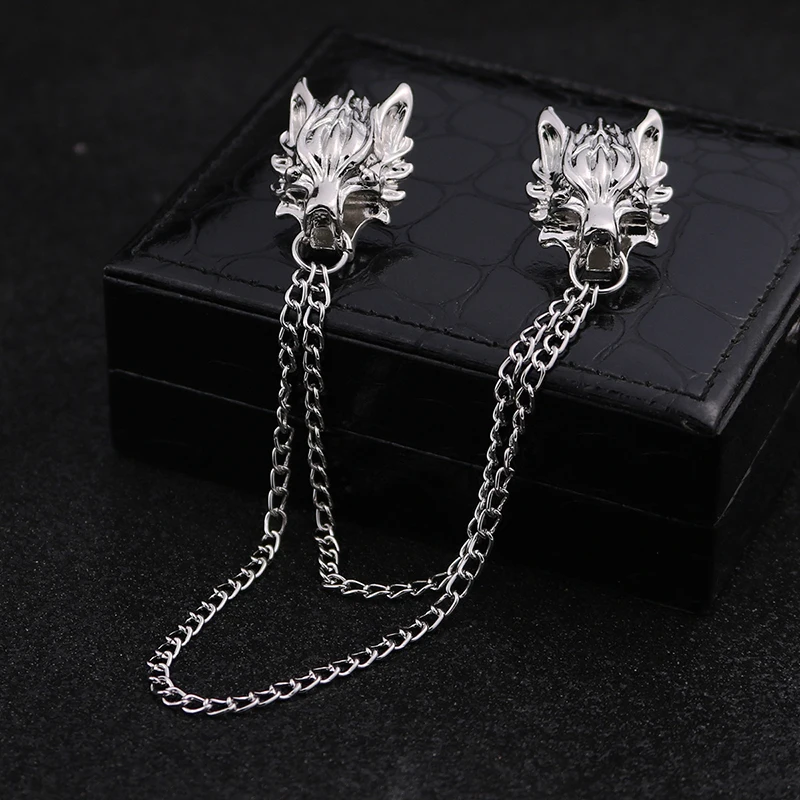 Daiiibabyyy Punk Chain Wolf Head Brooches Men Classic Tassel Chain Brooch Fashion Delicate Collar Pins Shirt Decoration Metal Lapel Pin