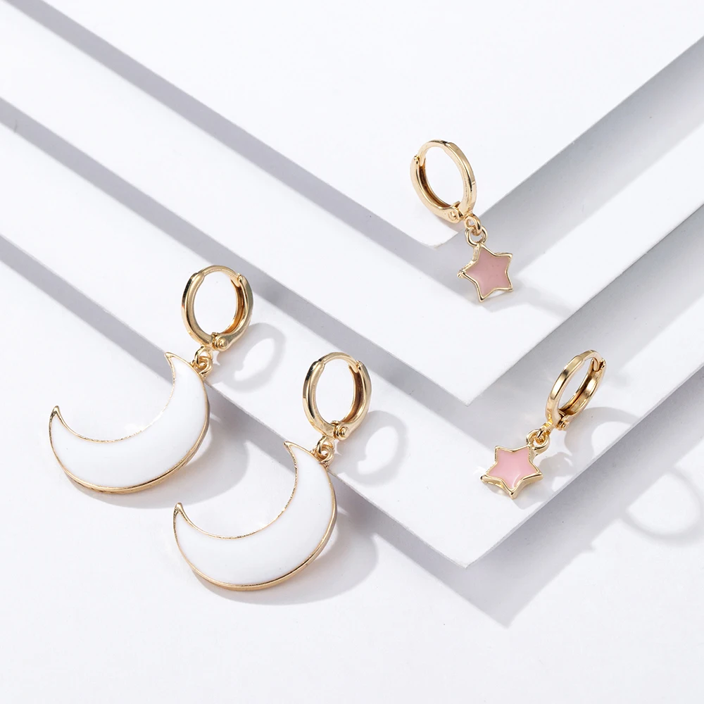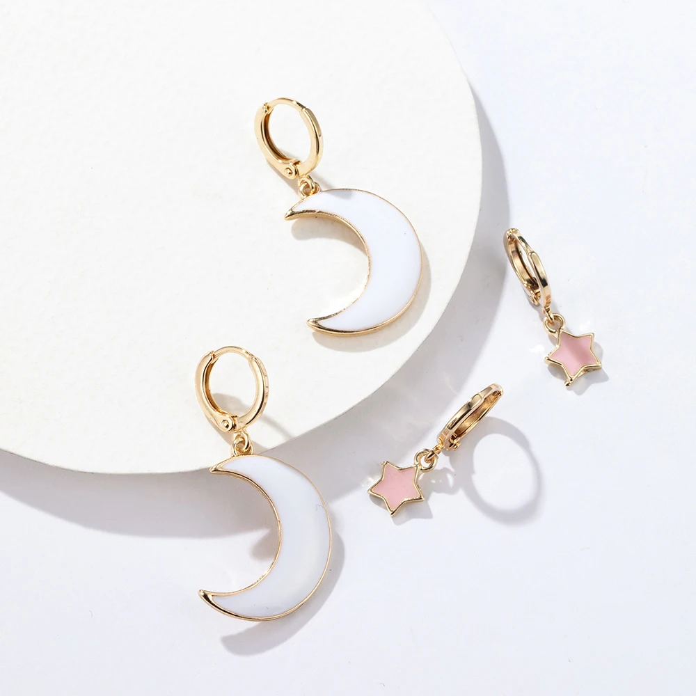 Daiiibabyyy New Sweet Love Heart Drop Earrings for Women Girls Round Circle Enamel Letters Korean Fashion Statement Wedding Jewelry