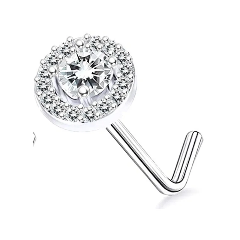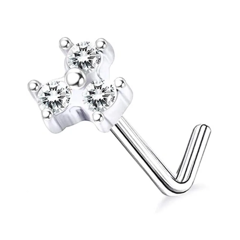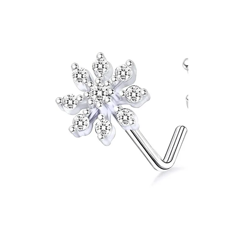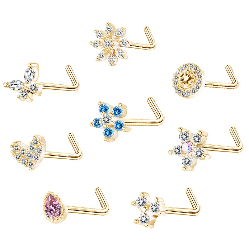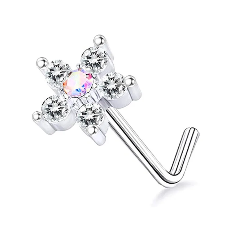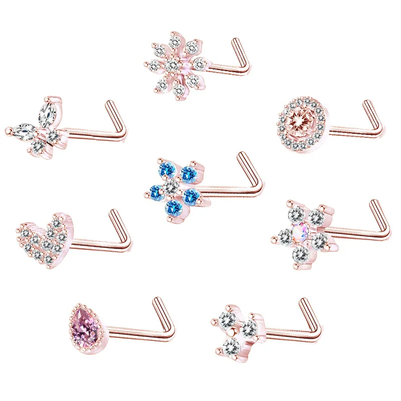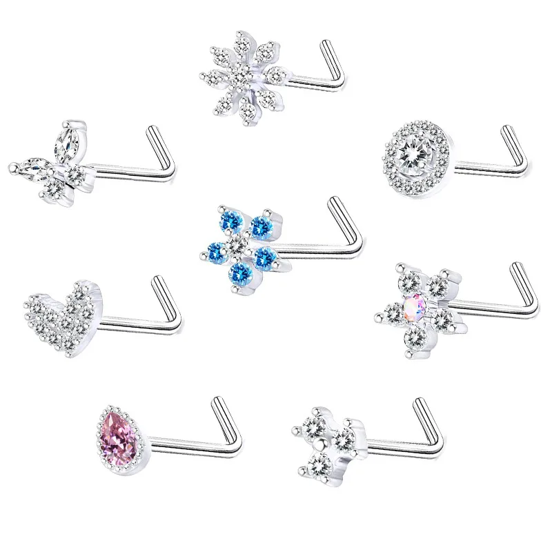 DAIIIBABYYY - 1PC Stainless Steel Small Nose Rings Crystal Zircon Butterfly Flower Heart Nose Studs 20G Body Piercing Jewelry For Women Men