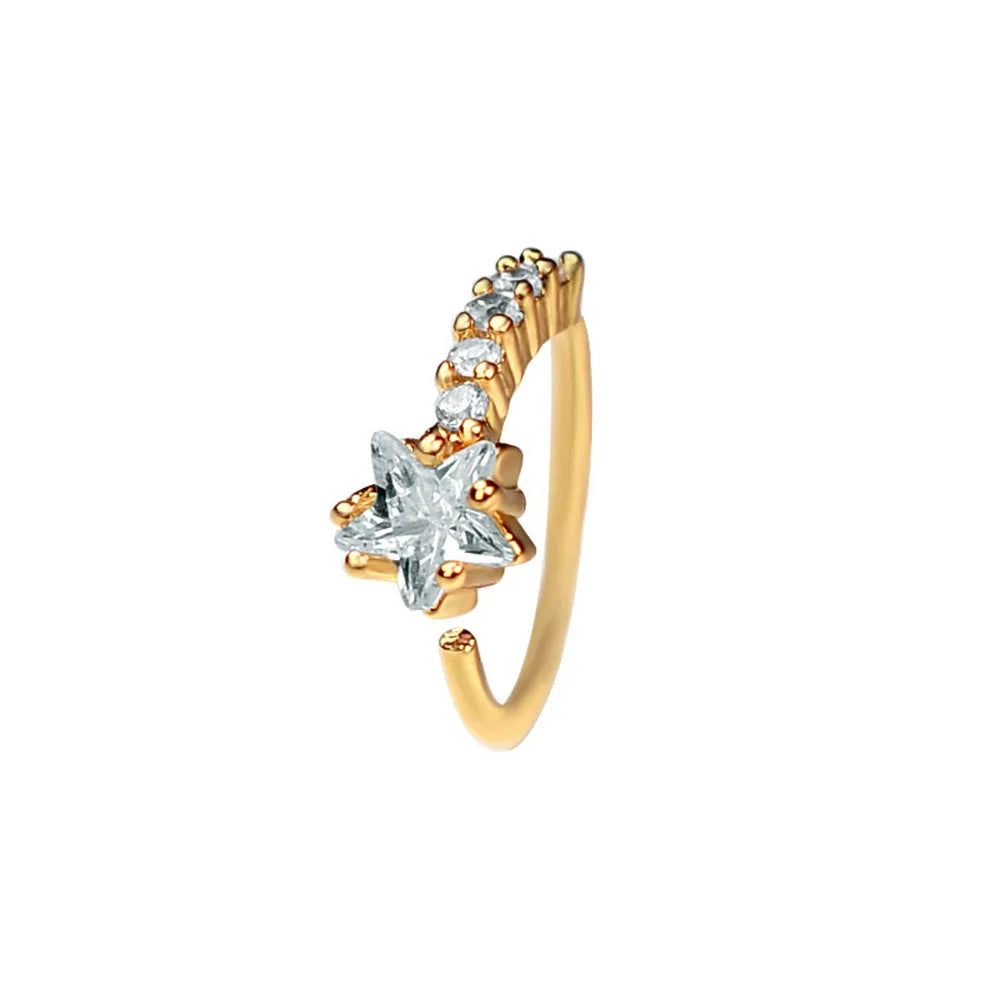 DAIIIBABYYY - 1Pcs Fashion Star Heart CZ Nose/Lip/Ear Hoops Septum Hoop Nose Ring Crystal Piercing Ear Tragus Cartilage Earrings Body Jewelry