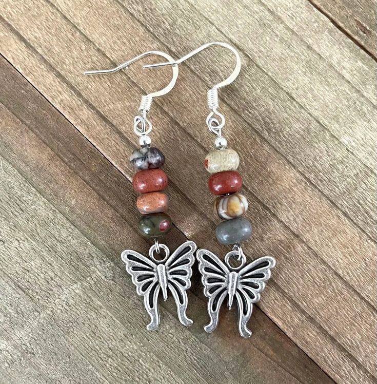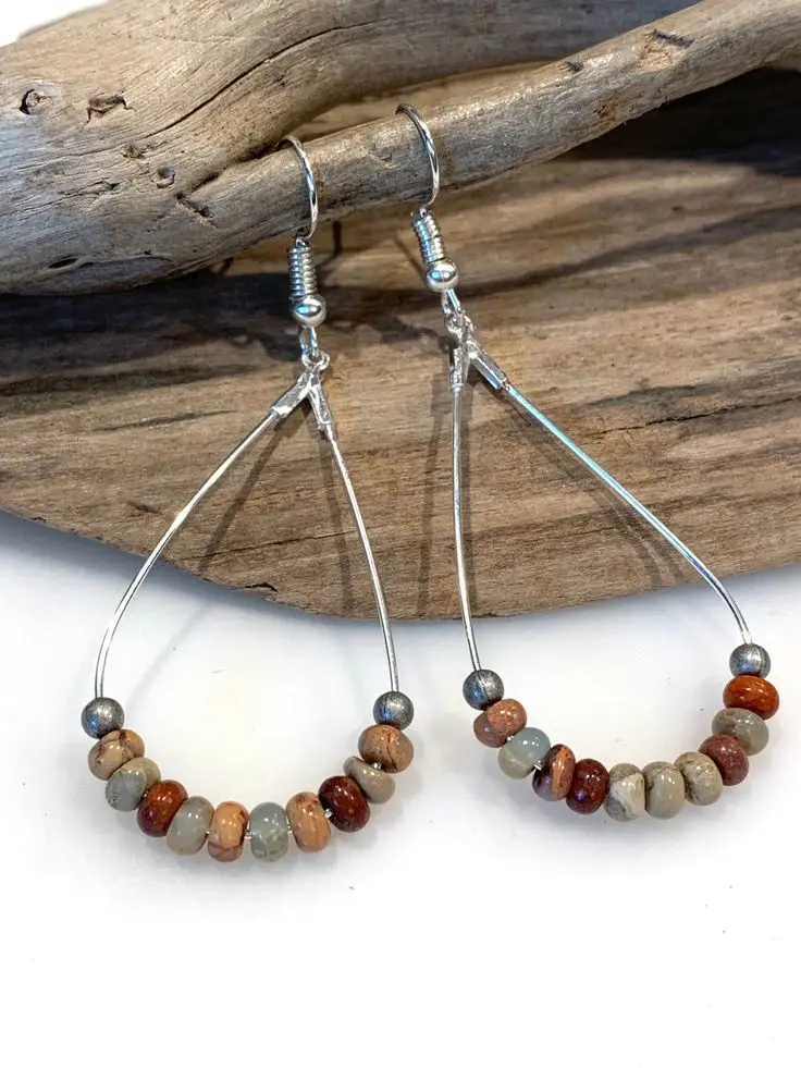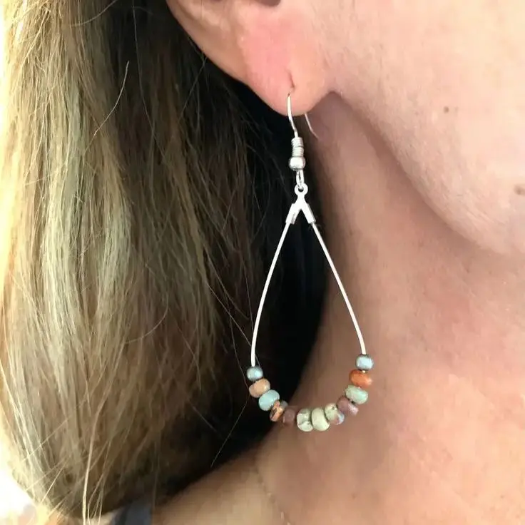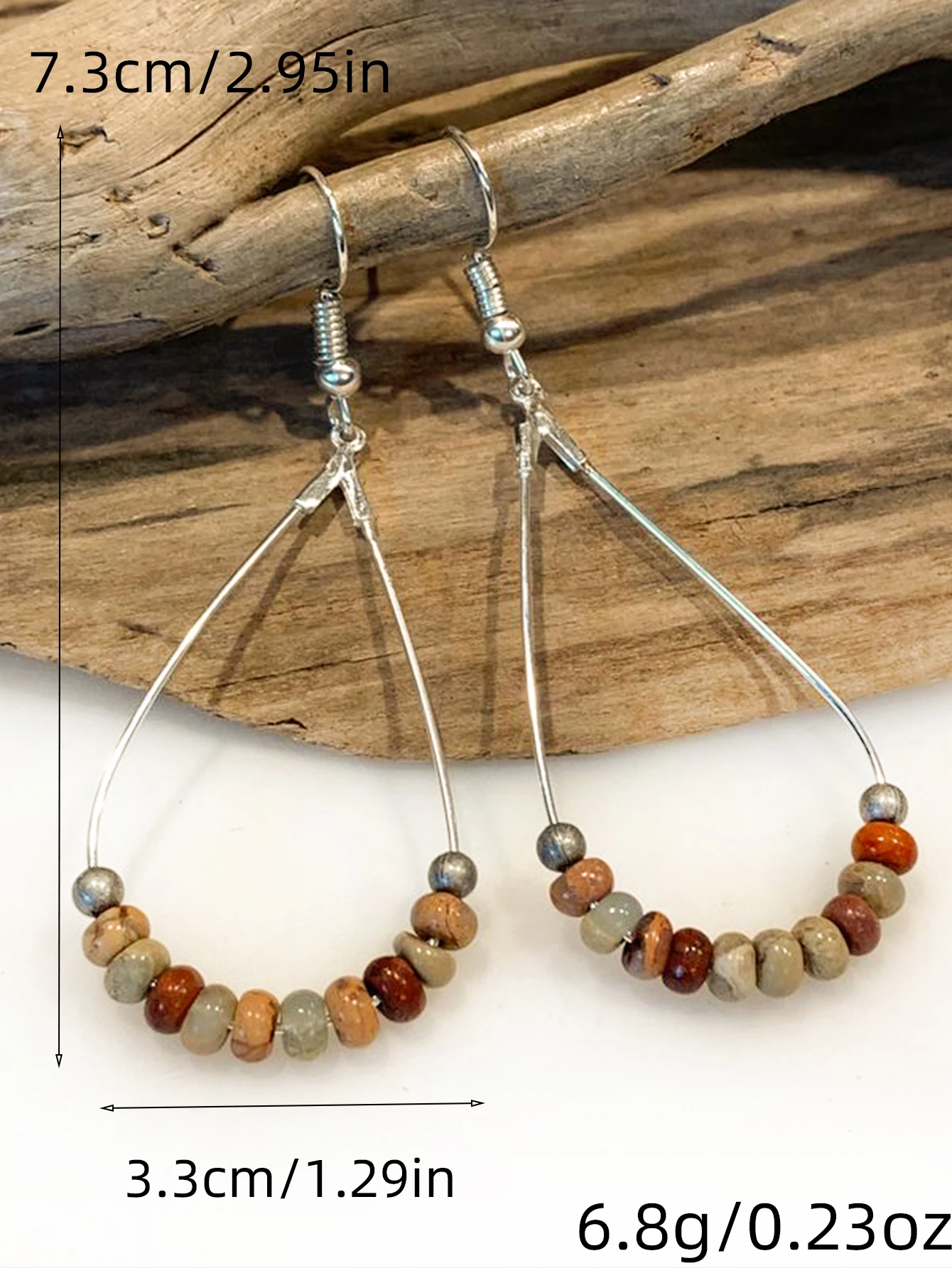 DAIIIBABYYY - 2 Pcs Vintage Ethnic Hollow Bead Geometric Bohemian Natural Stone Dangle Earrings Woman Party Prom Jewelry