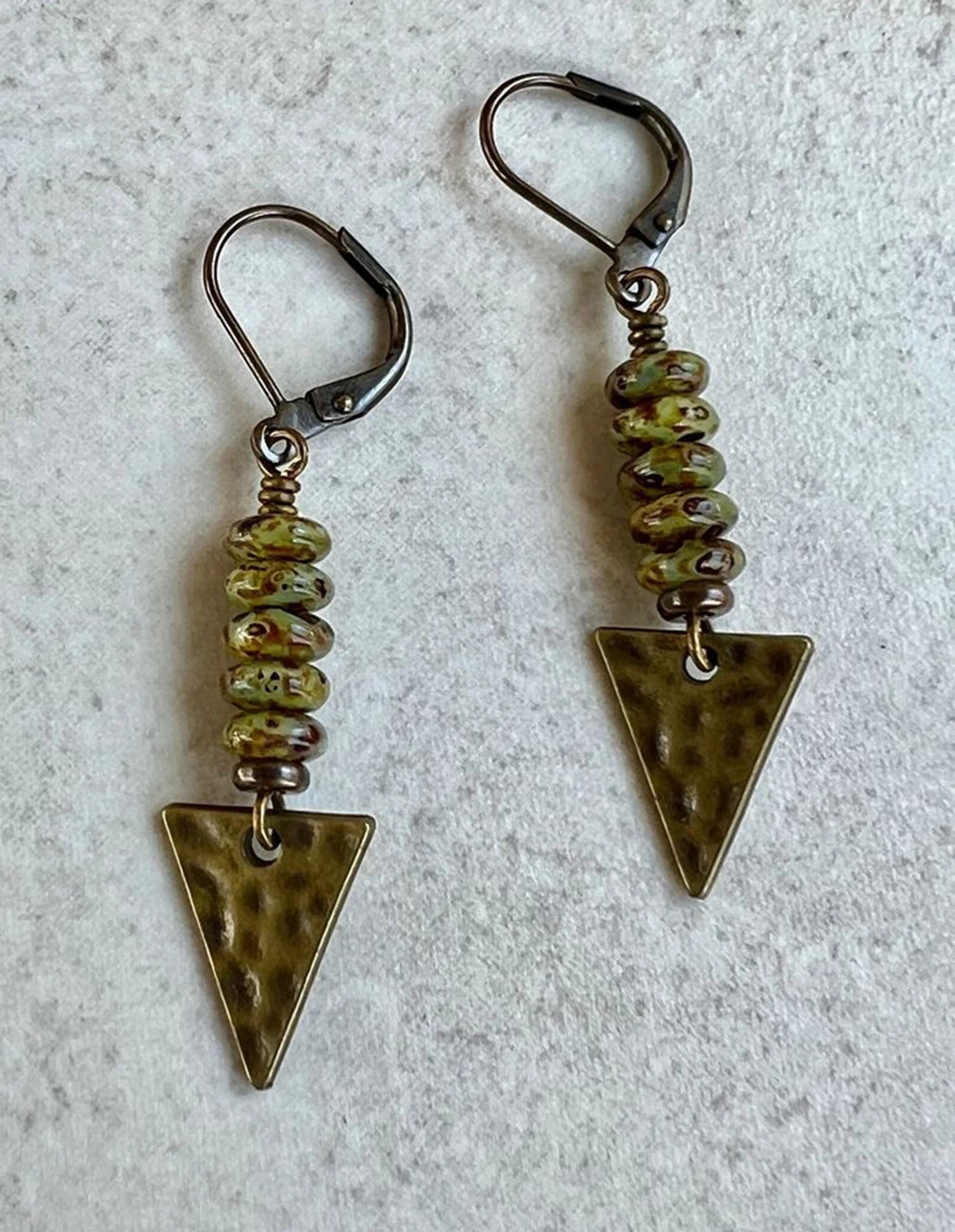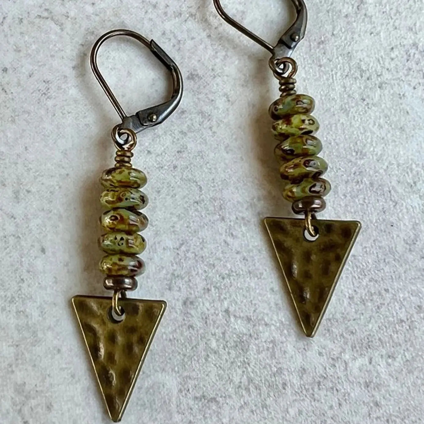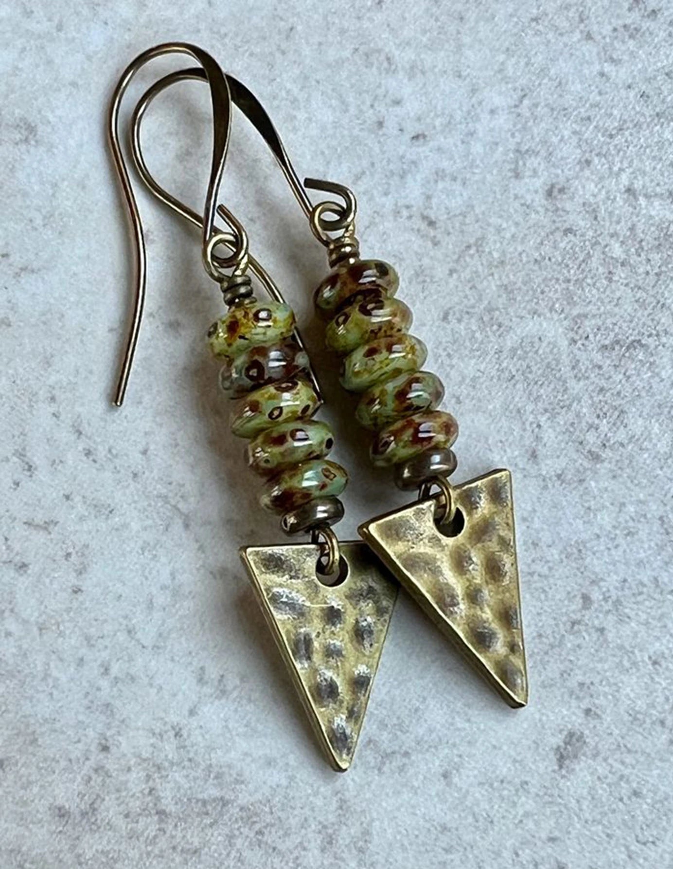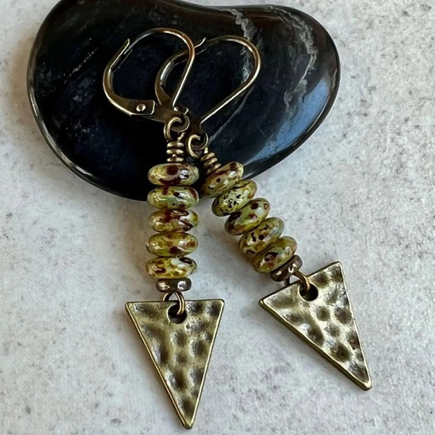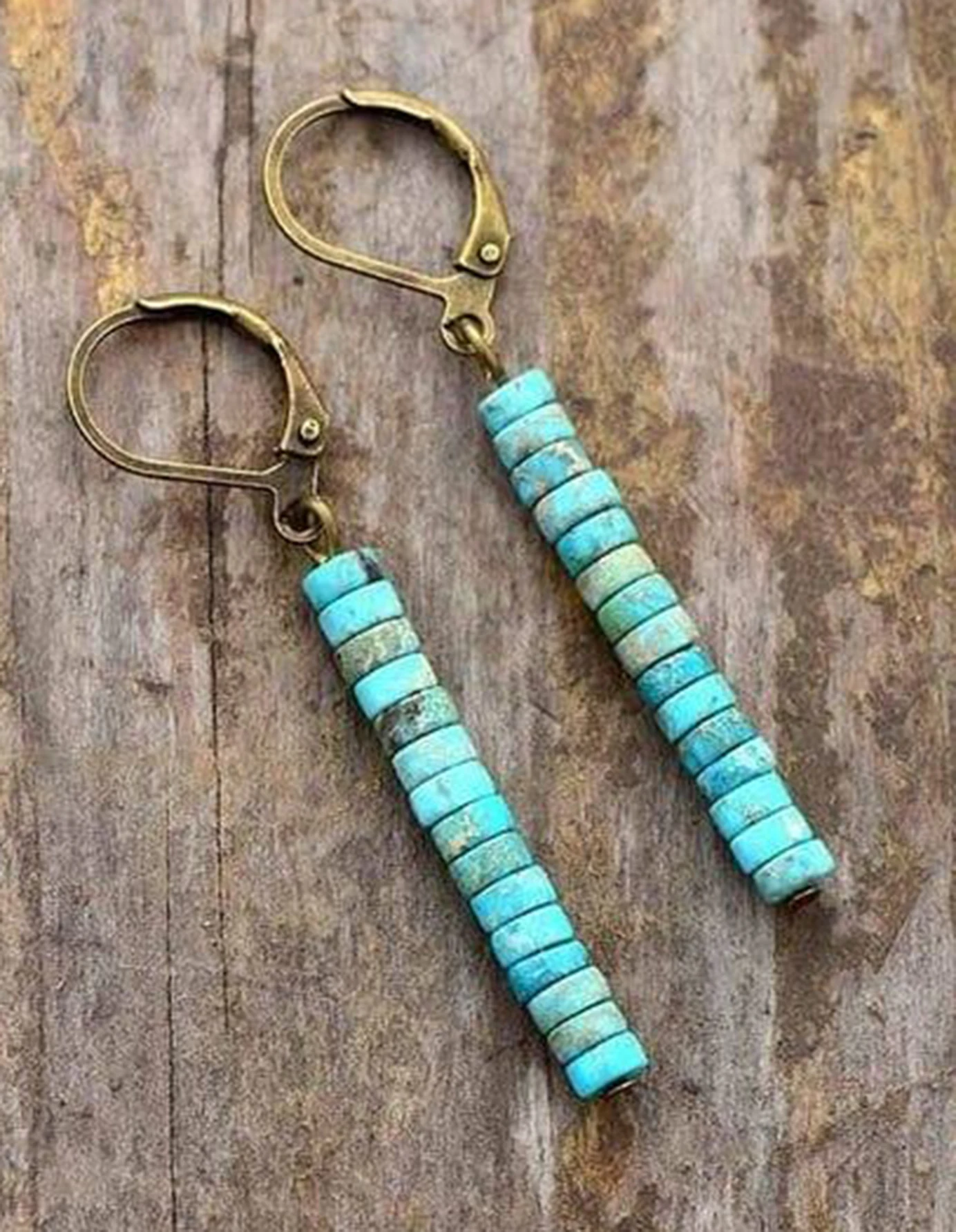 DAIIIBABYYY - 2 Pcs Vintage Triangle Miscellaneous Stones Ethnic Bohemian Personality Natural Stone Gold Colour Earrings Daily Jewelry Gift