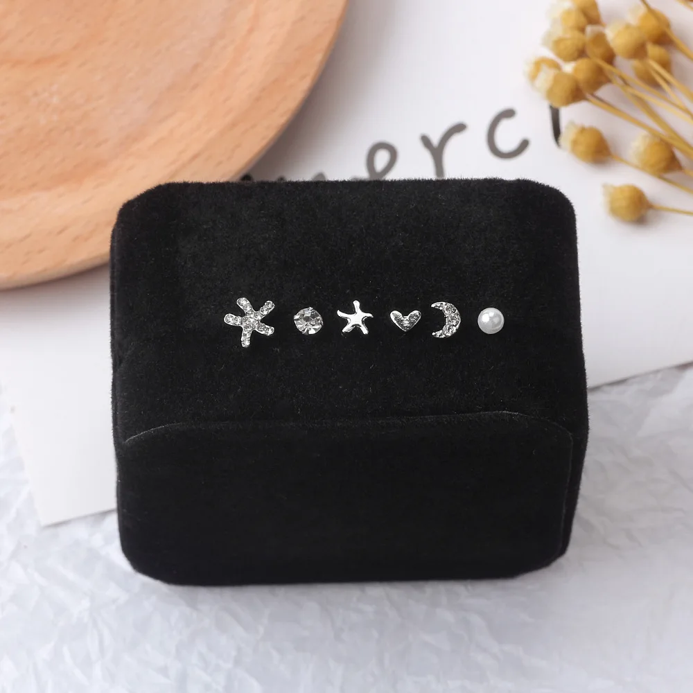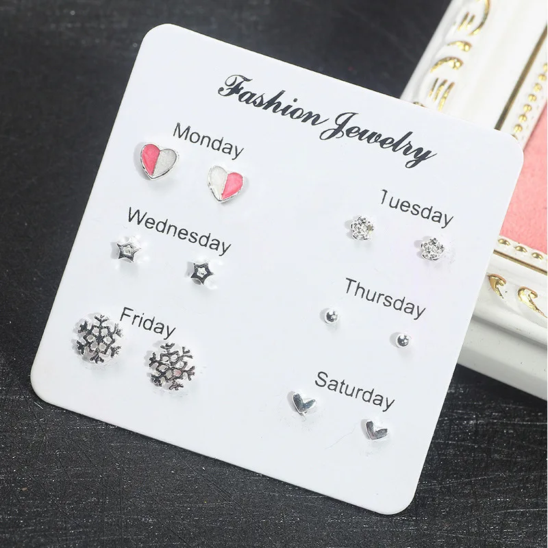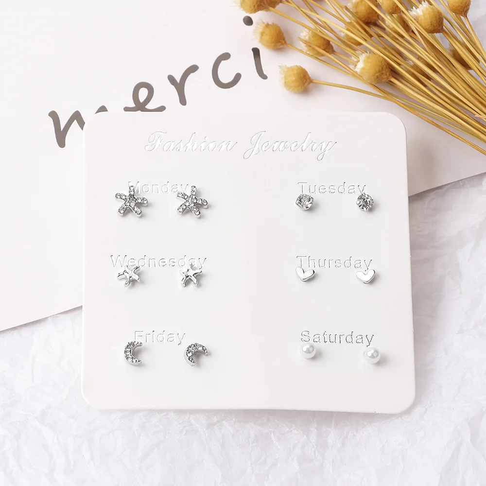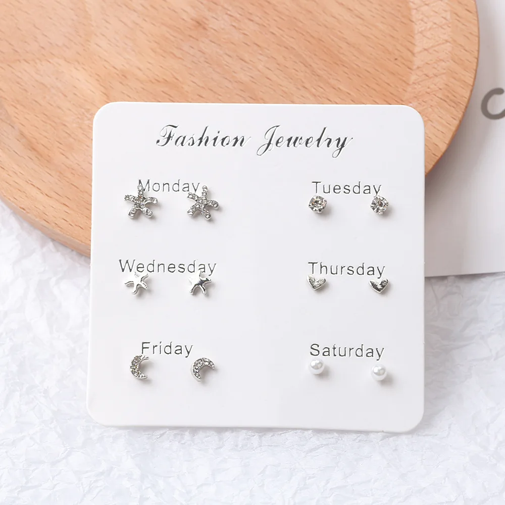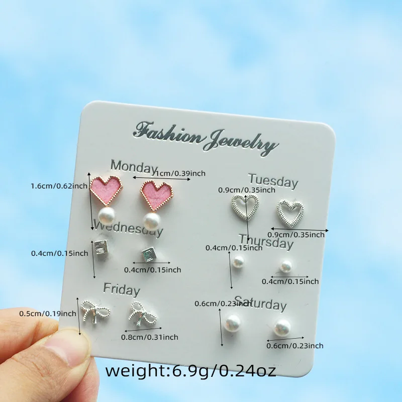 DAIIIBABYYY - 2024 Creative Week Stud Earrings Set for Women Heart Pearl Rhinestone Earring Korean Fashion Party Jewelry Wholesale