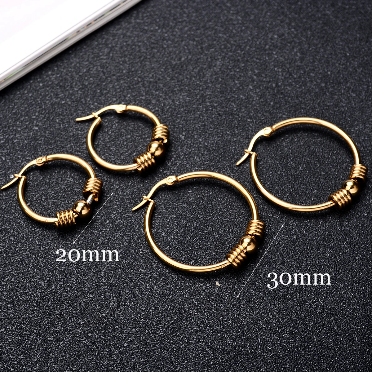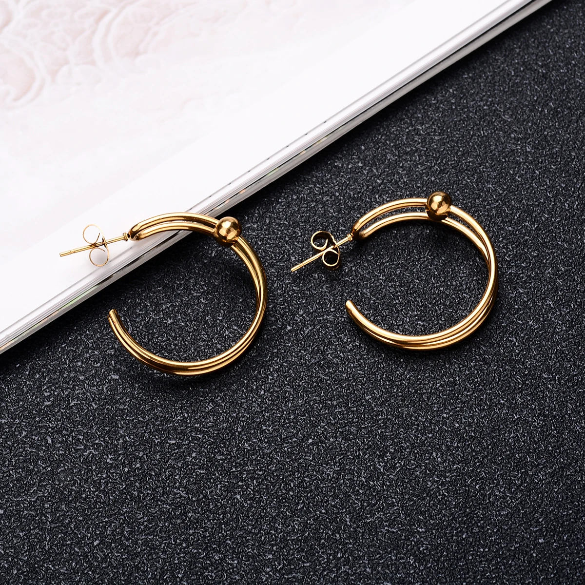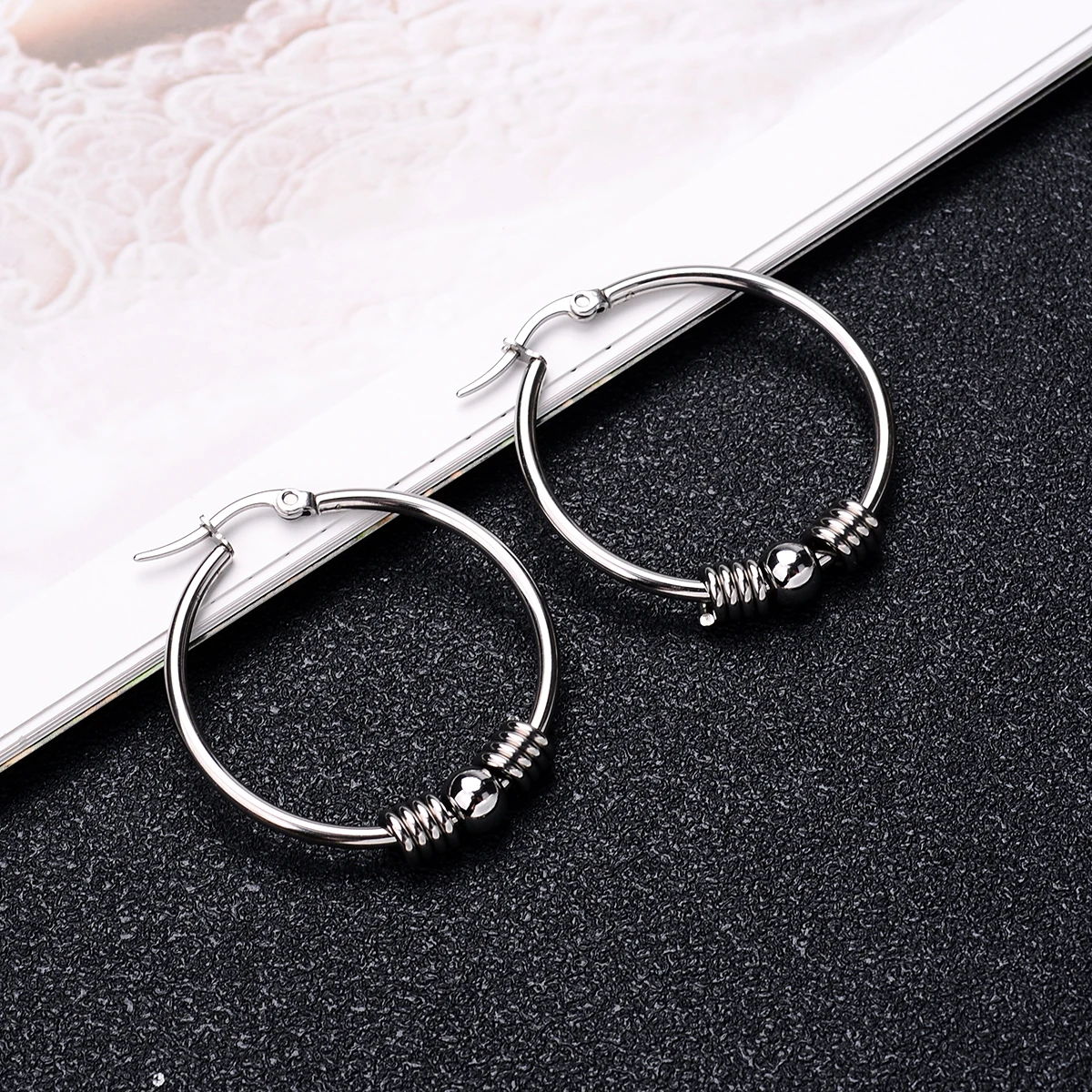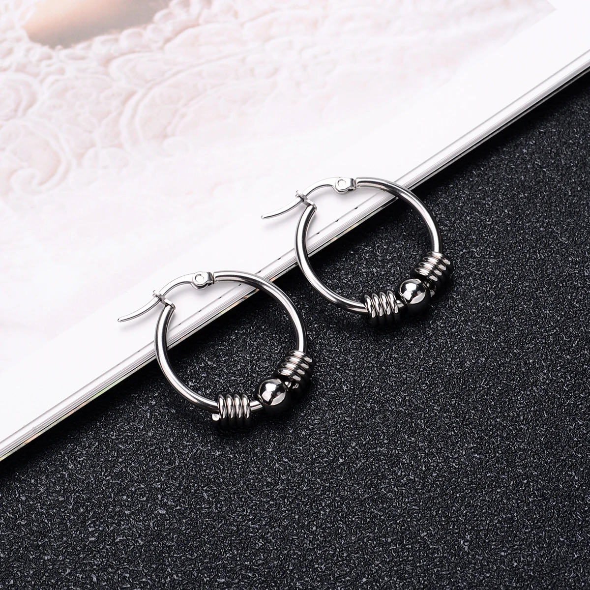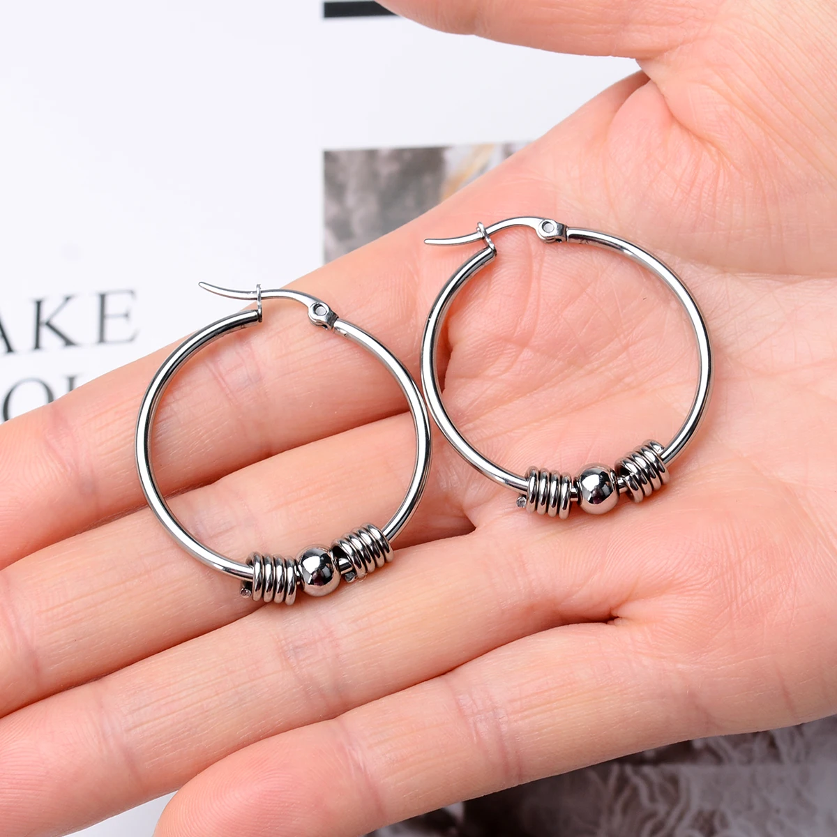 DAIIIBABYYY - 2Pc Stainless Steel Exaggerated Round Bead Hoop Earring Women Men Smooth Design Vintage Double Rings Earring Personality Jewelry