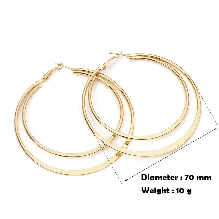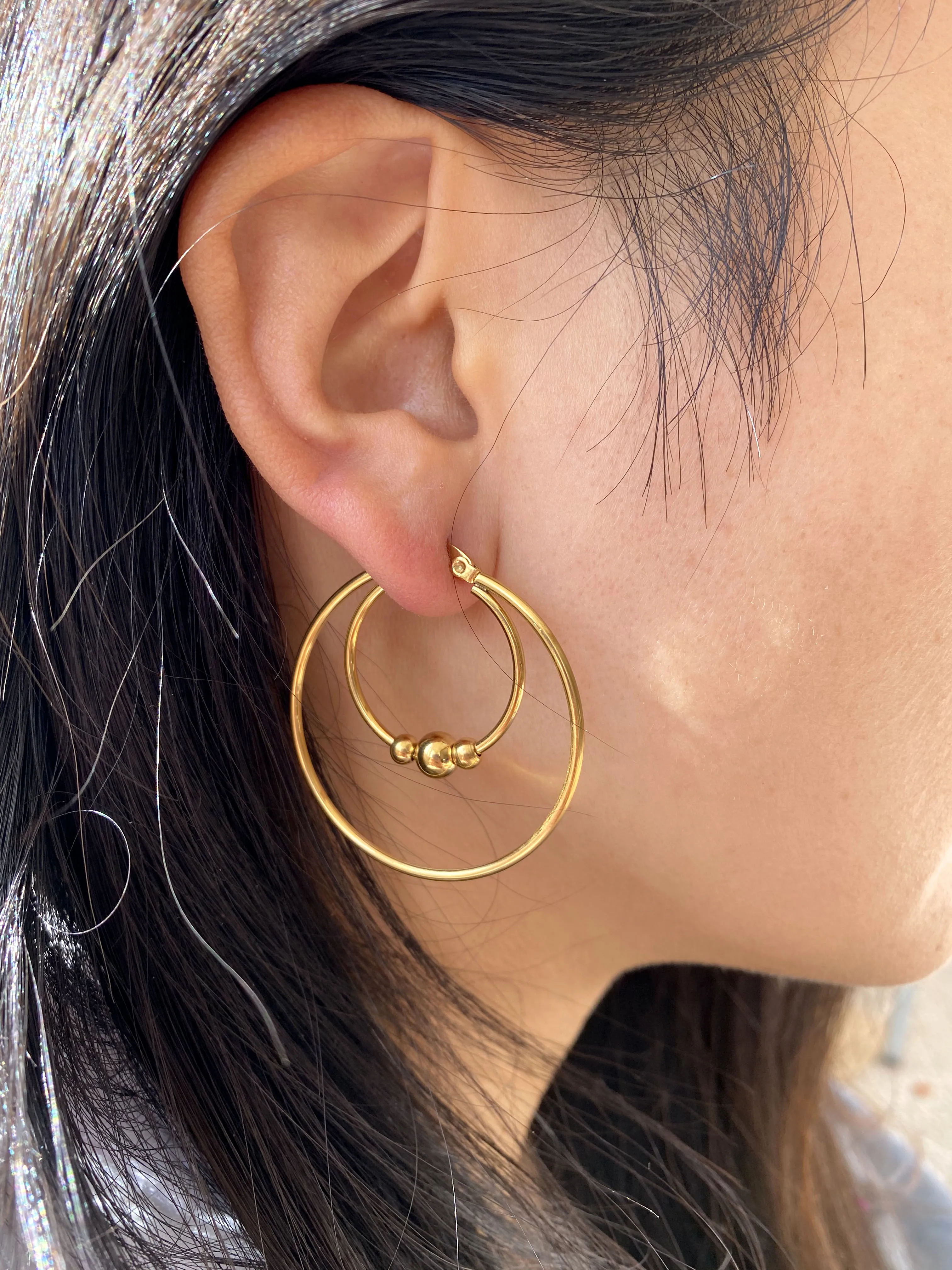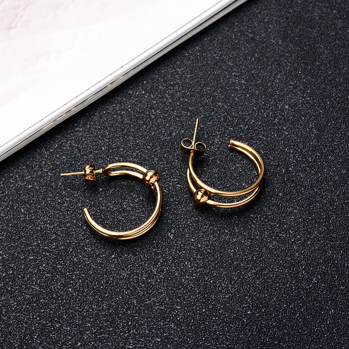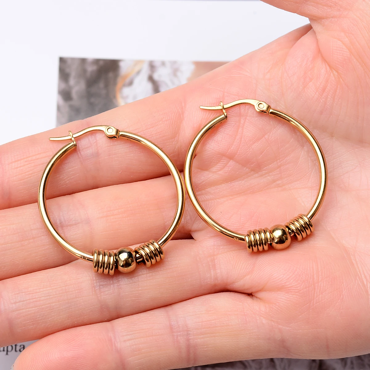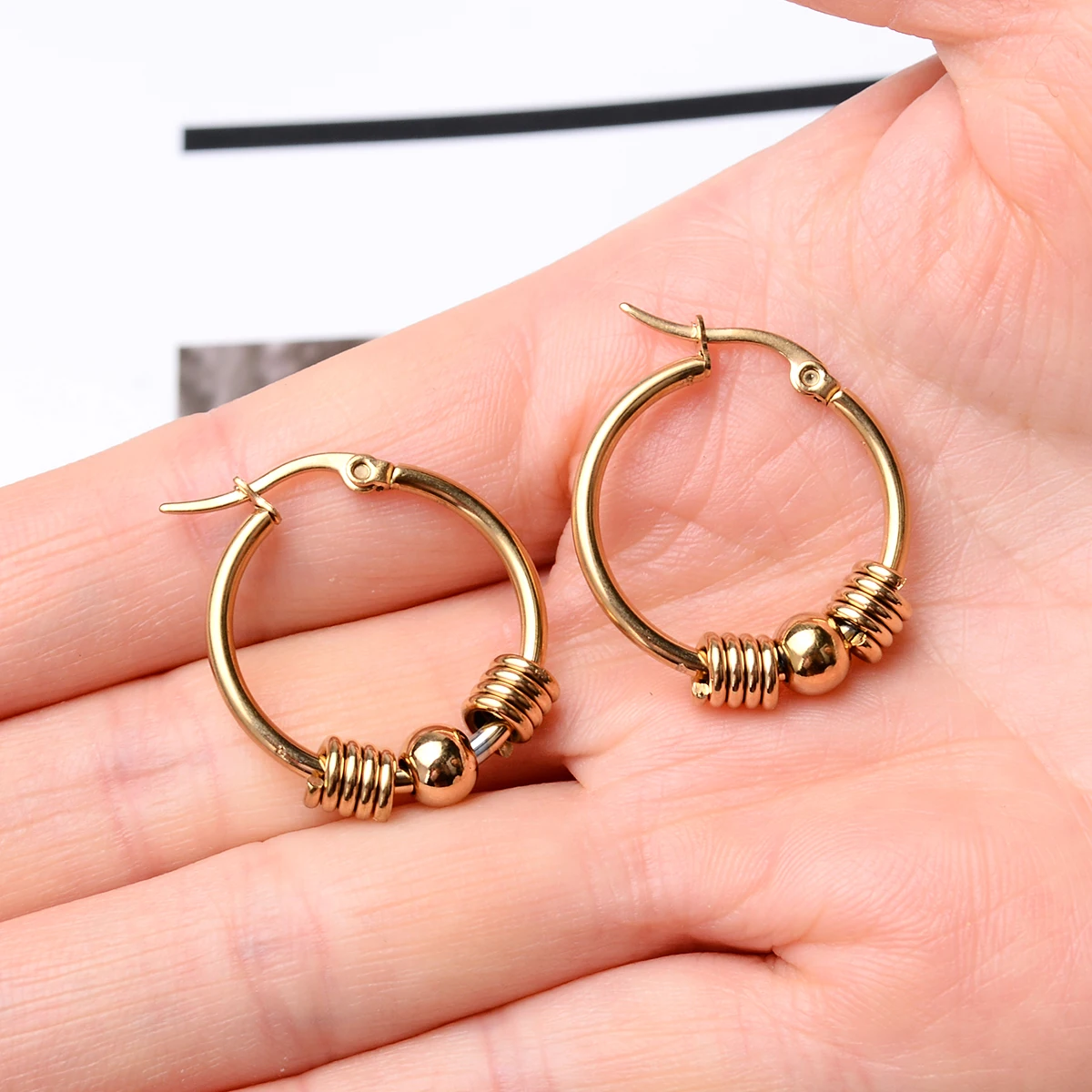 DAIIIBABYYY - 2Pc Stainless Steel Exaggerated Round Bead Hoop Earring Women Men Smooth Design Vintage Double Rings Earring Personality Jewelry