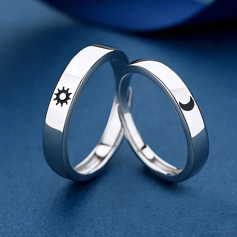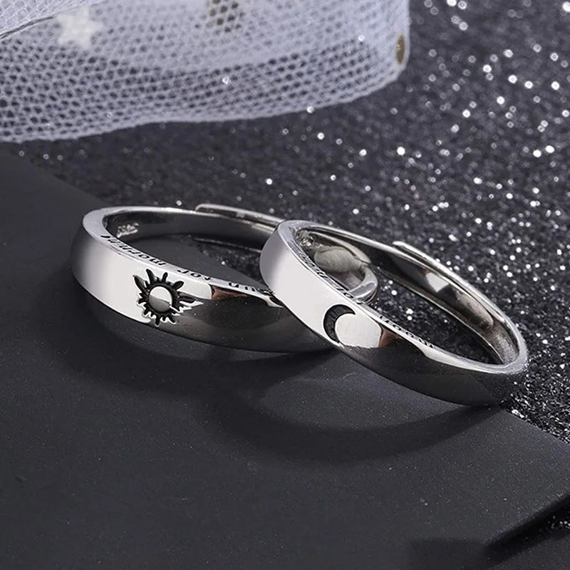 DAIIIBABYYY - 2Pcs Sun and Moon Lover Couple Rings Set Promise Wedding Bands for Him and Her Jewerly Gift