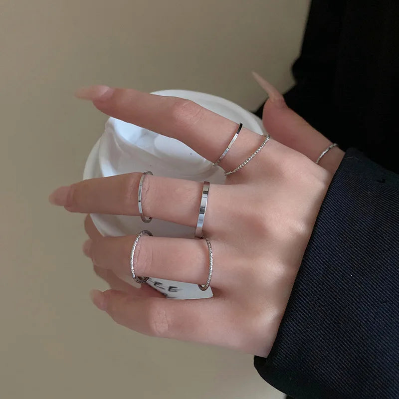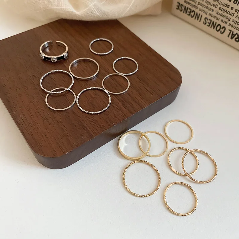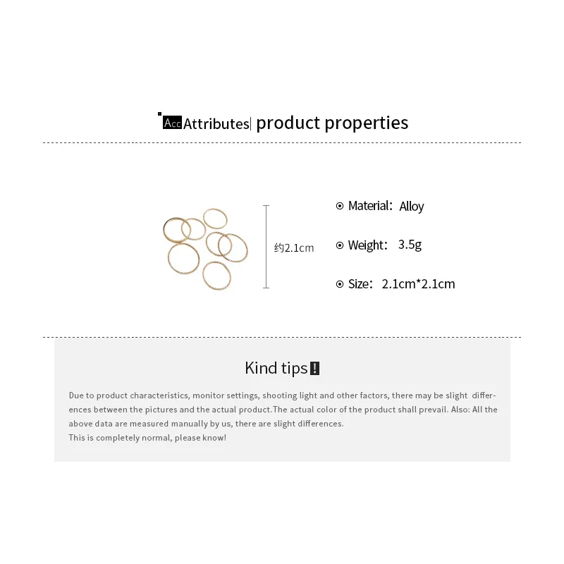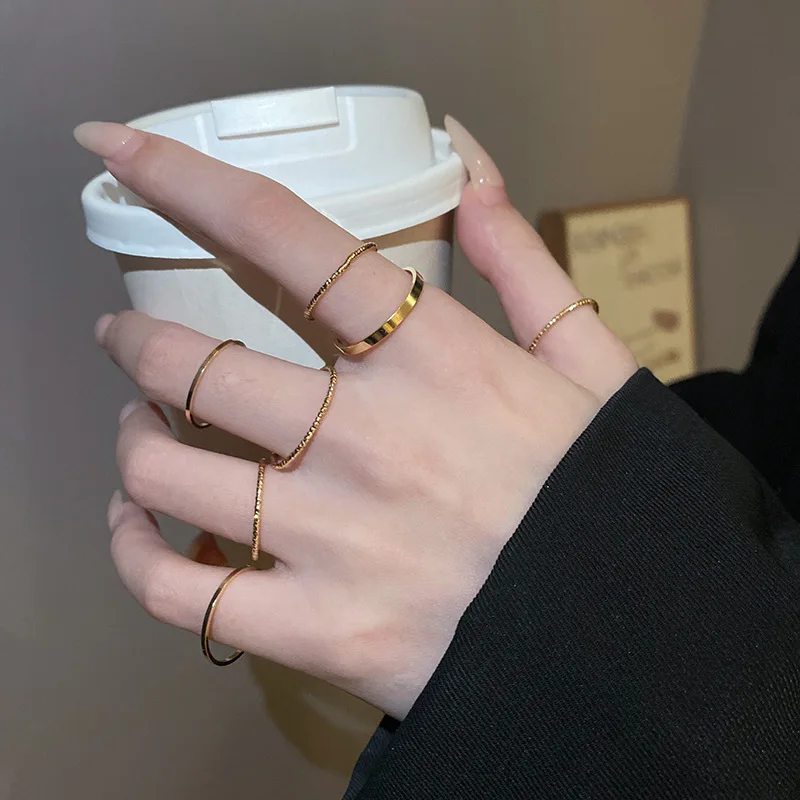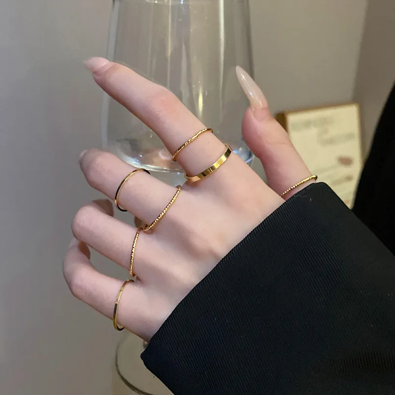 Daiiibabyyy 7 Pcs European and American Simple Circle Rings Set Fashion Design Sense Ring Lovers Gold and Silver Hand Jewelry