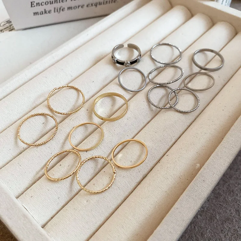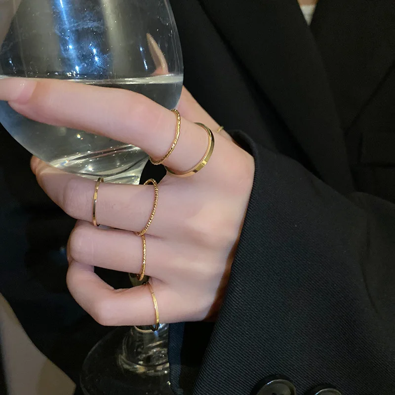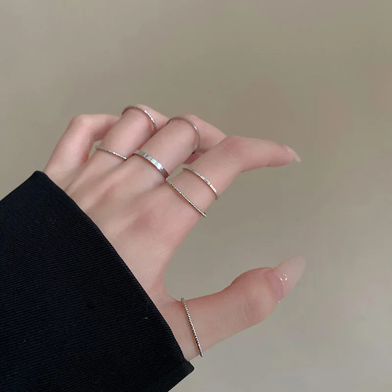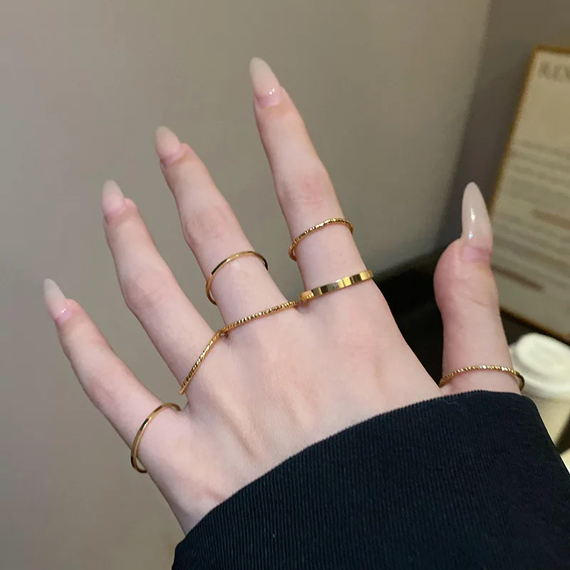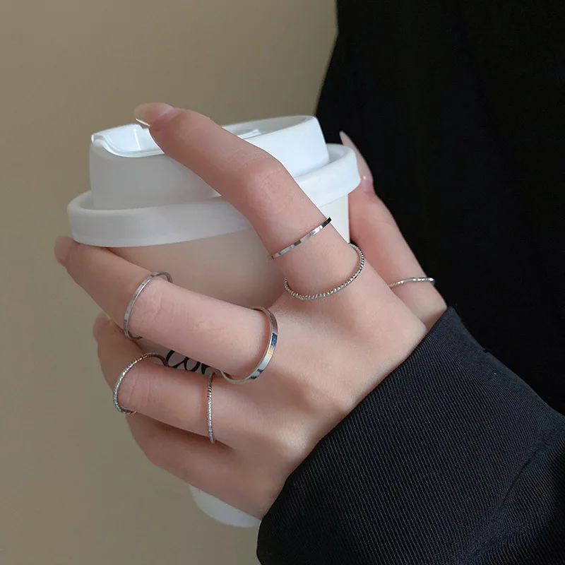 Daiiibabyyy 7 Pcs European and American Simple Circle Rings Set Fashion Design Sense Ring Lovers Gold and Silver Hand Jewelry