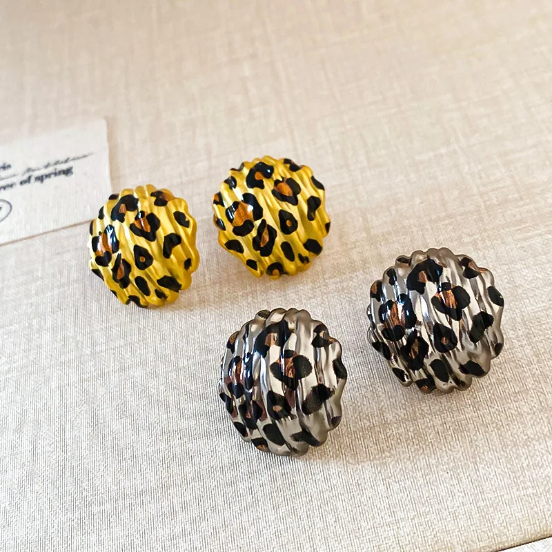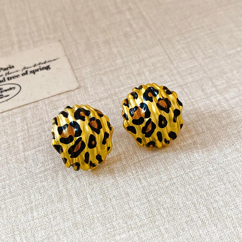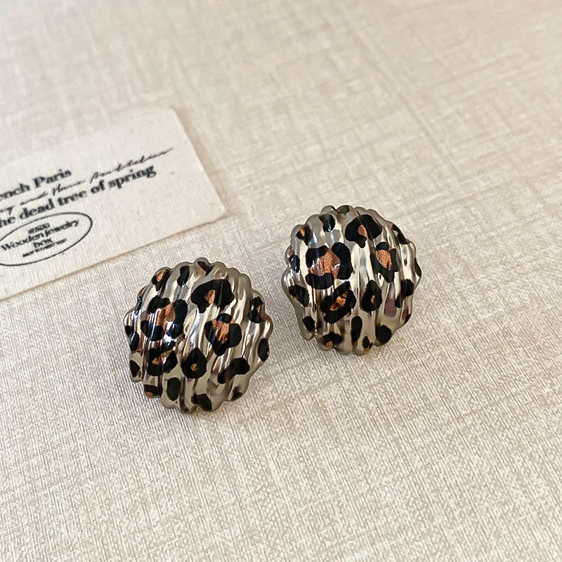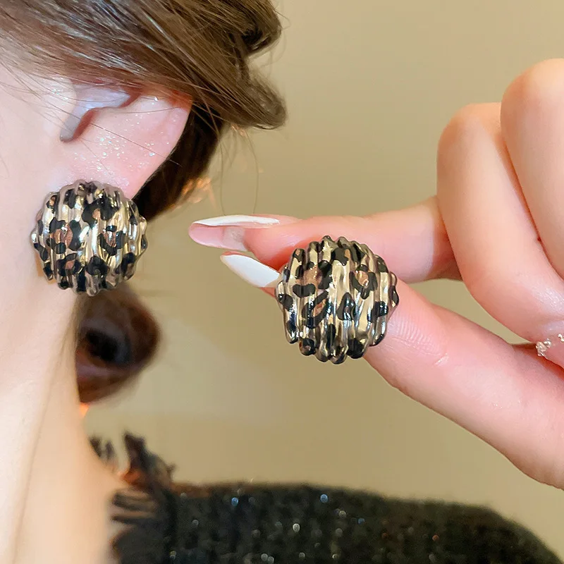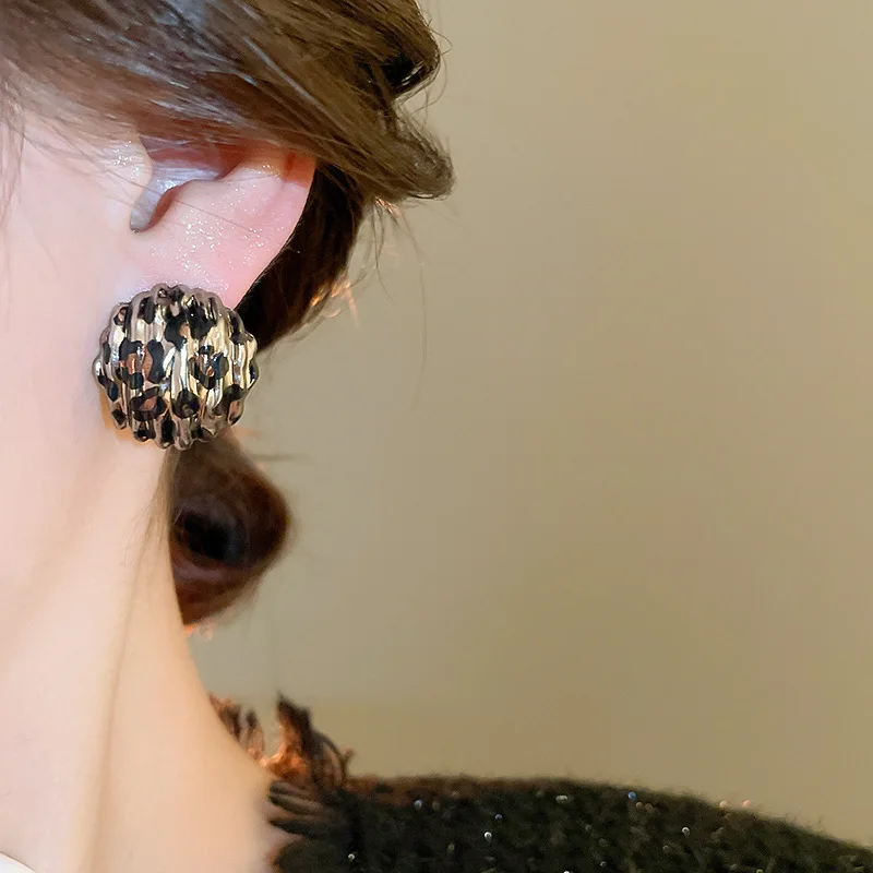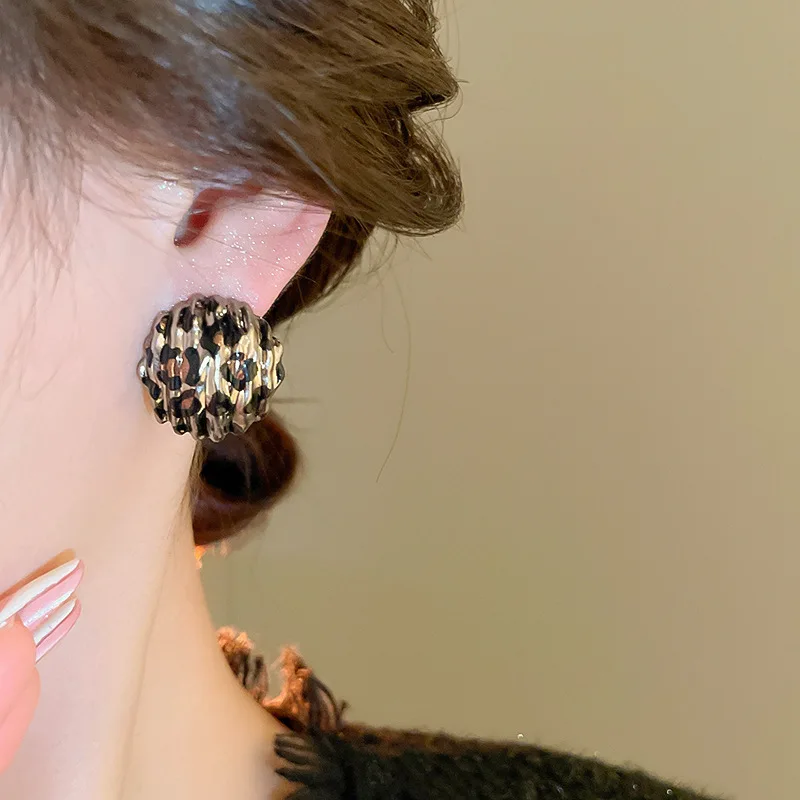 DAIIIBABYYY - Circular Retro Earrings Women Stripes Leopard Print Simple Design Personalized Temperament Niche Trend Fashionable Versatile