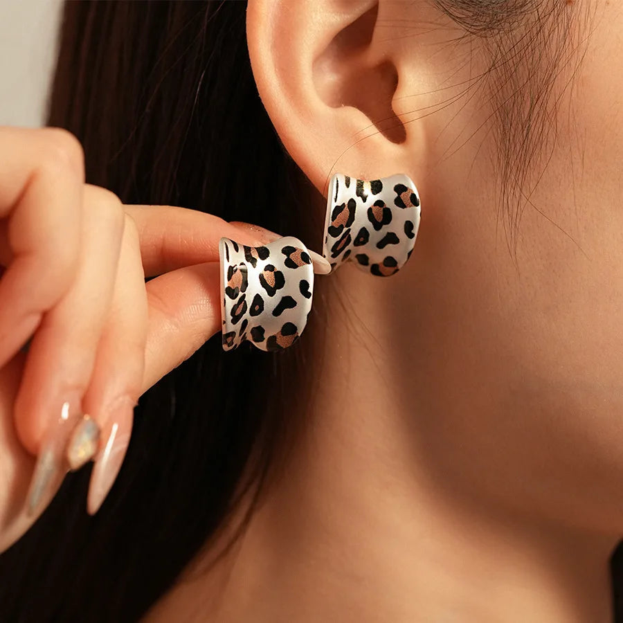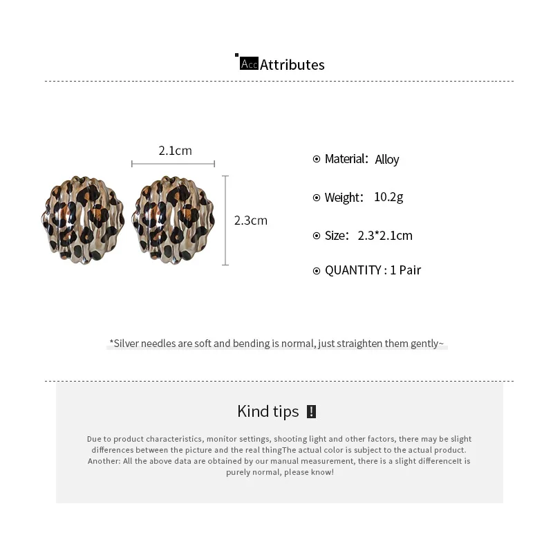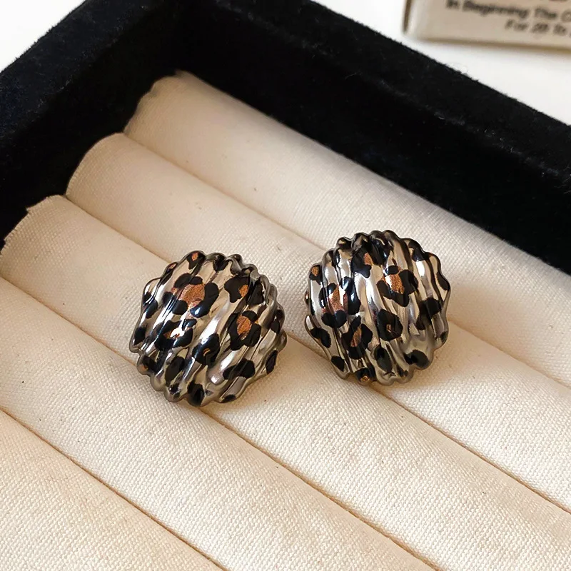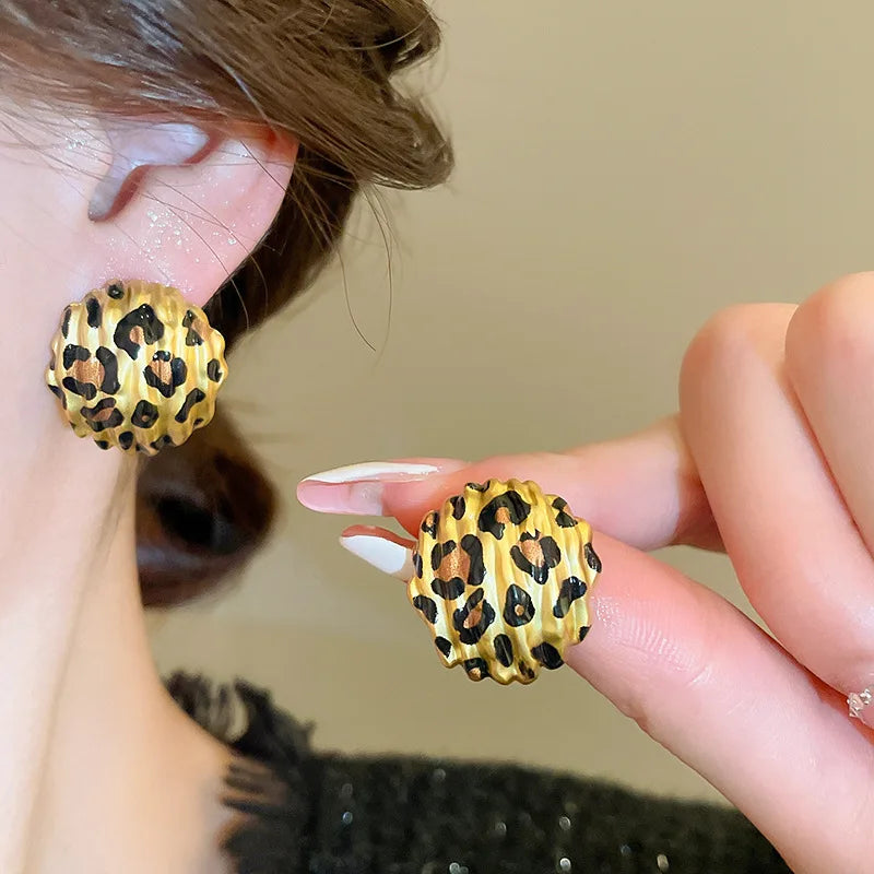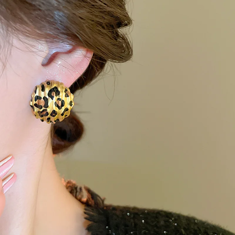 DAIIIBABYYY - Circular Retro Earrings Women Stripes Leopard Print Simple Design Personalized Temperament Niche Trend Fashionable Versatile