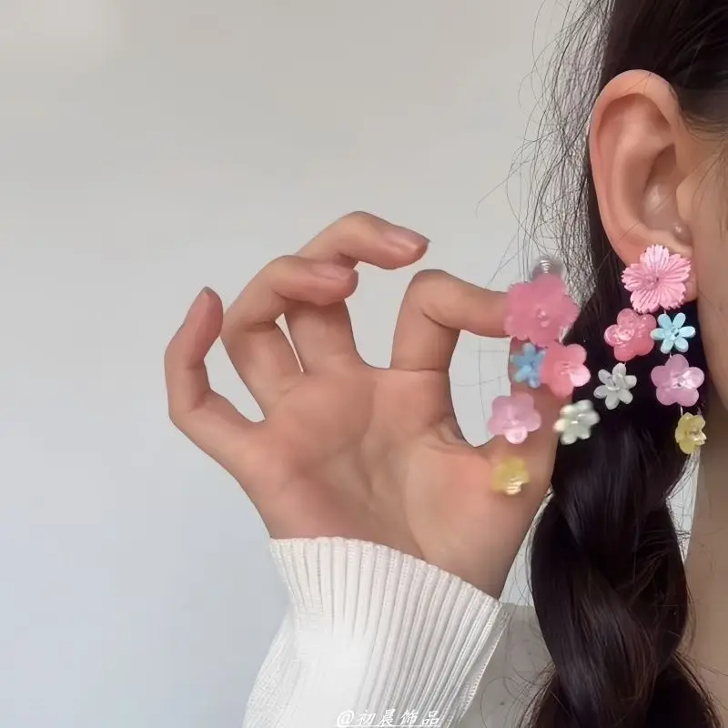 DAIIIBABYYY - Colorful Acrylic Flower Stud Earrings Fashionable Dangle Jewelry for Women Girls