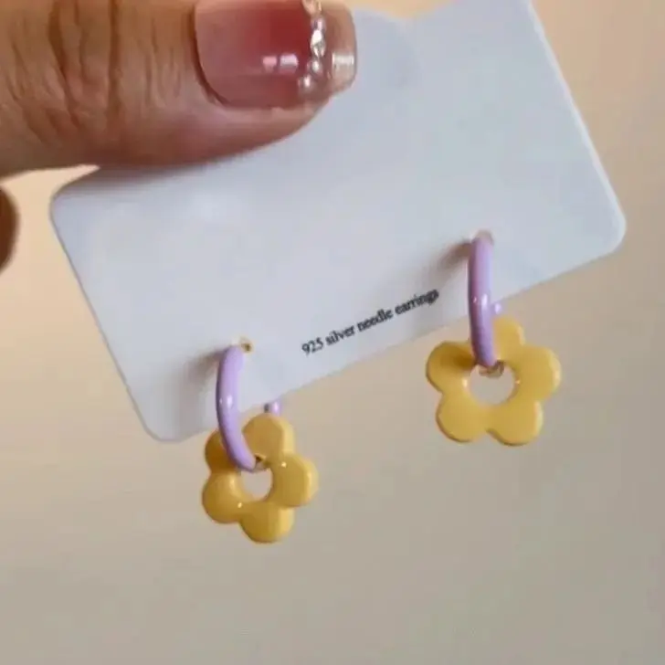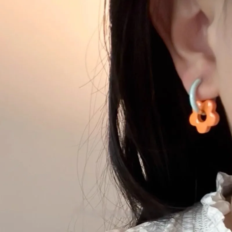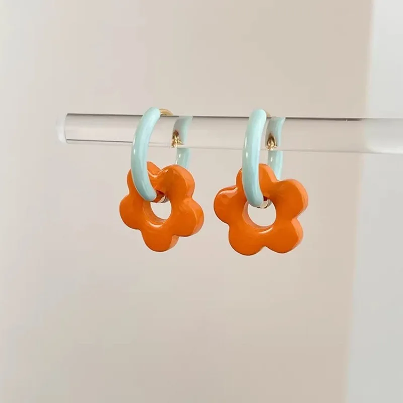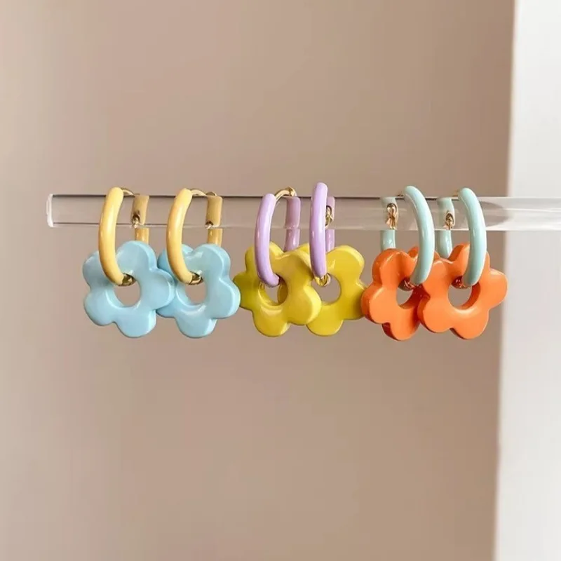 DAIIIBABYYY - Colorful Enamel Flower Stainless Steel Ear Buckle Dopamine Sweet Earrings Girls Birthday Party Friendship Jewelry Gifts