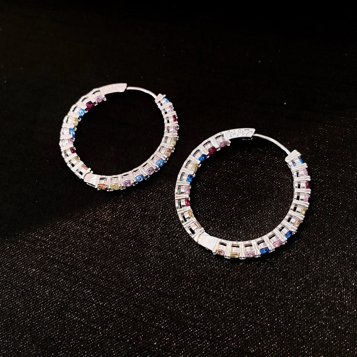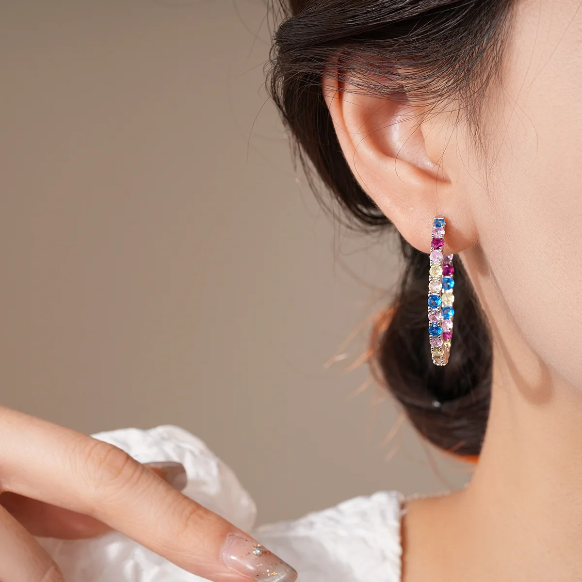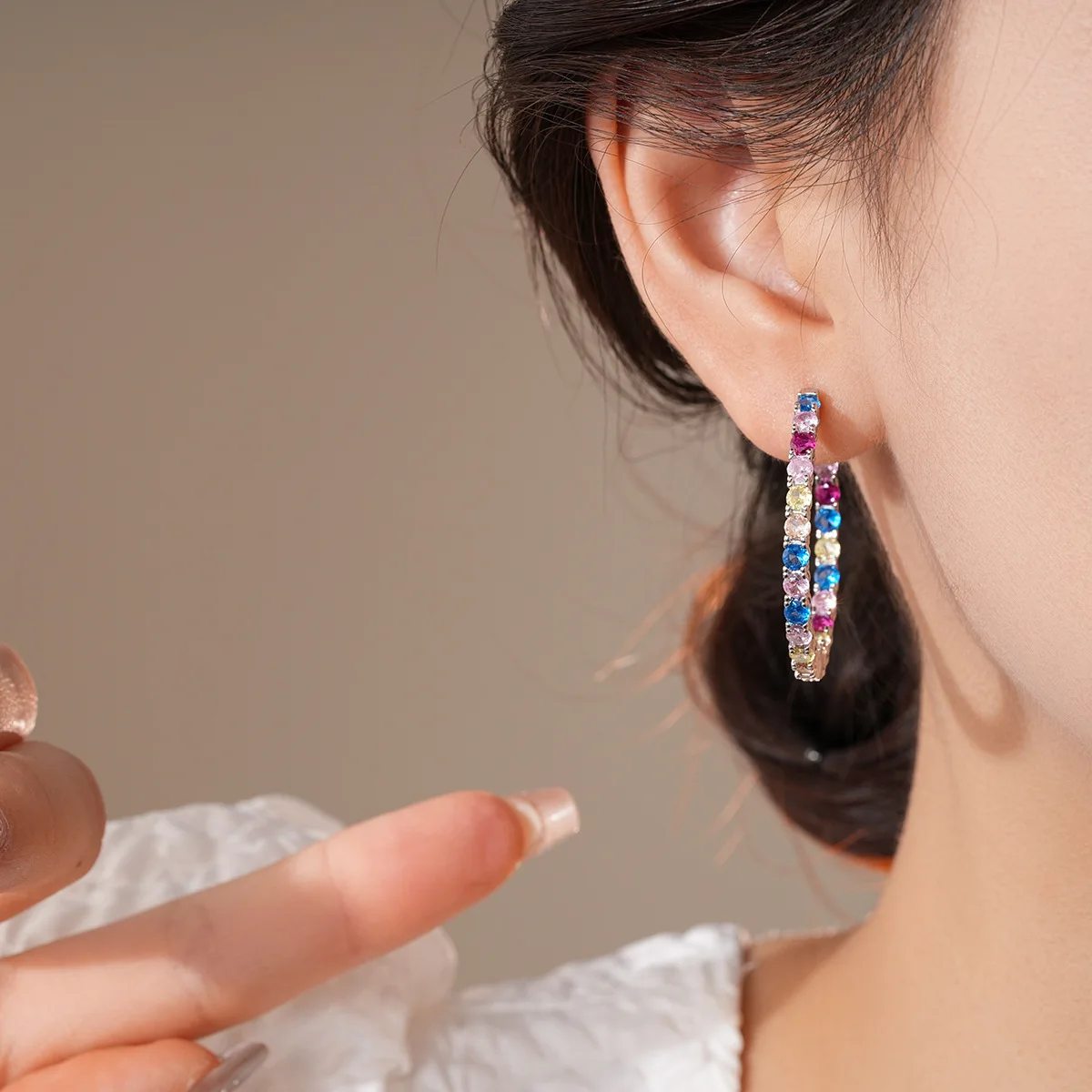 Daiiibabyyy Colorful Zircon Pleated Round Ear Buckles Fashion Personalized Simple Light Luxury High-end Hoop Earrings for Women