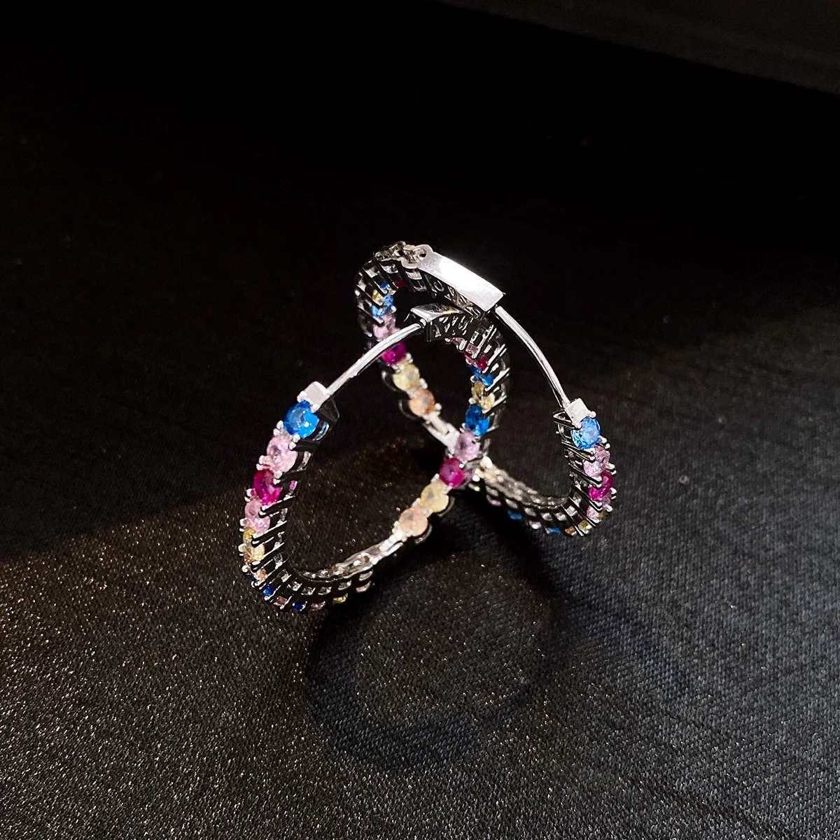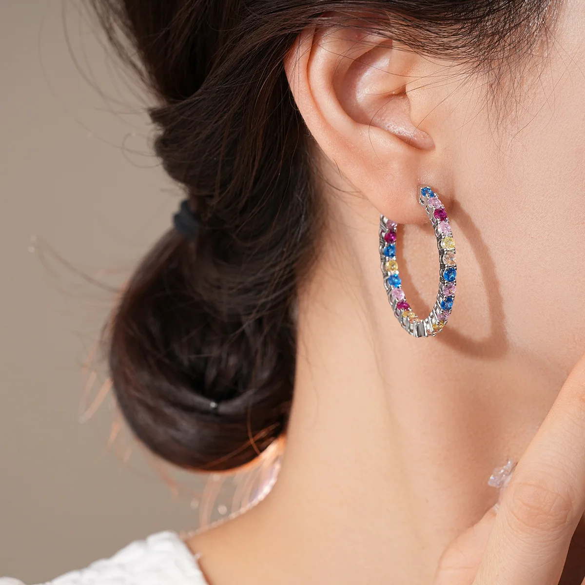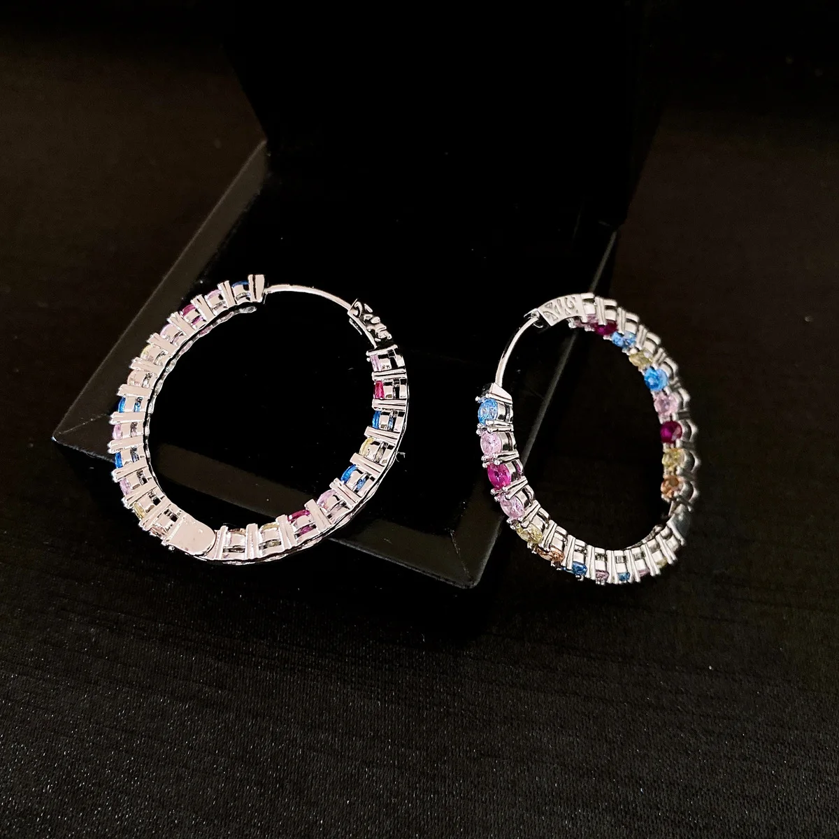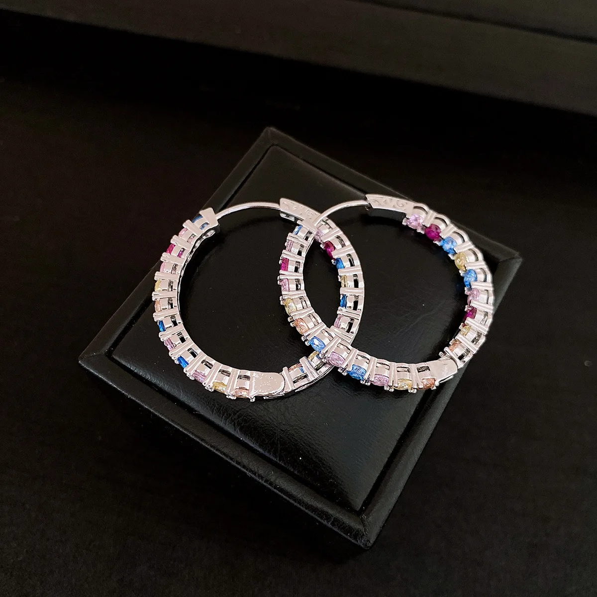 Daiiibabyyy Colorful Zircon Pleated Round Ear Buckles Fashion Personalized Simple Light Luxury High-end Hoop Earrings for Women