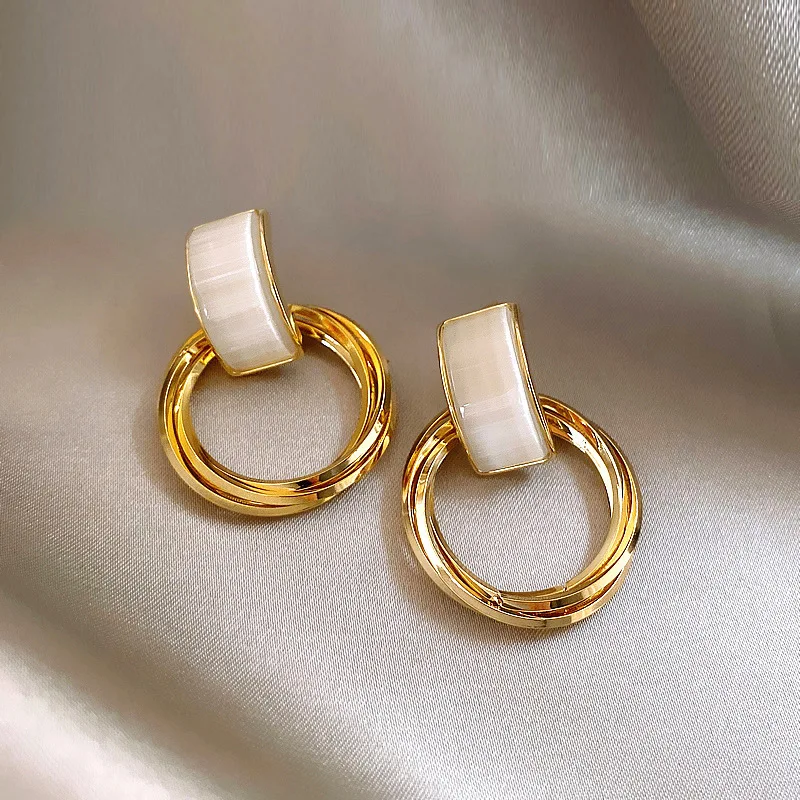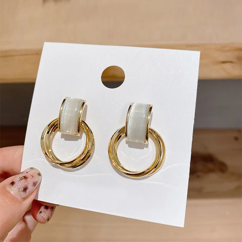 DAIIIBABYYY - Creative Geometric Circle Cat Eye Stone Earrings Personality Fashion Wedding Party Ladies Earrings Holiday Girls Jewelry Gift