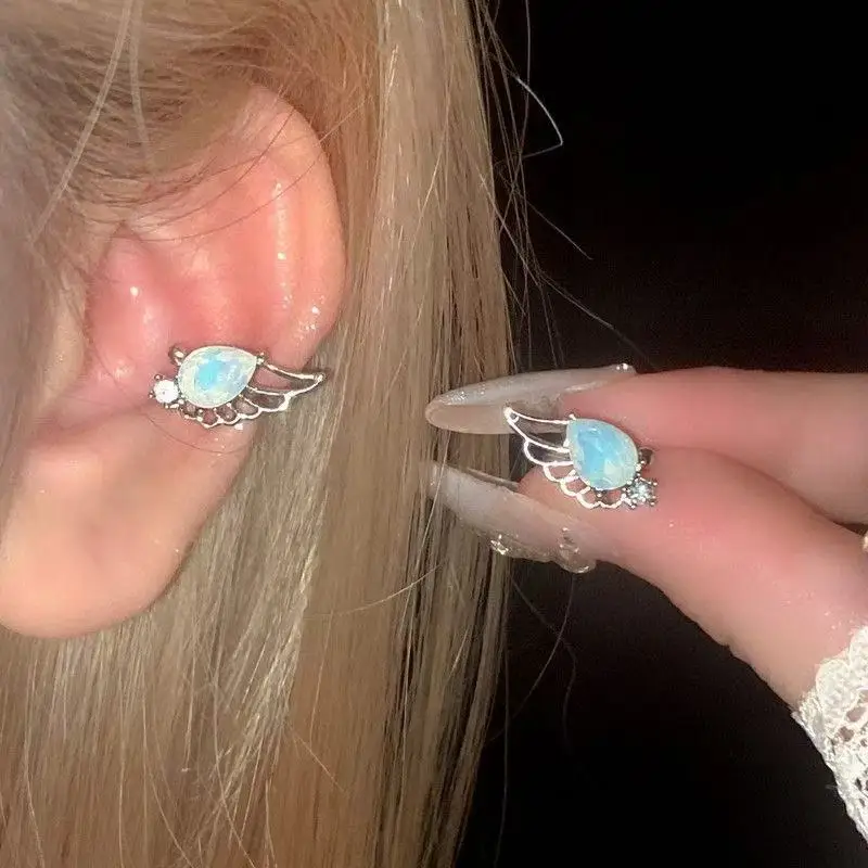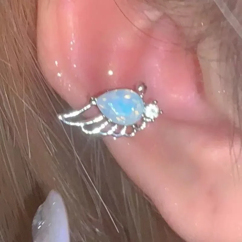DAIIIBABYYY - Crystal Wing Clip Earrings for Women Without Pierced Ears Luxurious Exquisite Sweet Romantic Elegant Temperament Jewelry Gift