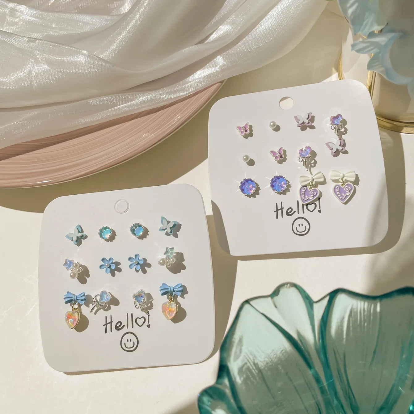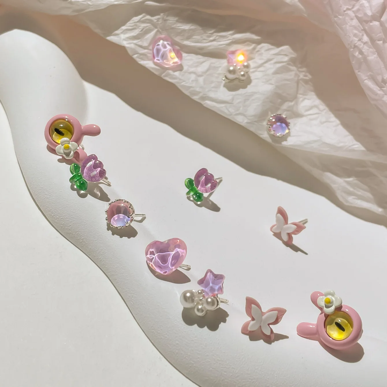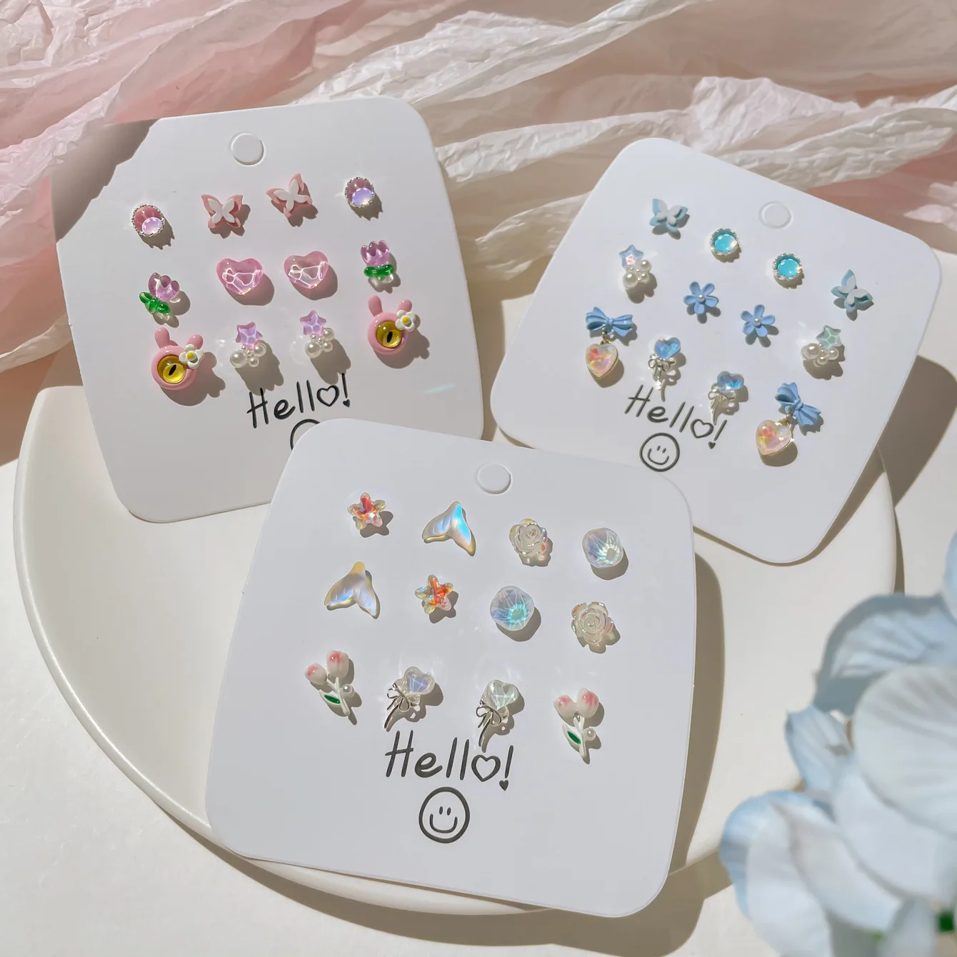DAIIIBABYYY - Cute Pink Heart Butterfly Cat Cartoon Stud Earrings Set for Women Fashion Girls Dreamy Bow Pearl Floral Earring Jewelry