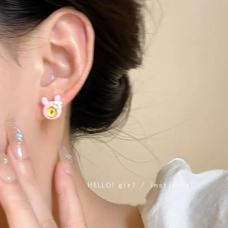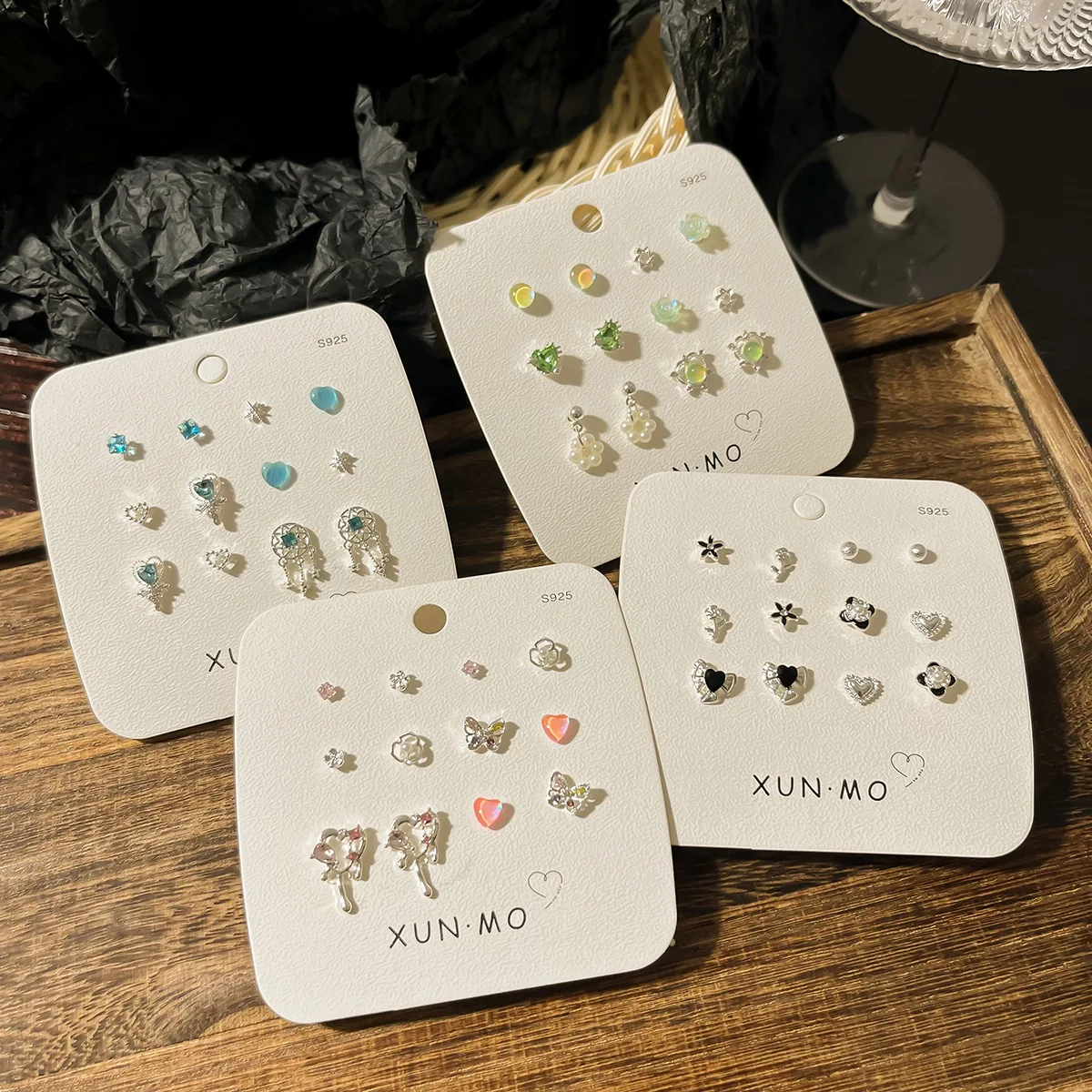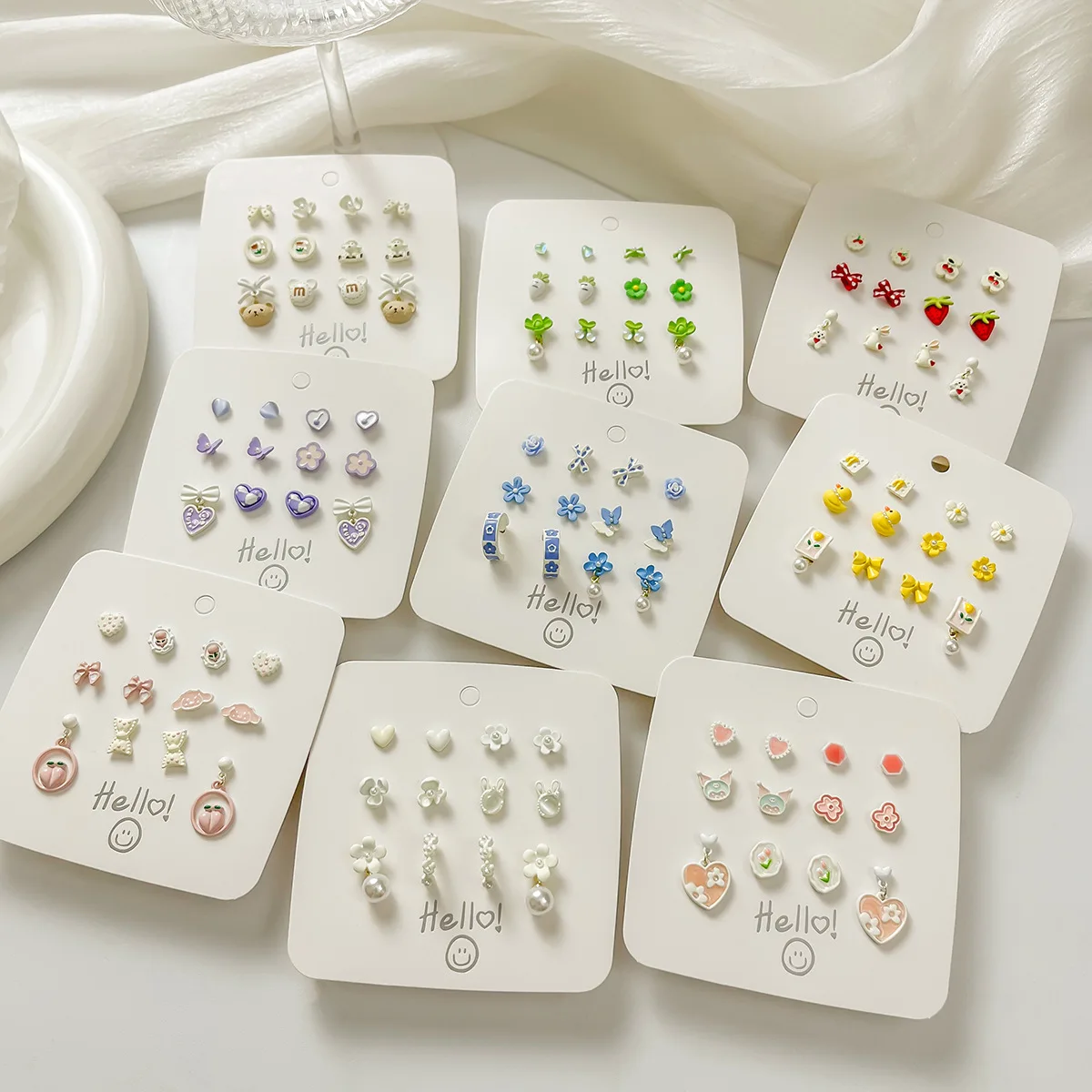 DAIIIBABYYY - Cute Pink Heart Butterfly Cat Cartoon Stud Earrings Set for Women Fashion Girls Dreamy Bow Pearl Floral Earring Jewelry