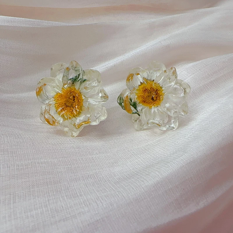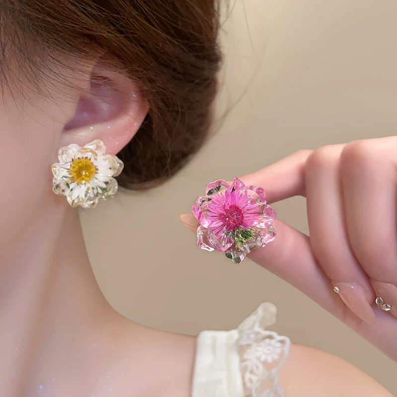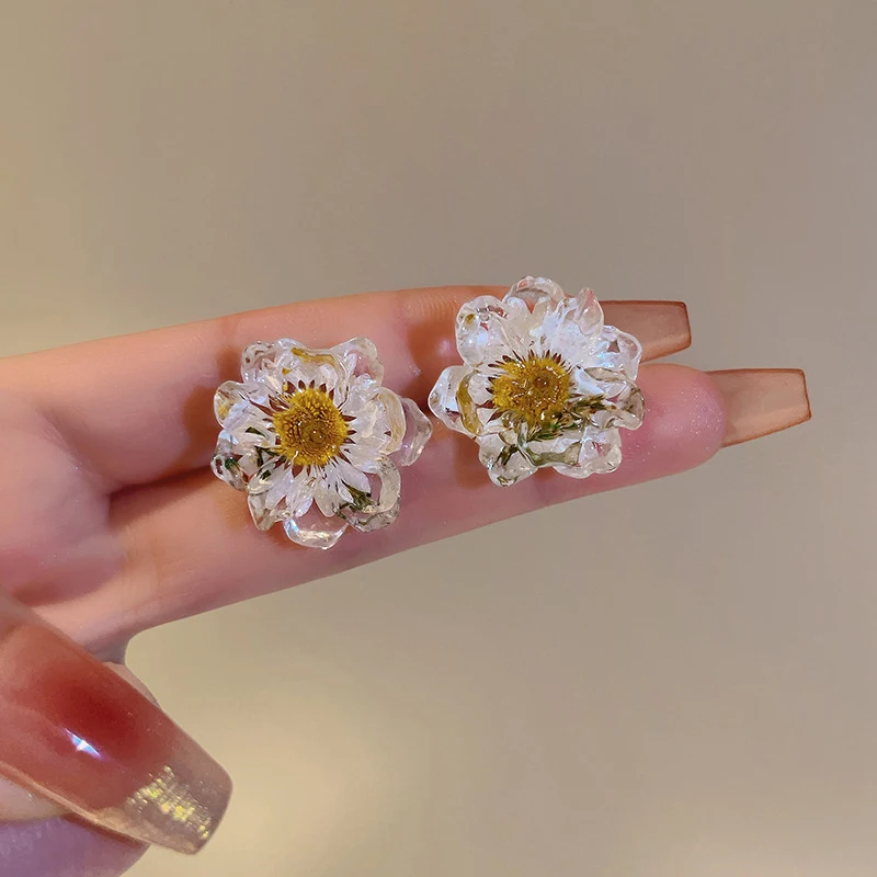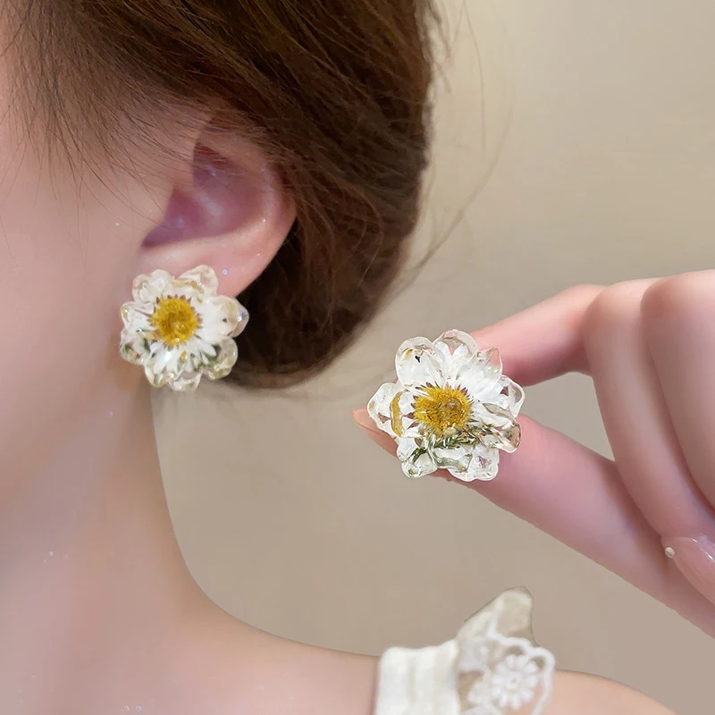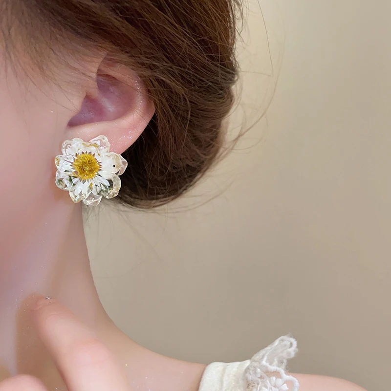 Daiiibabyyy Dried Daisy Transparent Resin Stud Earrings for Women Exquisite Sweet Ear Studs Cute Daily Casual Versatile Jewelry Gifts 2025
