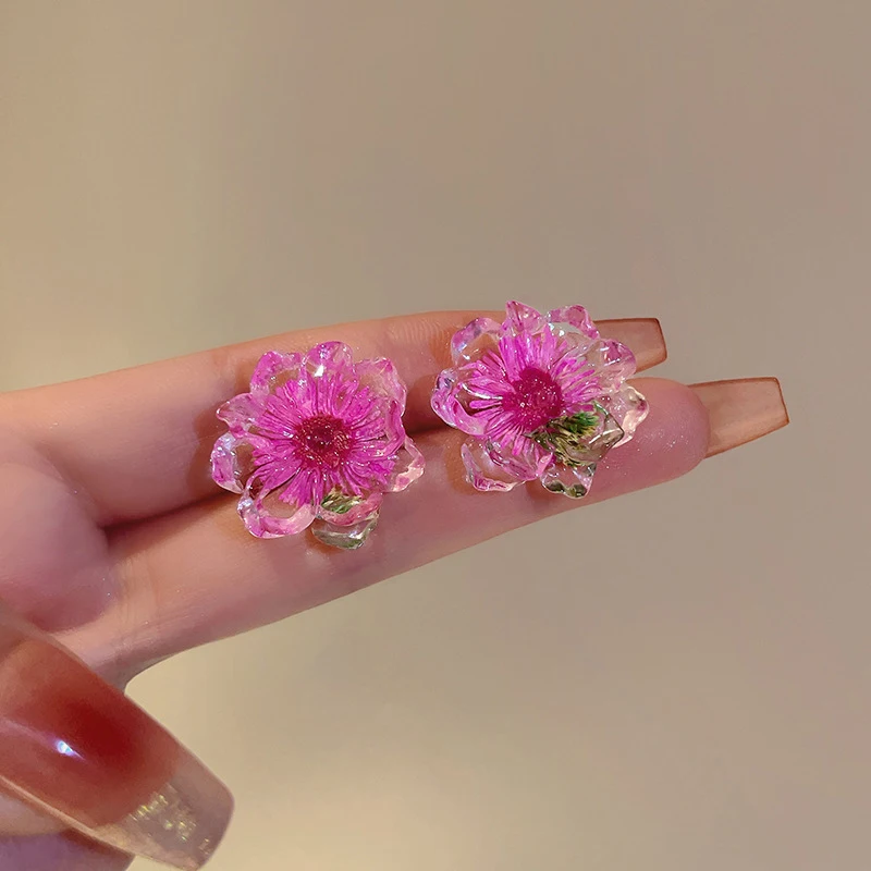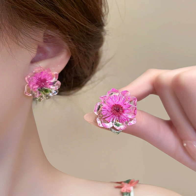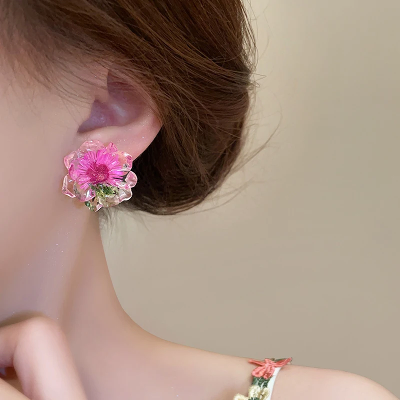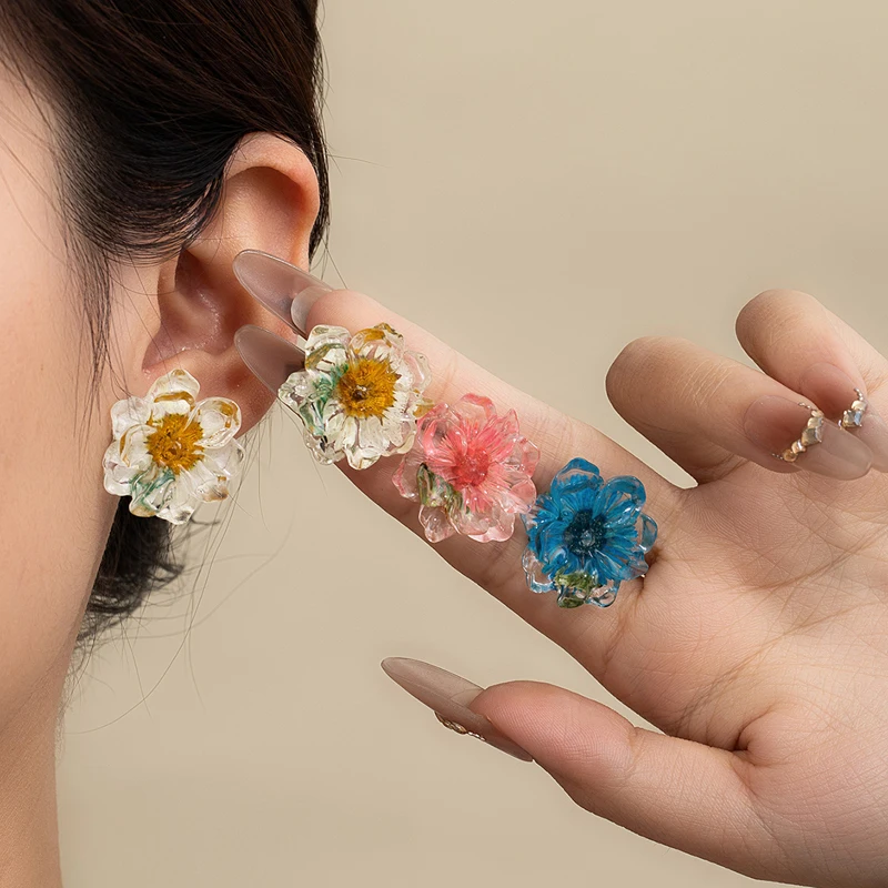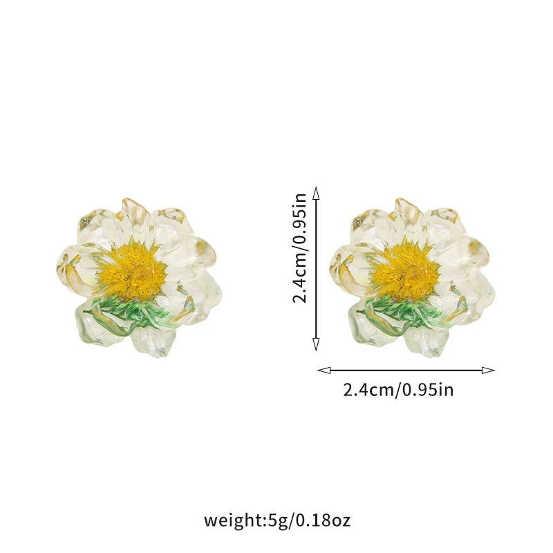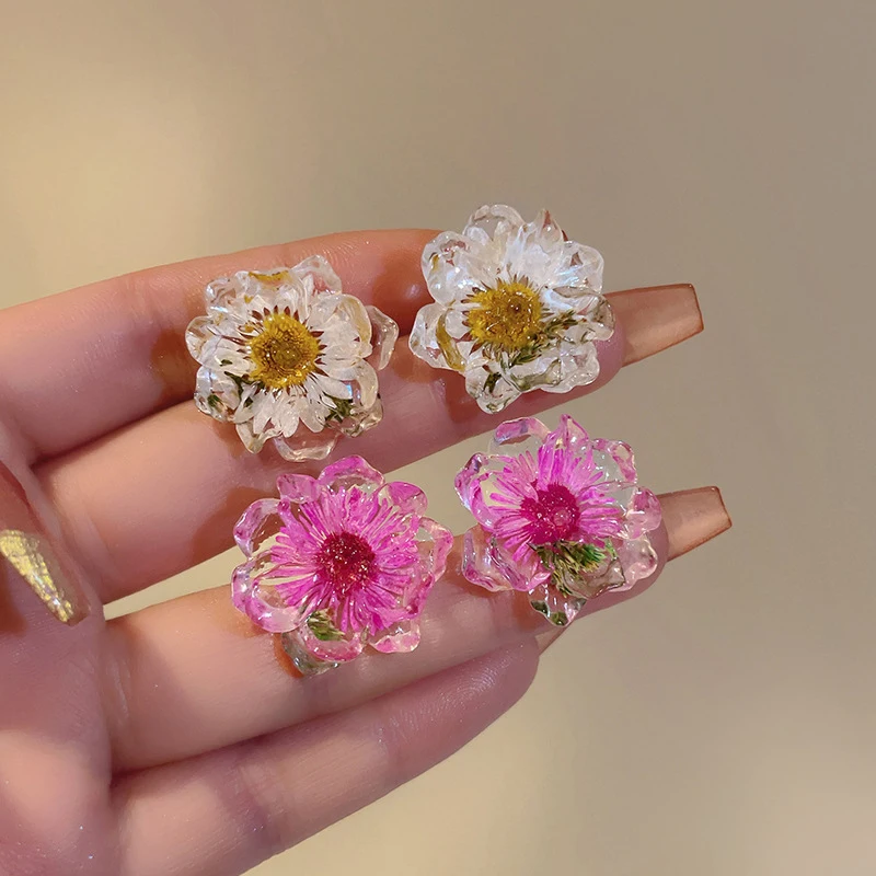 Daiiibabyyy Dried Daisy Transparent Resin Stud Earrings for Women Exquisite Sweet Ear Studs Cute Daily Casual Versatile Jewelry Gifts 2025