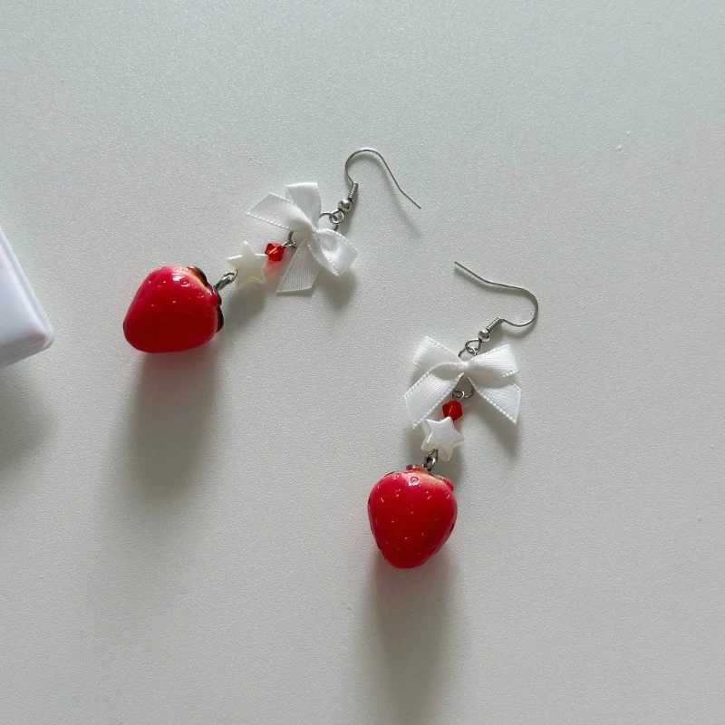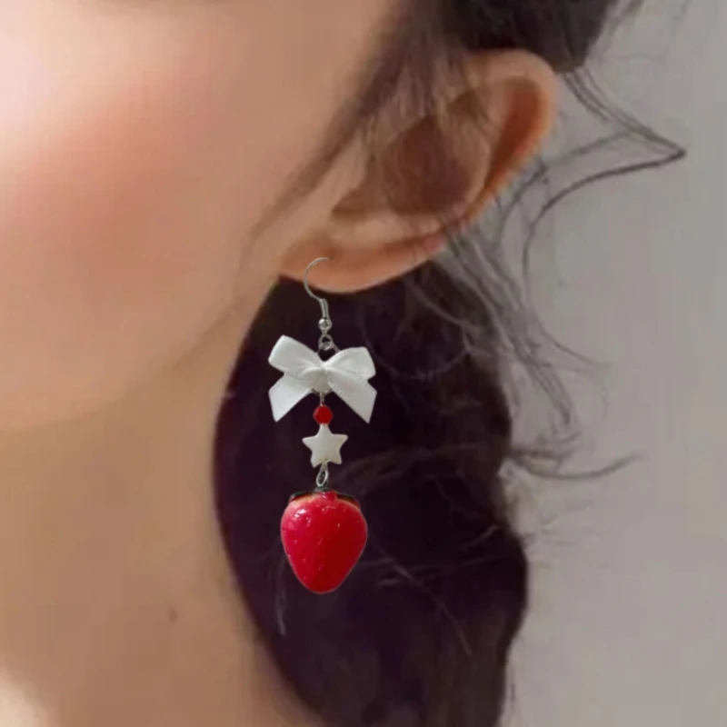 DAIIIBABYYY  -  Elegant Bowknot Strawberry Ear Rings Sweet and Delicate Fruit Eardrops Gift Women Ornament for Daily Wear