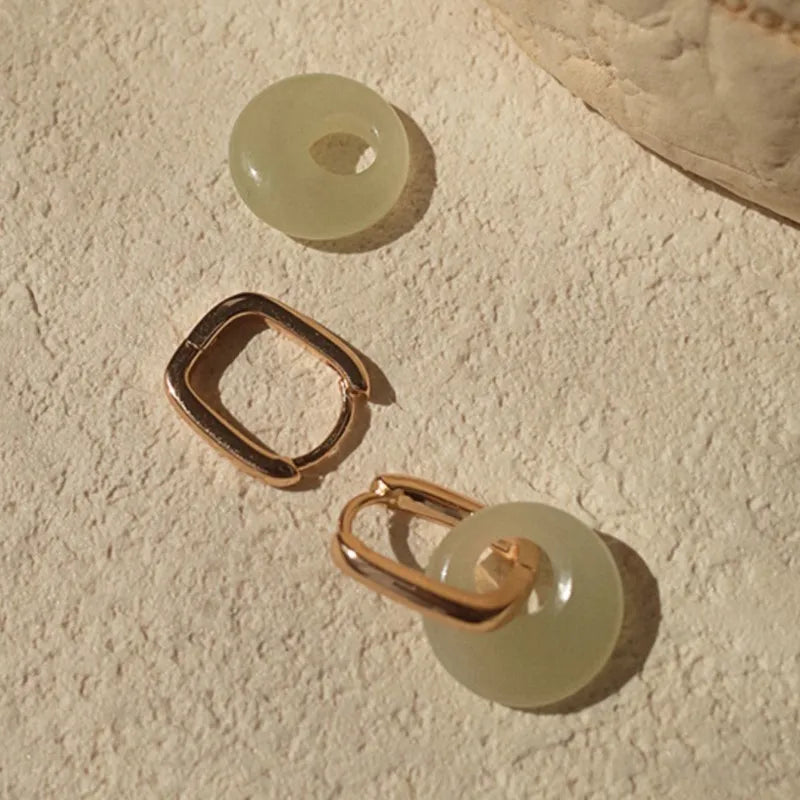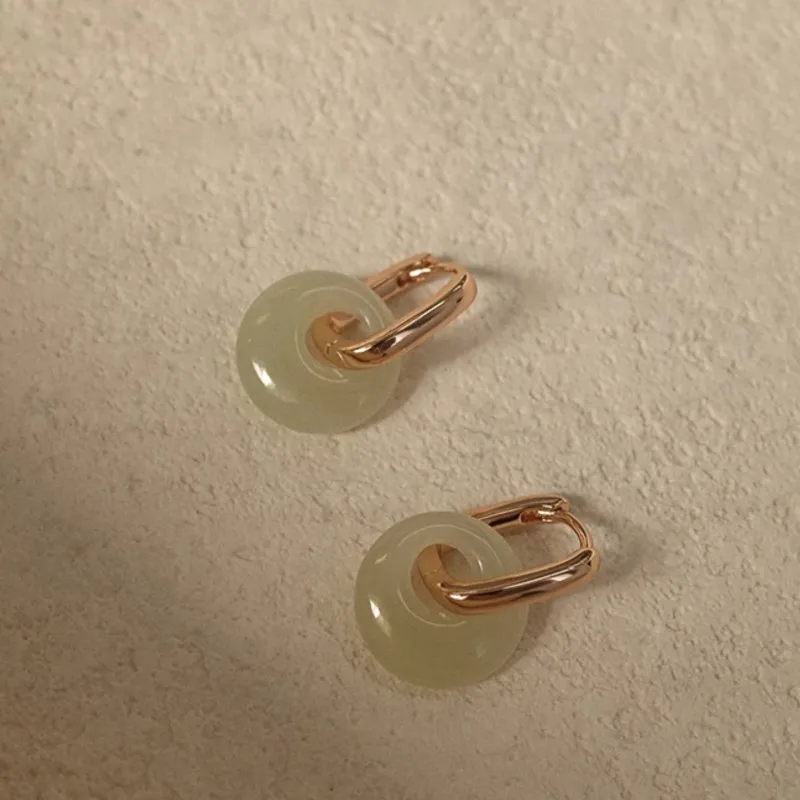 Daiiibabyyy Elegant Imitation Hotan Jade Hoop Earrings for Women New Fashion Temperament Party Earring Jewelry Gifts