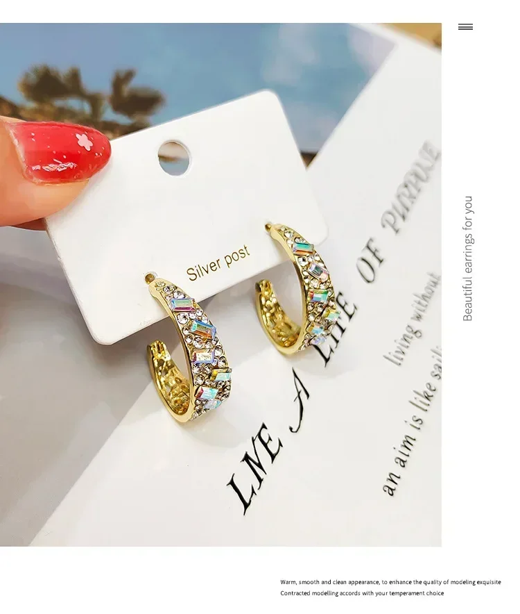 Daiiibabyyy Exquisite Gold Plated C-ring Earrings Fashion Temperament Colorful Zircon Earrings Wedding Jewelry Accessories Valentine's Gift
