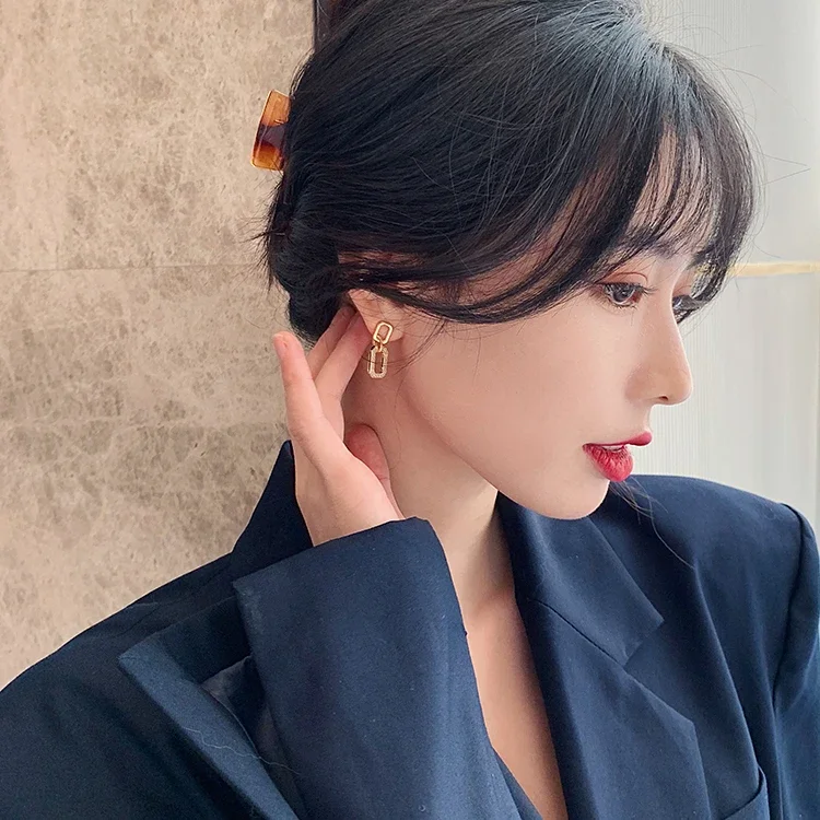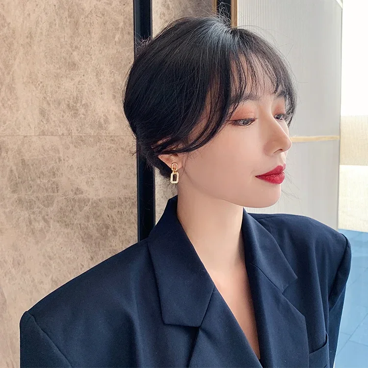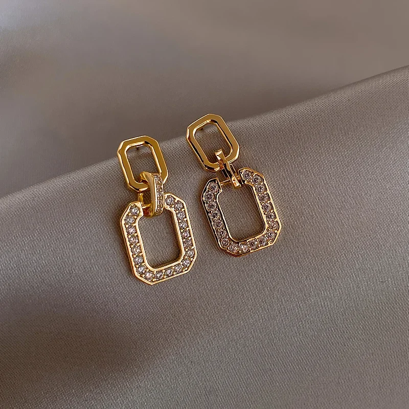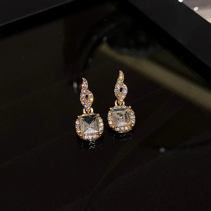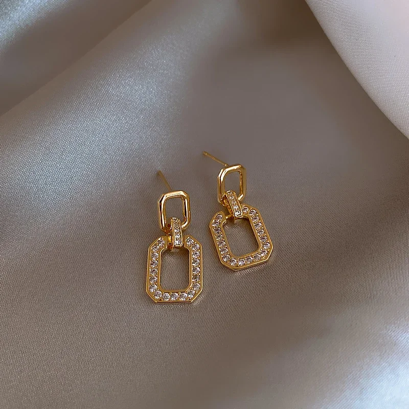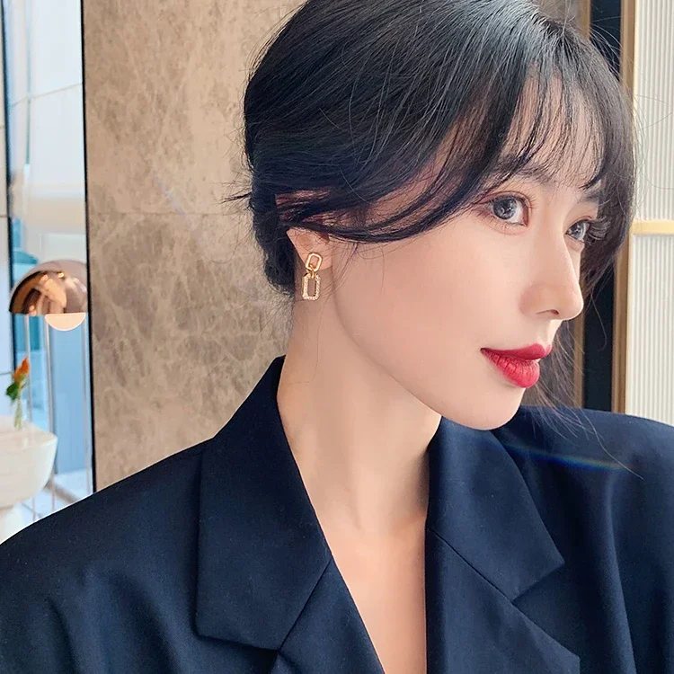 Daiiibabyyy Exquisite Luxury Micro Inlaid Zircon Geometric Square Earrings for Woman Korean Fashion Jewelry Party Girls Unusual Earring