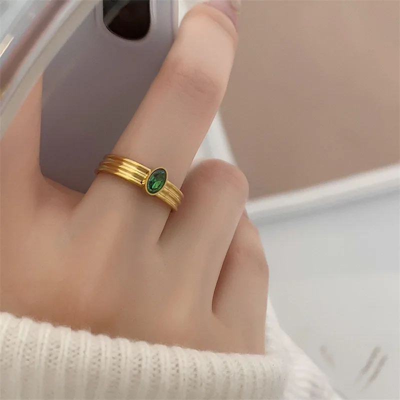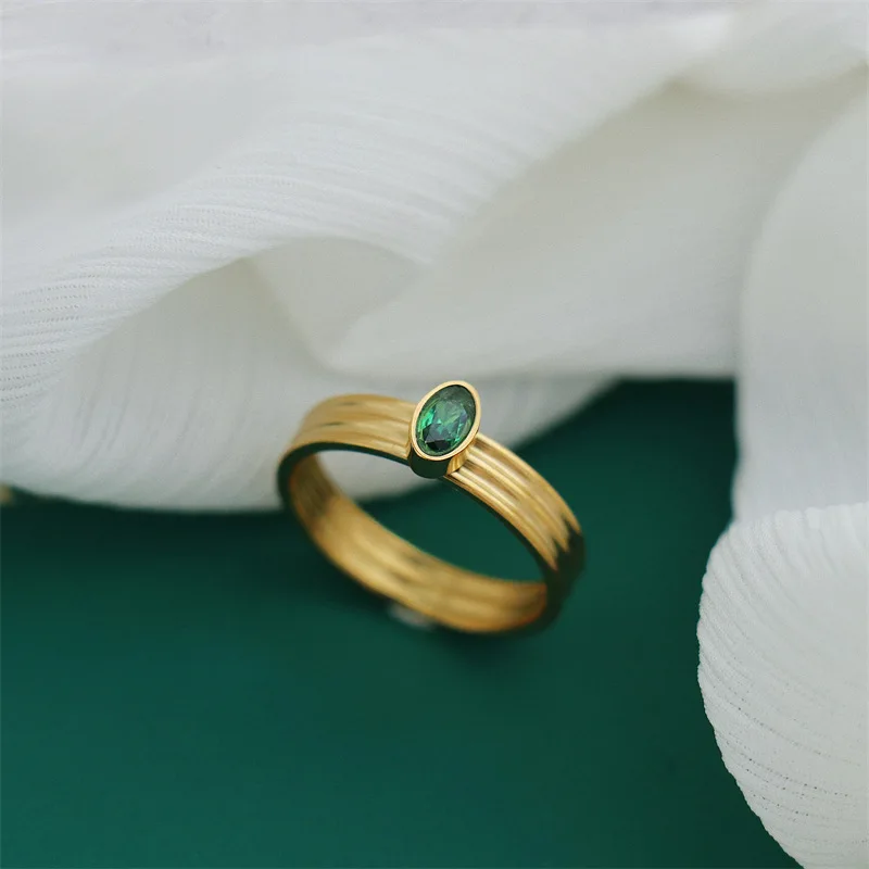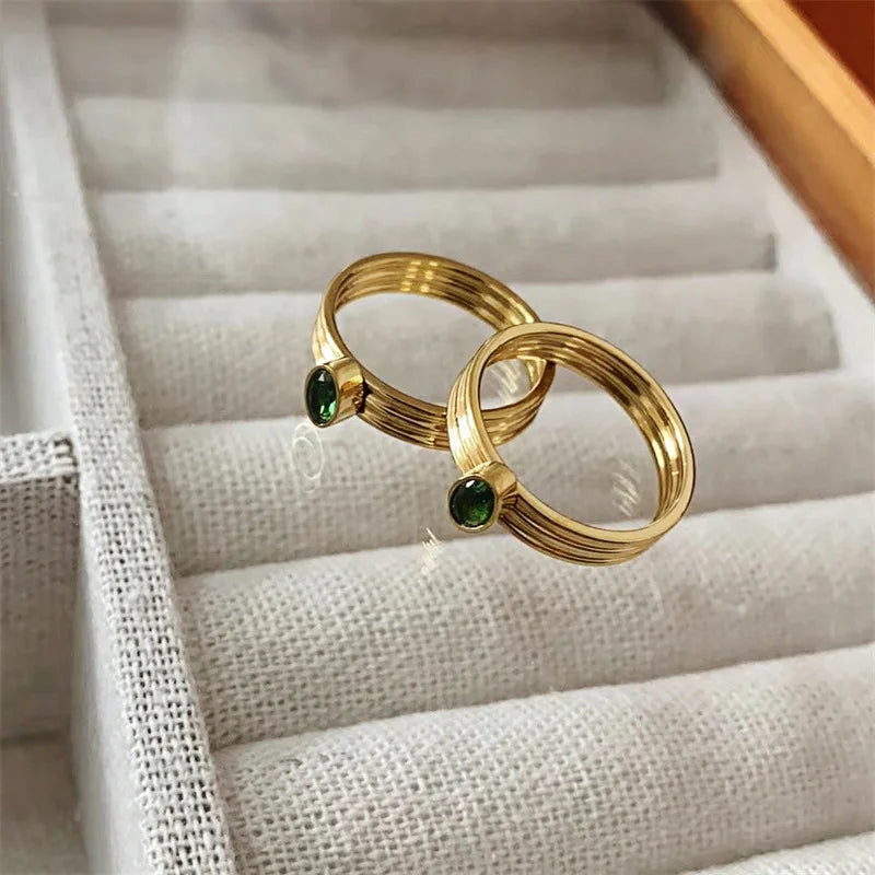 DAIIIBABYYY - Exquisite Stainless Steel Green Cubic Zirconia Band Rings for Women Waterproof PVD Plated Stacker Rings Jewelry Gift