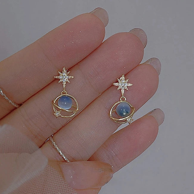 DAIIIBABYYY - Fashion Cosmic Star River Earrings Blue Opal Niche Unique Planet Earrings Ear Studs Women Versatile Ear Jewelry