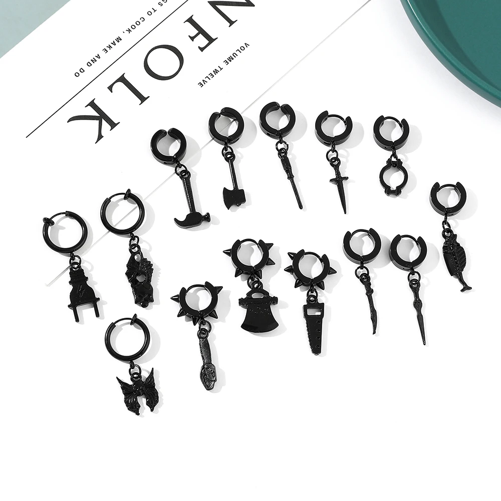 DAIIIBABYYY  -  Fashion Hip Hop Weapon Pendant Earrings Gothic Skull Ear Clip Earrings for Women Men Trendy Ear Accessories Charm Jewelry Gifts
