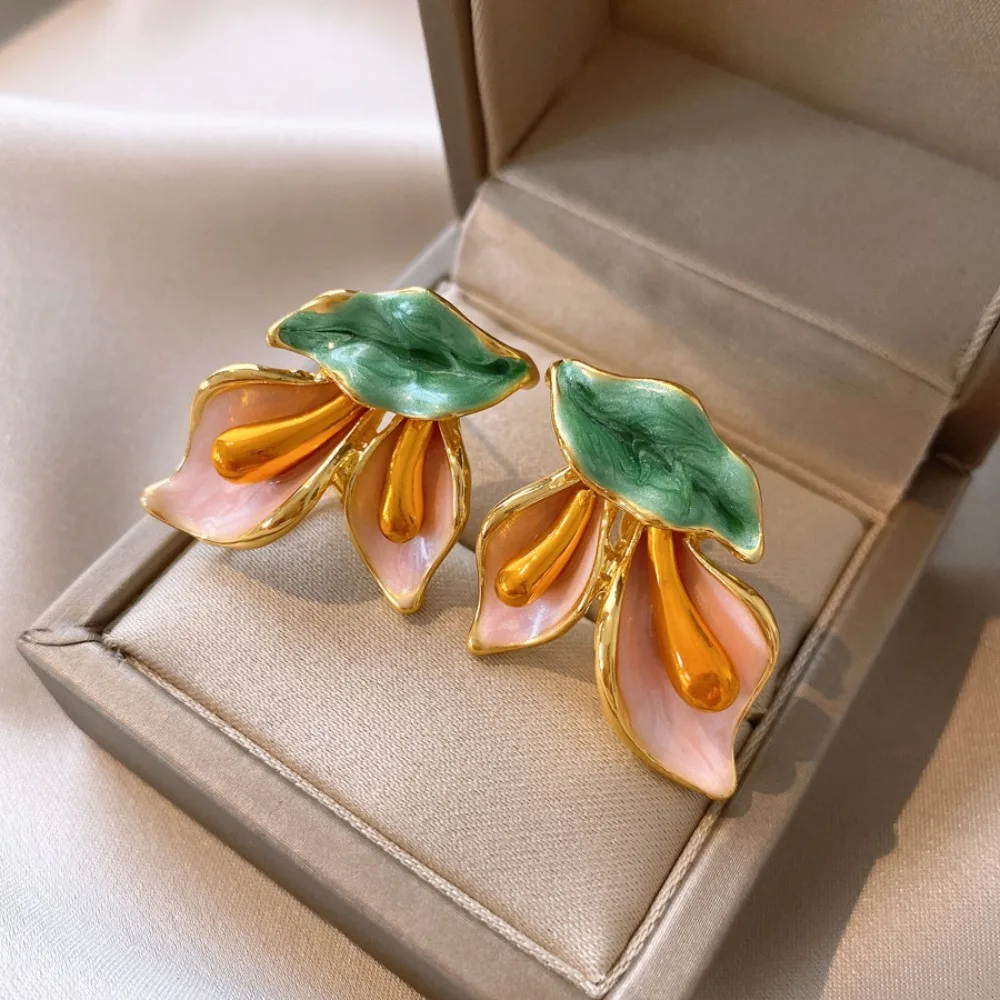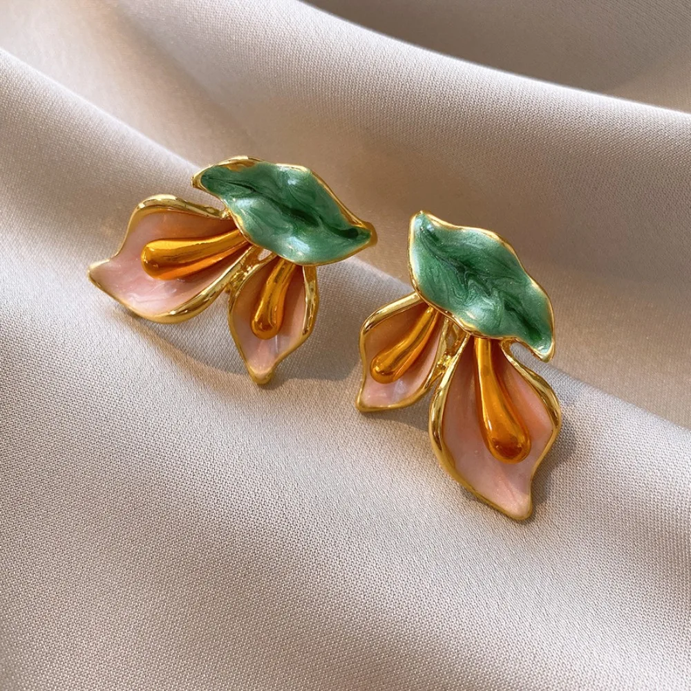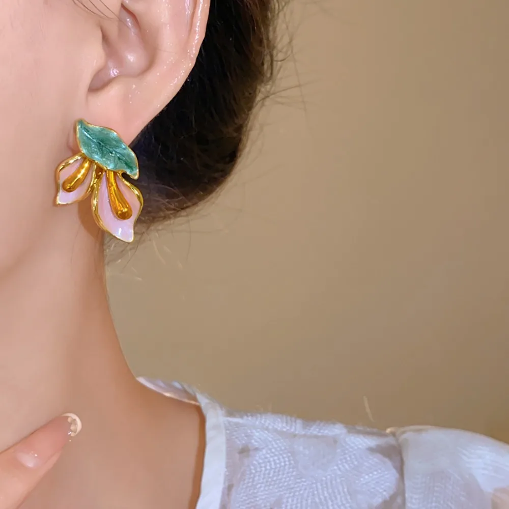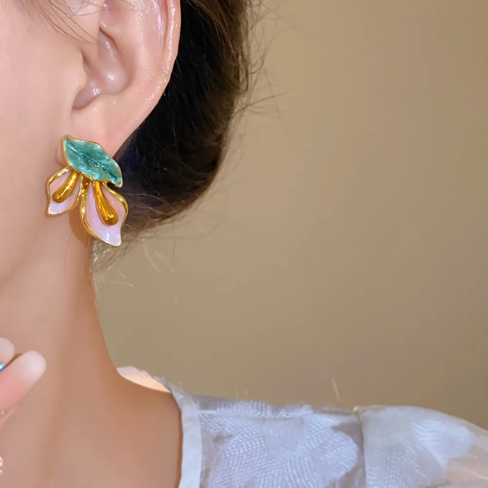 Daiiibabyyy Fashion Light Luxury Flower Earrings Oil Drop Charms Vintage Earrings Women Ear Jewelry Sweet Stud Earrings Gift