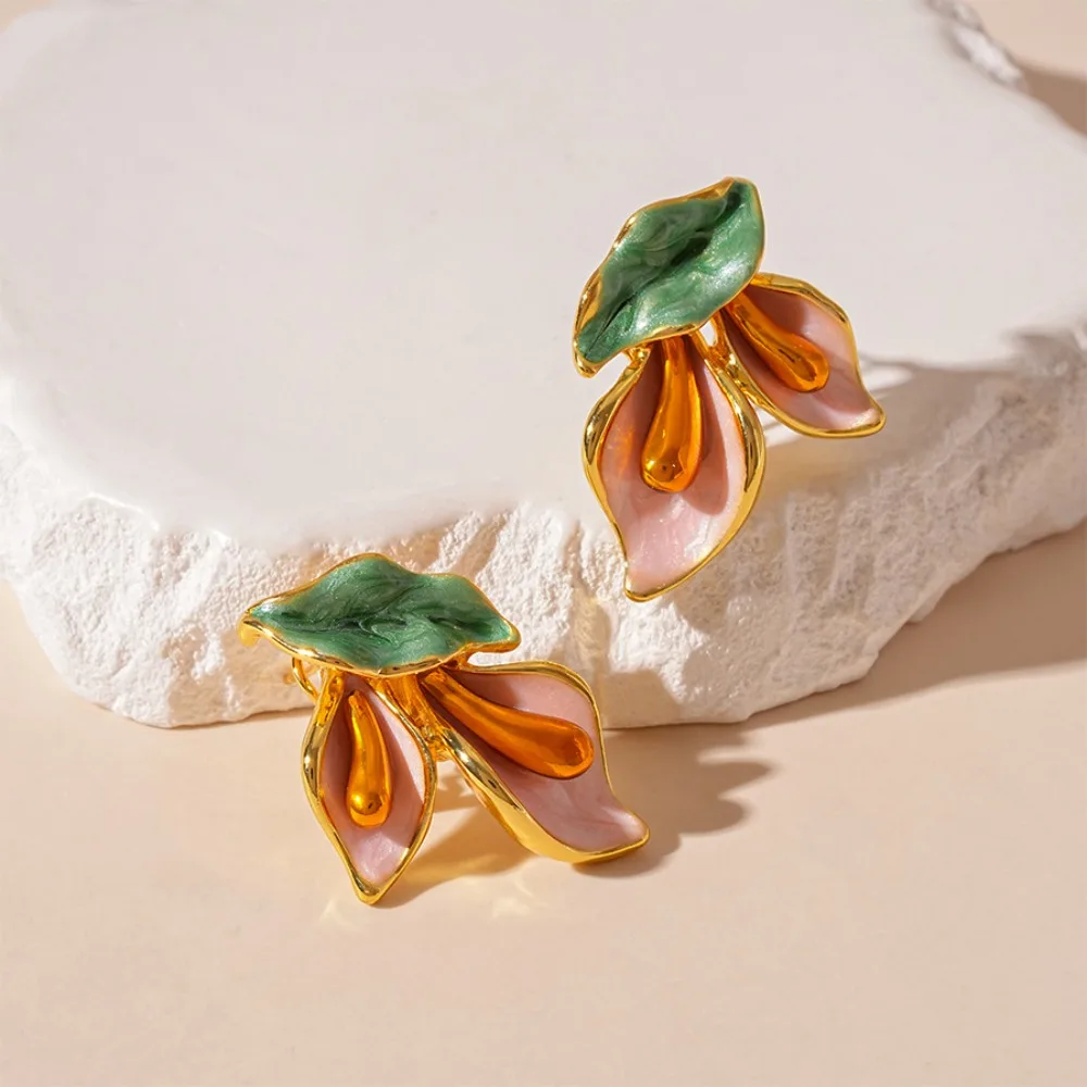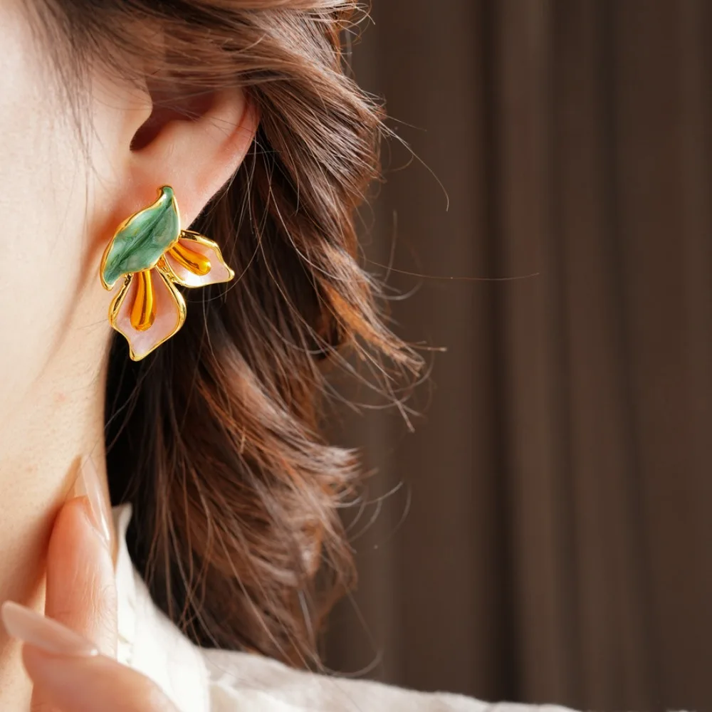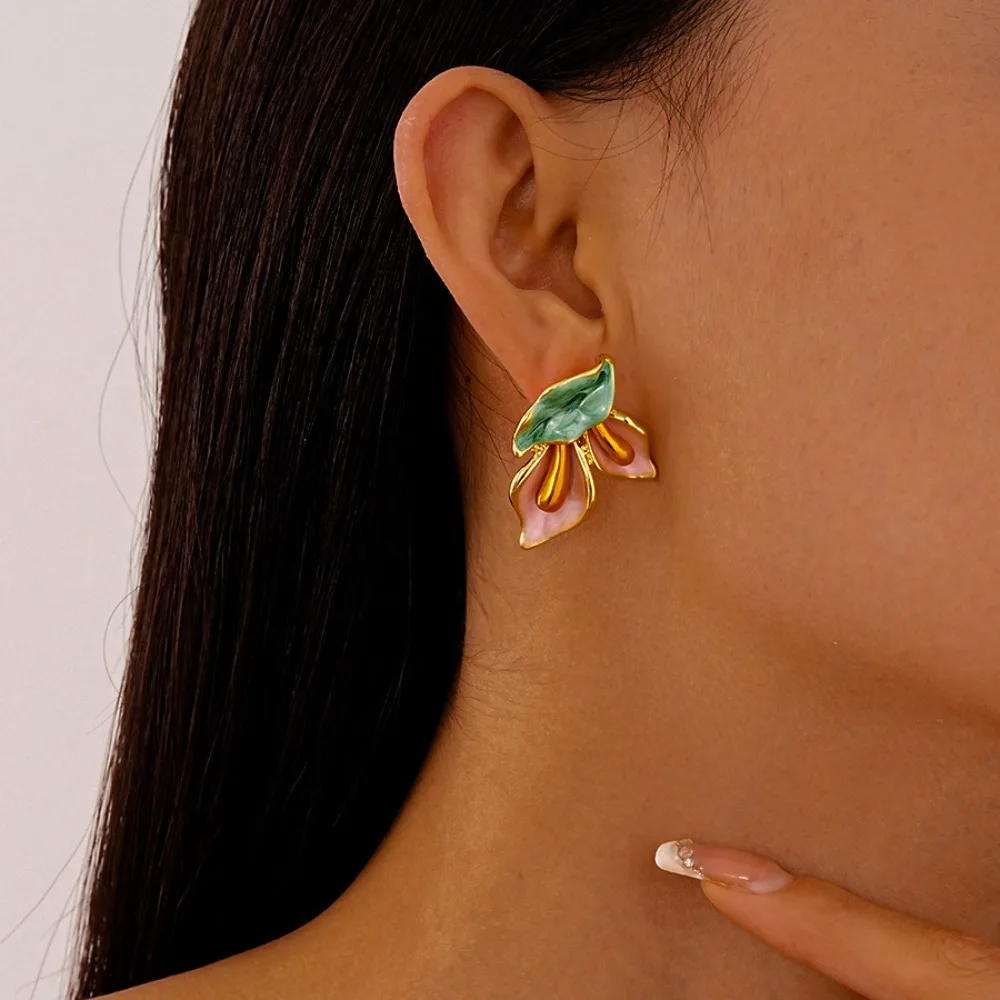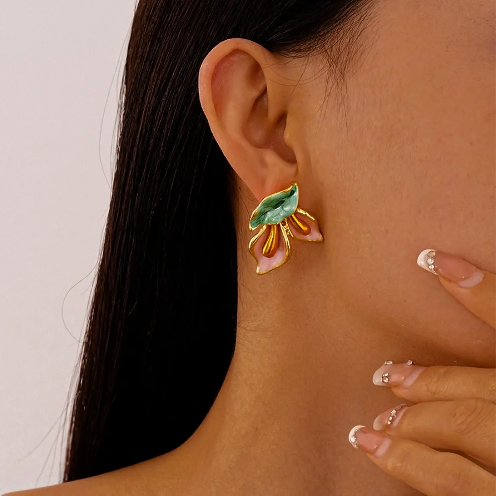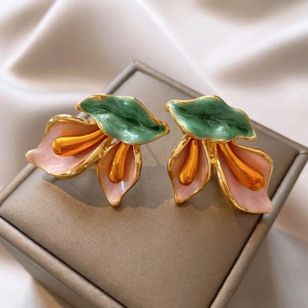 Daiiibabyyy Fashion Light Luxury Flower Earrings Oil Drop Charms Vintage Earrings Women Ear Jewelry Sweet Stud Earrings Gift