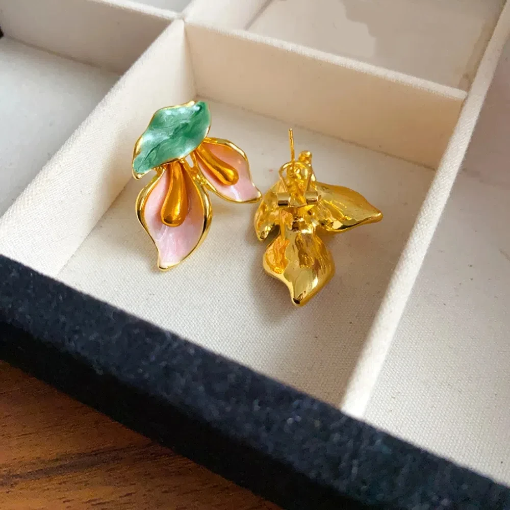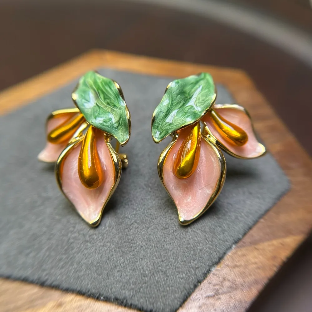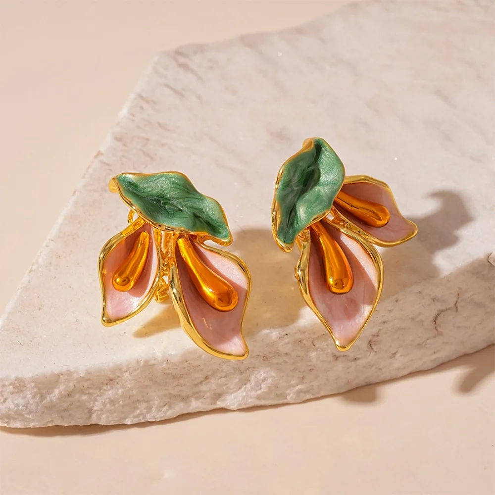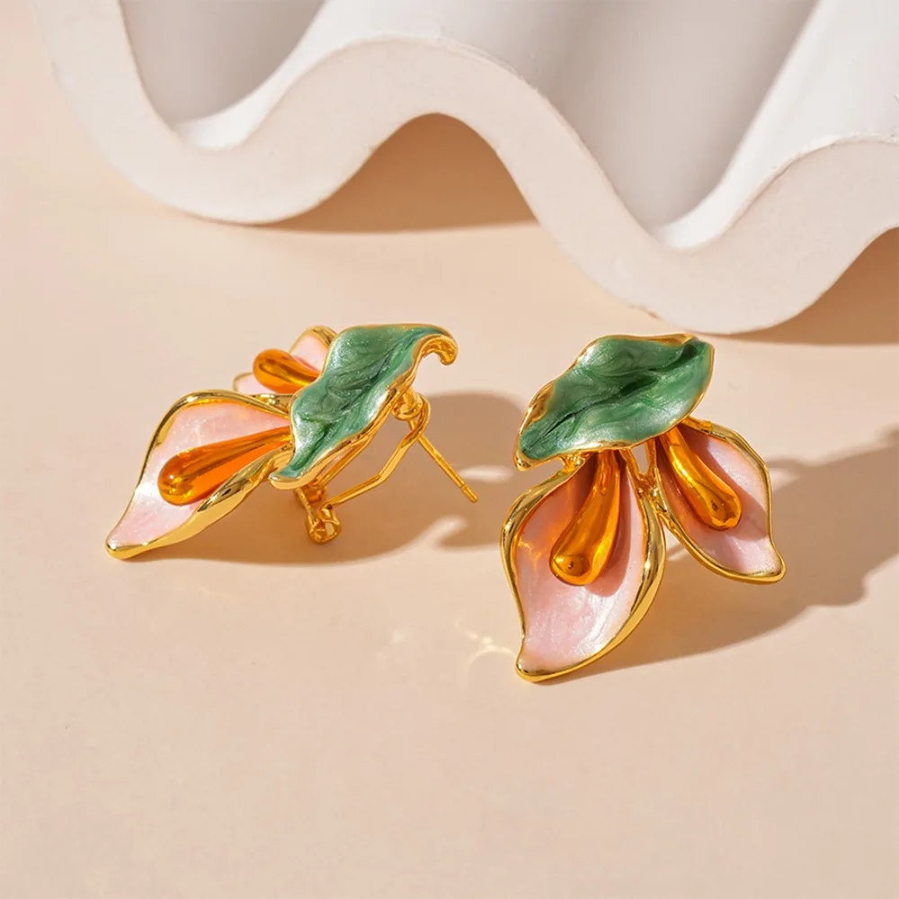 Daiiibabyyy Fashion Light Luxury Flower Earrings Oil Drop Charms Vintage Earrings Women Ear Jewelry Sweet Stud Earrings Gift