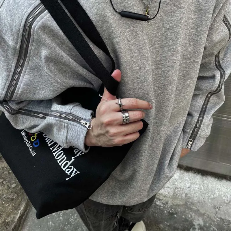 DAIIIBABYYY  -  Fashion Silver Color Star Rings for Women Men Retro Punk Geometric Smooth Personality Wide Couple Rings Party Jewelry Gifts 2024