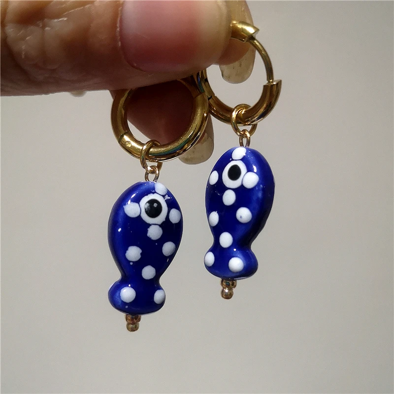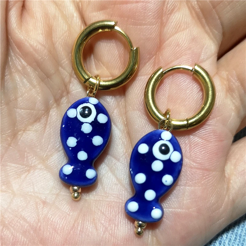 Daiiibabyyy Fashionable Ocean Ceramic Fish Hoop Earrings For Women Summer Bohemian Jewelry Beach Party Accessories Gift Men 2025 Trendy