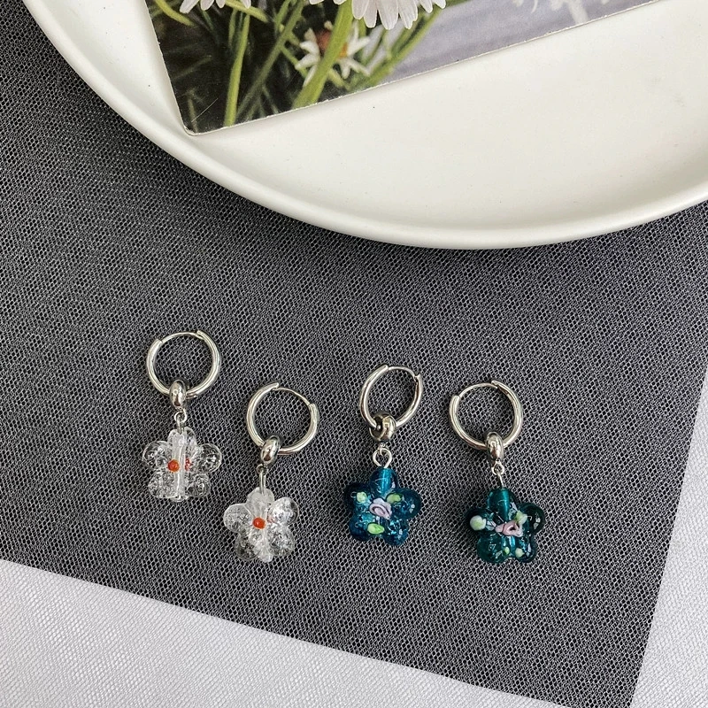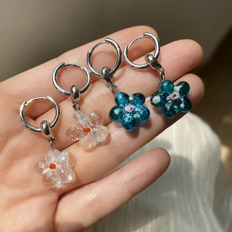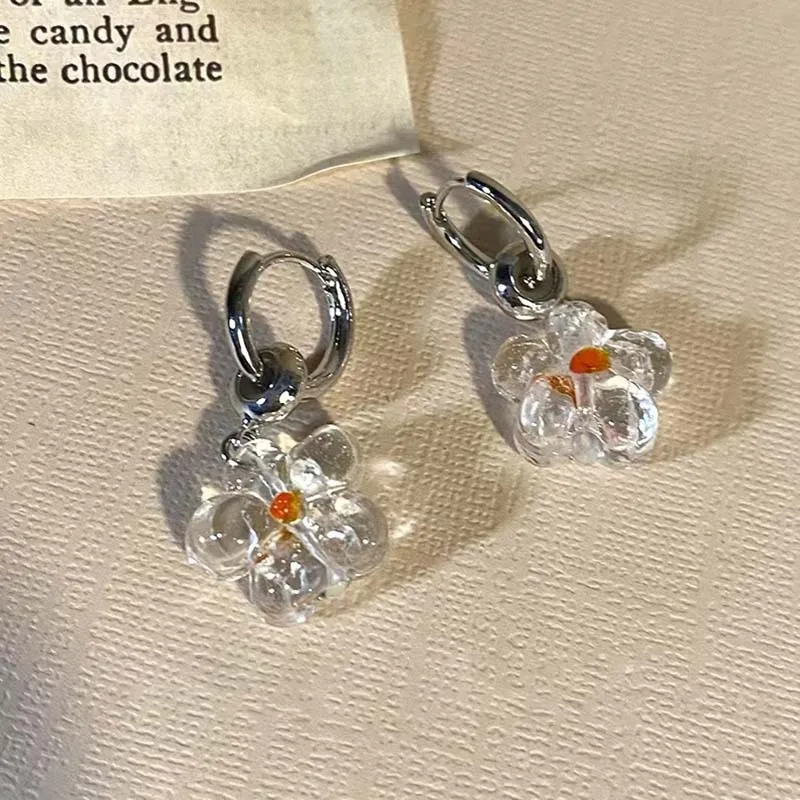 DAIIIBABYYY - Flower Glazed Earrings Clear Crystal Texture Paired Unique Cute Colorful Earrings Sweet Trendy Delicate Earrings Women's Jewelry