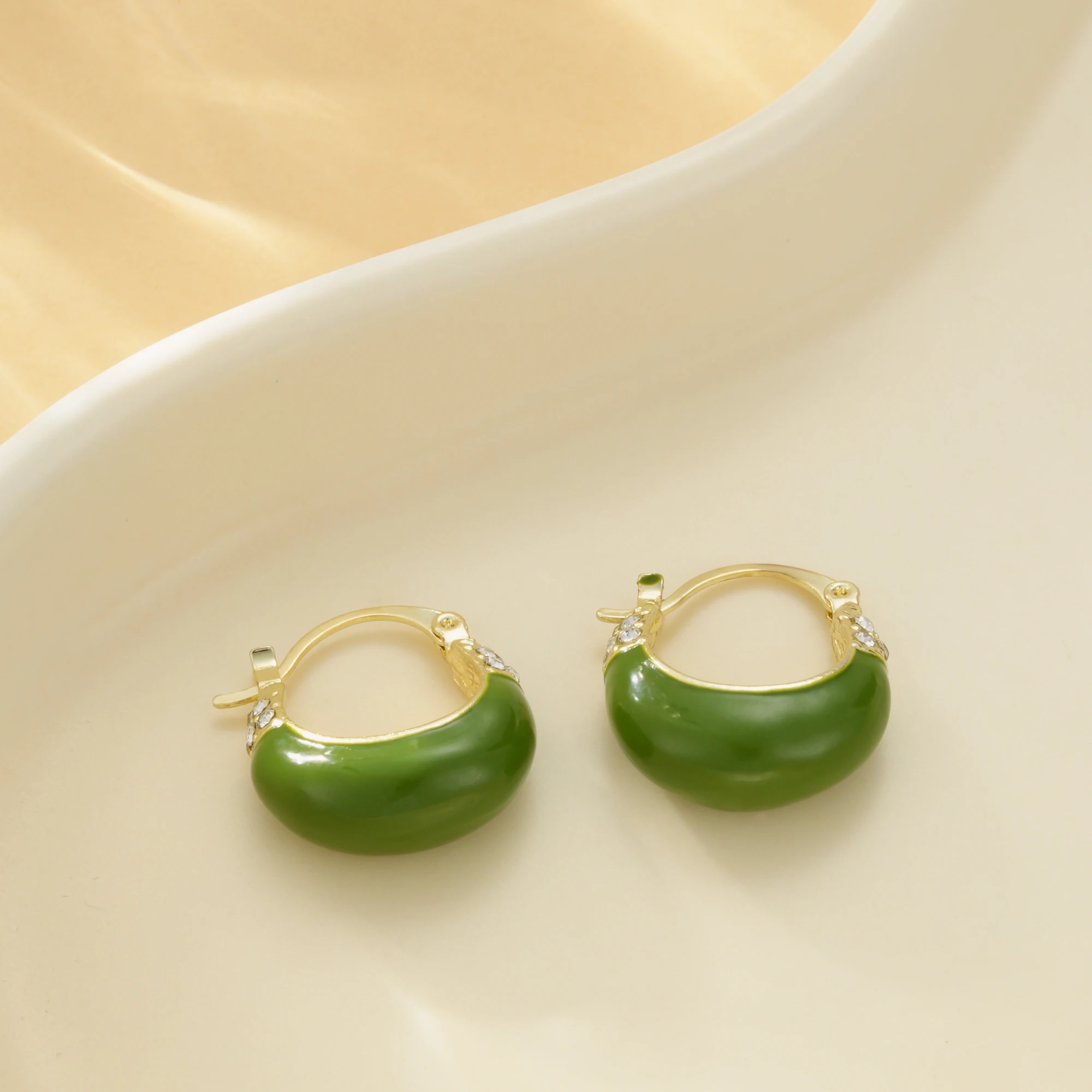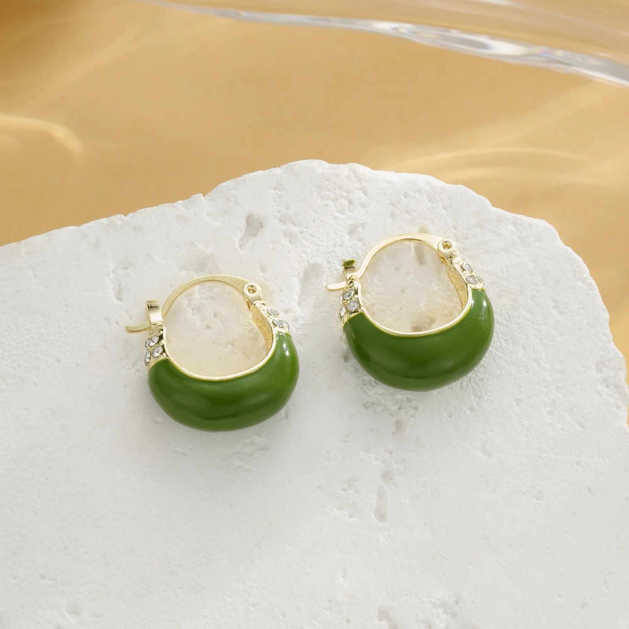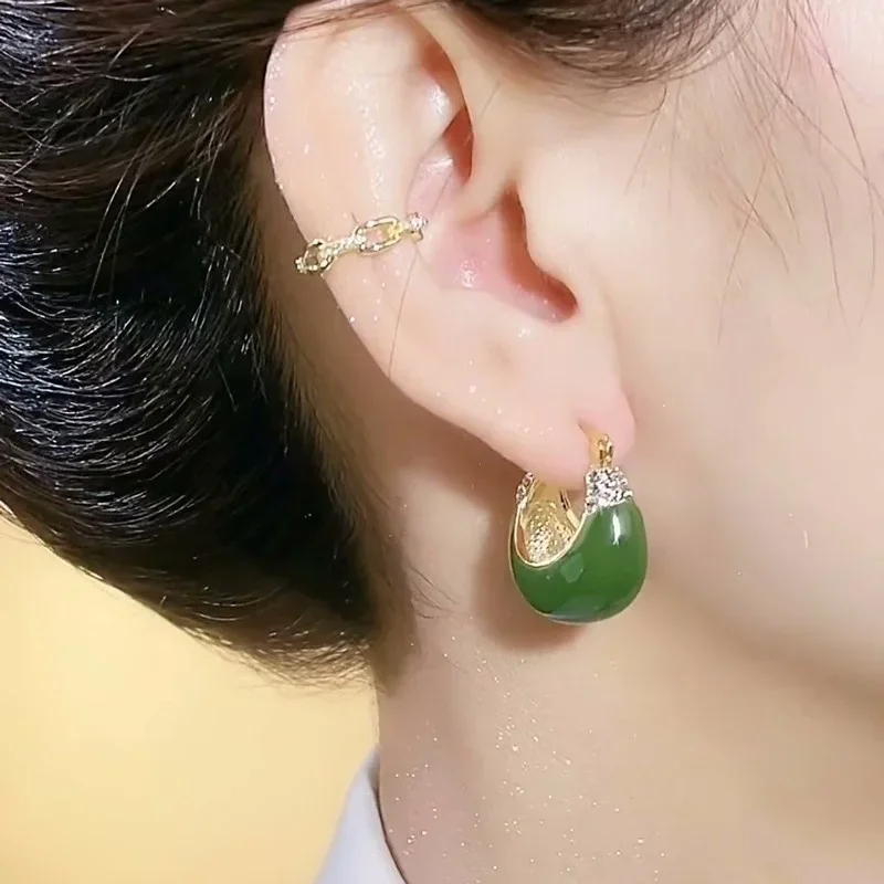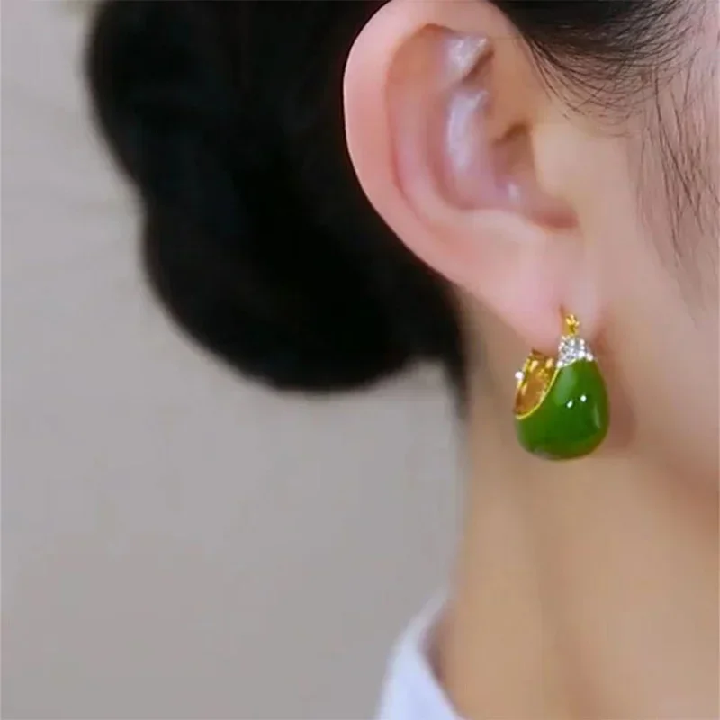 DAIIIBABYYY - French Elegant Sparkling Cubic Zirconia Oil Drop Green Earrings Women's Fashion Glamour Jewelry Earrings Holiday Party Gifts