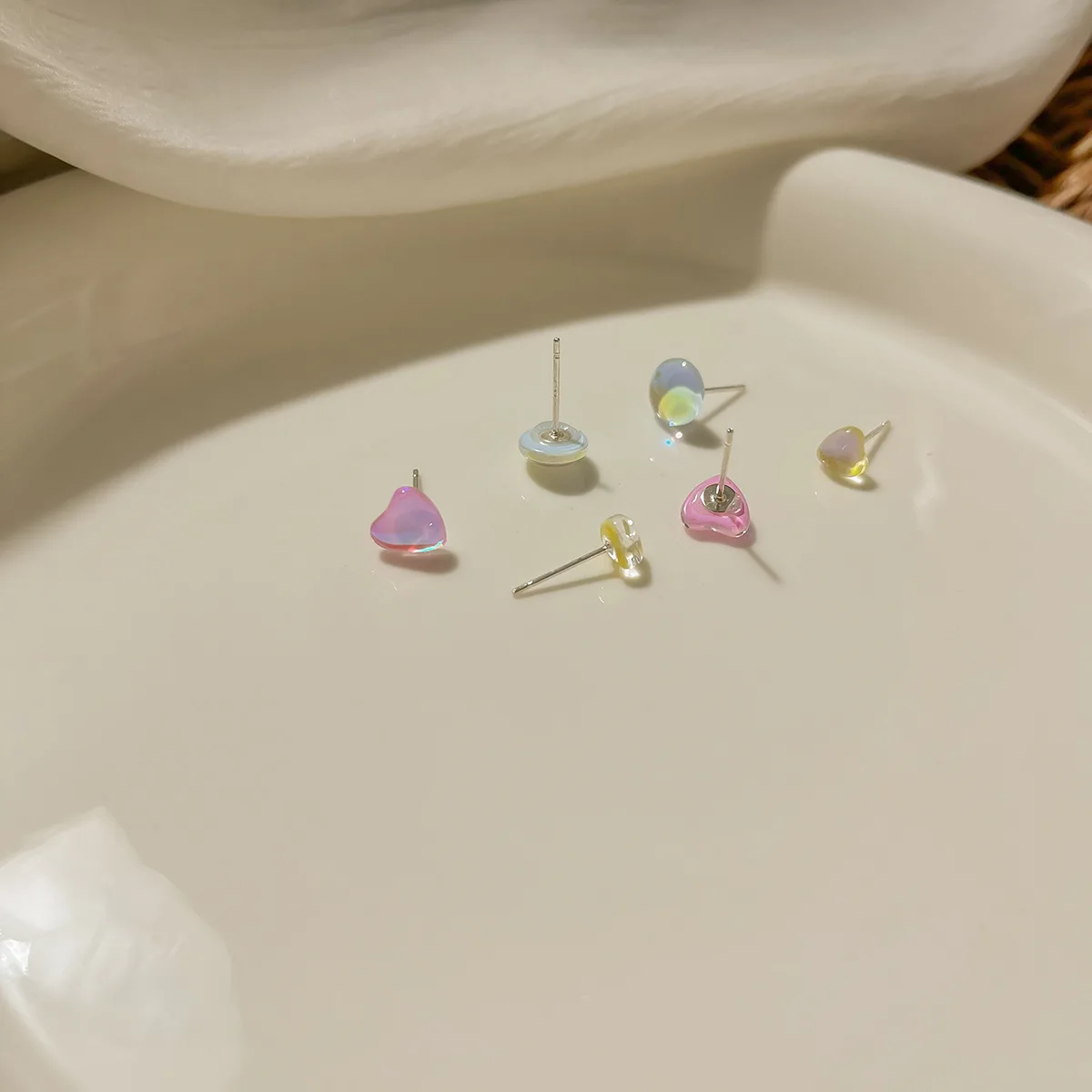DAIIIBABYYY - Geometric Stud Earrings Set Women Laser Colorful Heart Round Butterfly Fish Tail Purple Earring Korean Fashion Jewelry