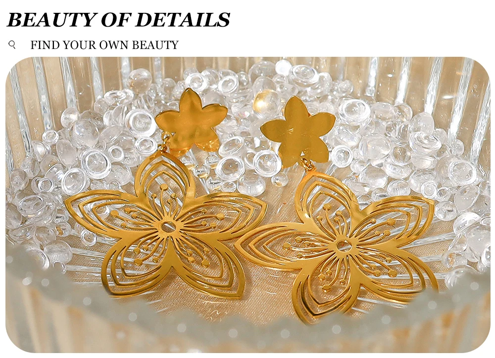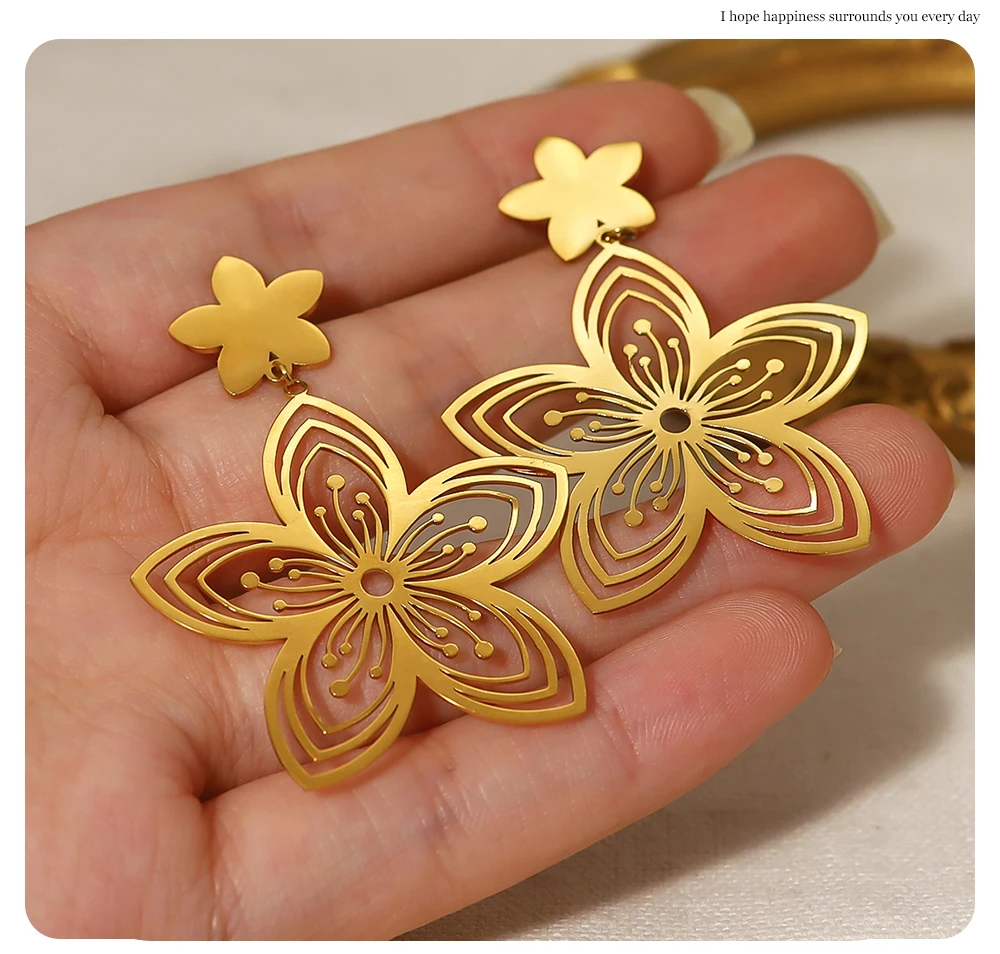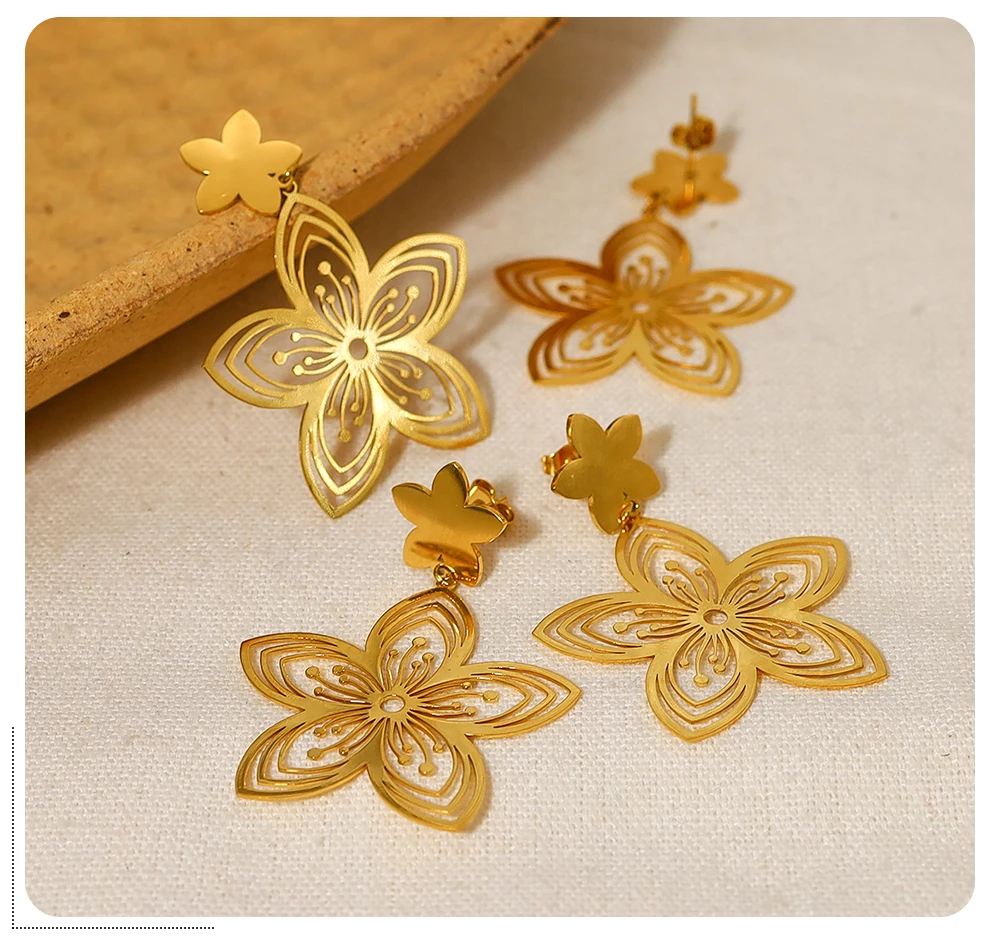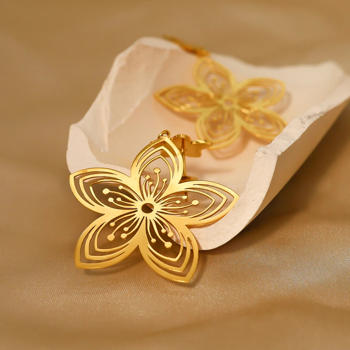 Daiiibabyyy Gold Plated Stainless Steel Hollow Flower Drop Earrings for Women Glossy Dangle Earring Trendy Jewelry