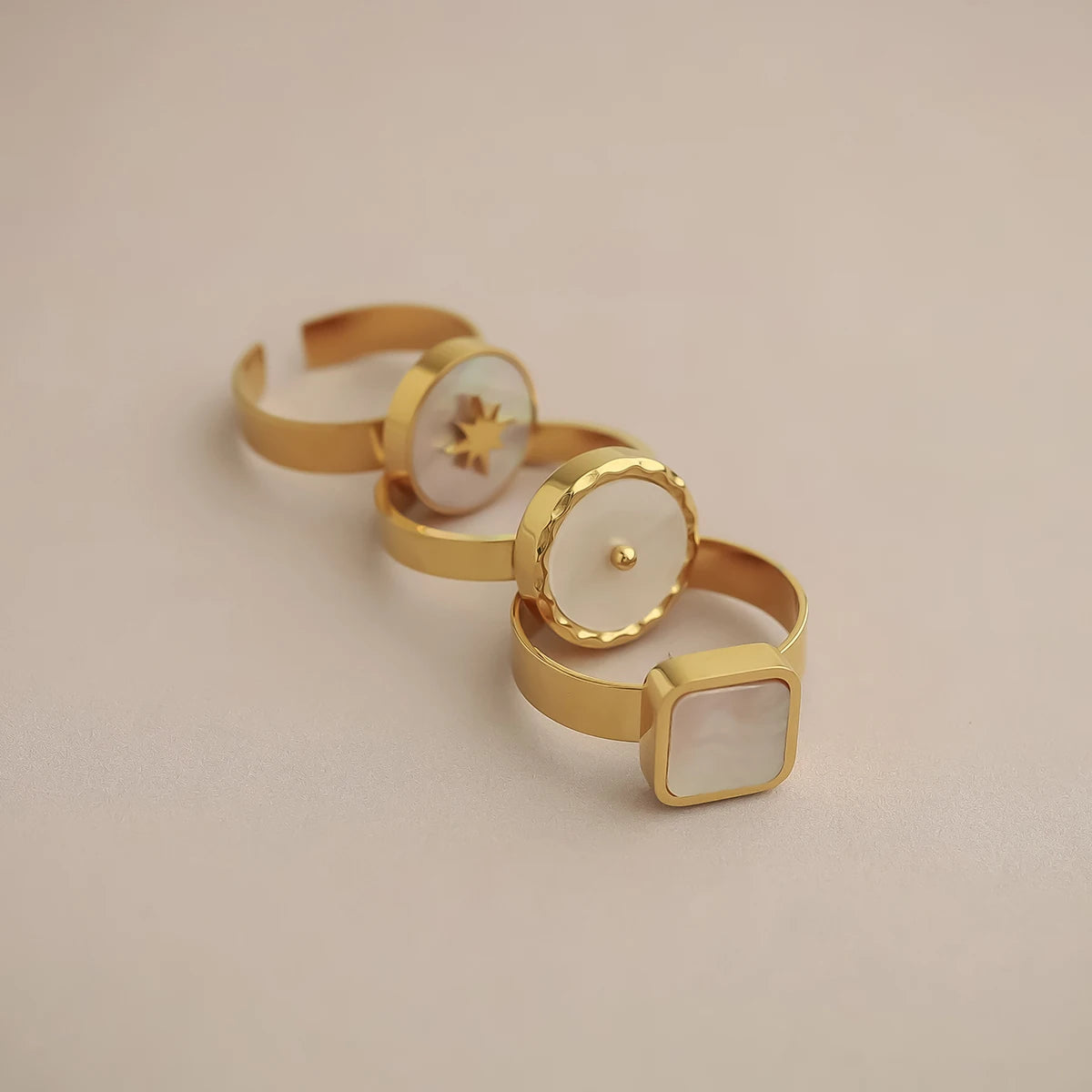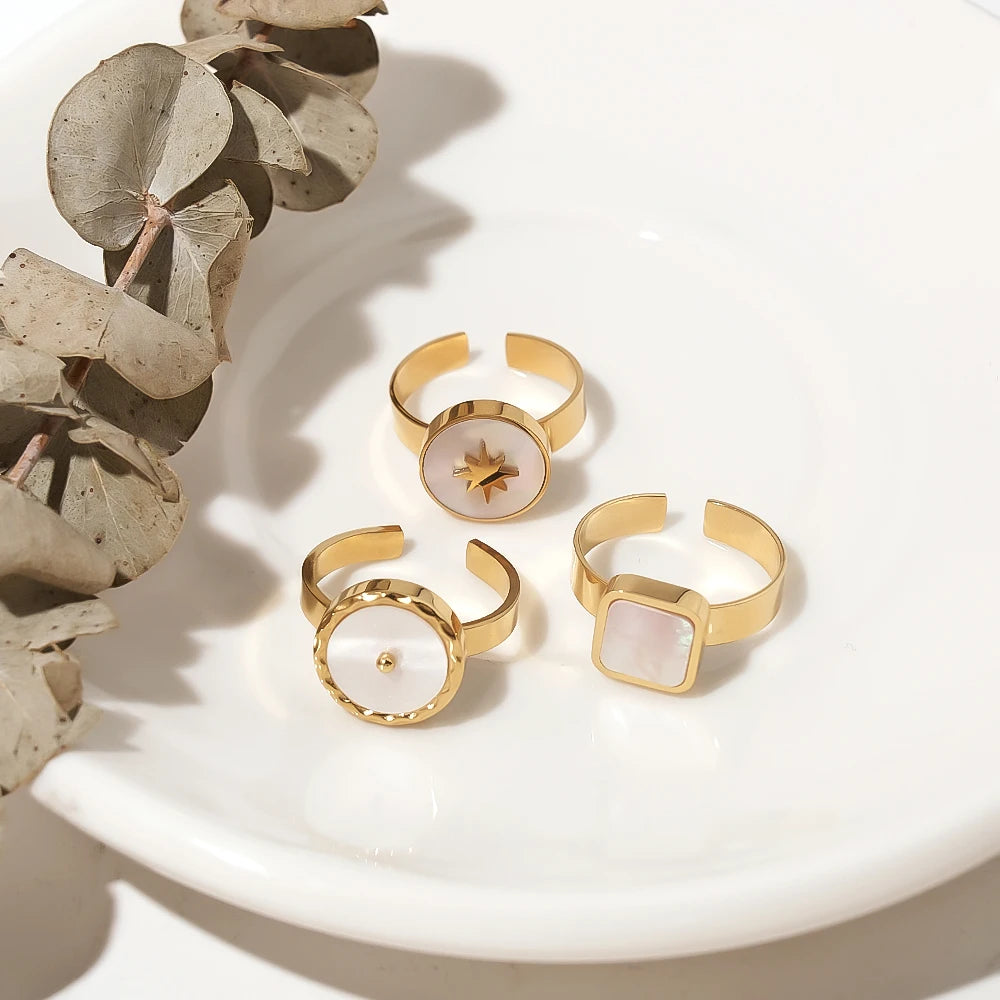 Daiiibabyyy Gold Plated Stainless Steel Rings for Women Natural White Shell Chic Exquisite Trendy Jewelry Waterproof