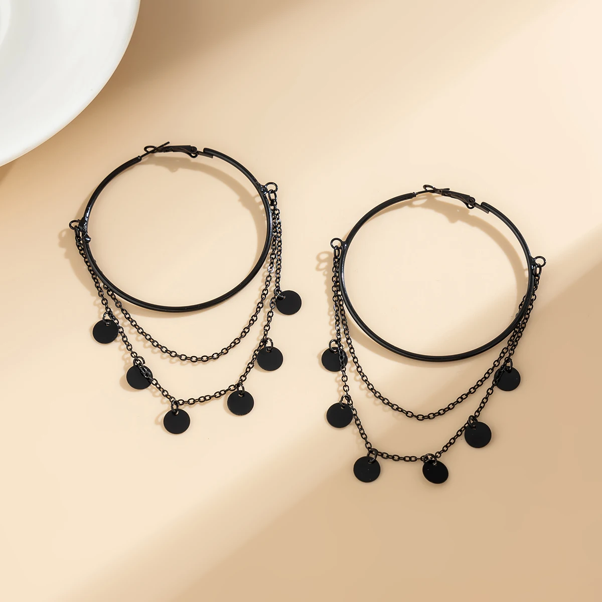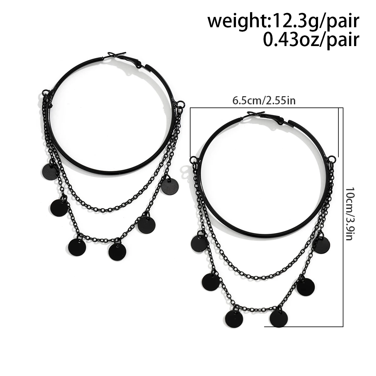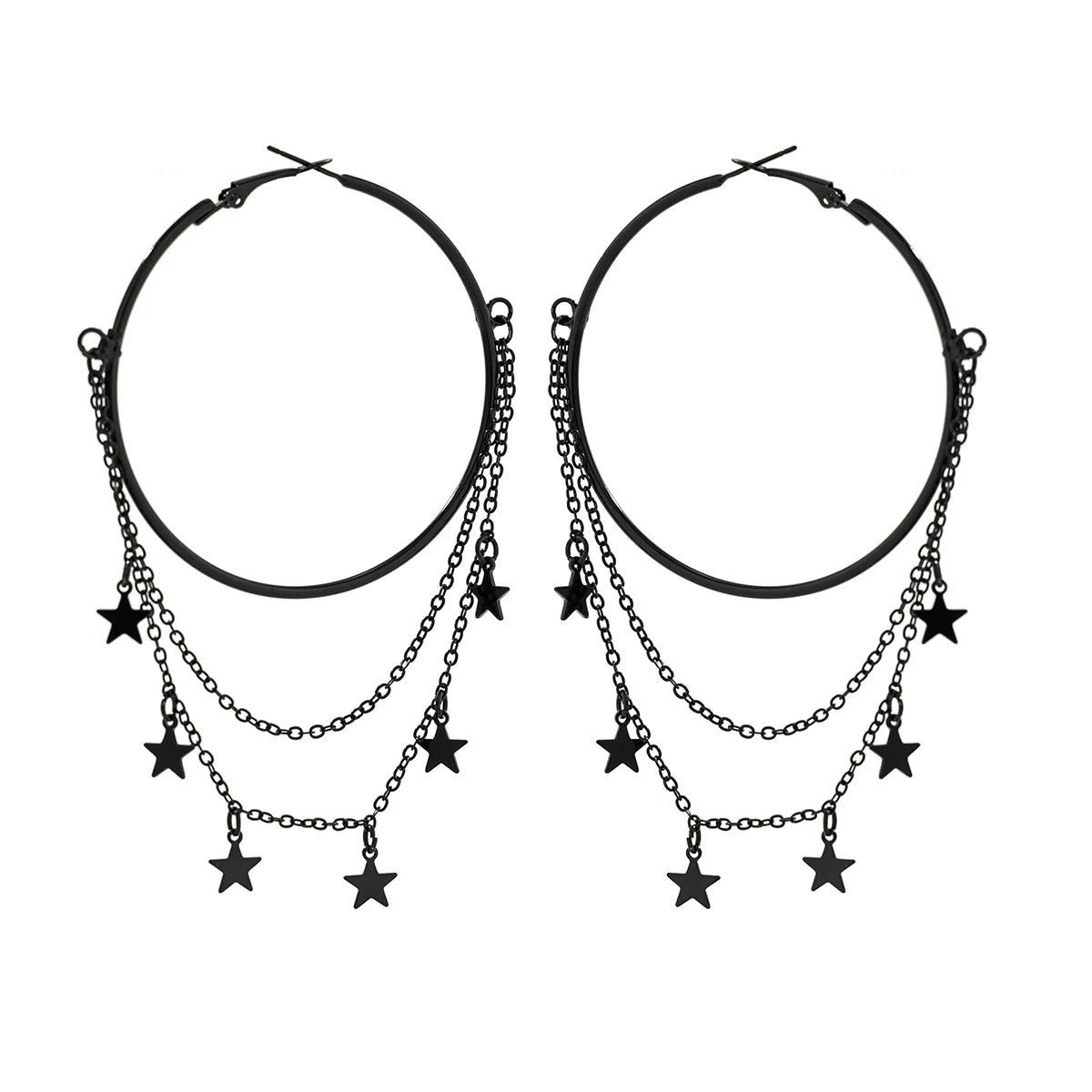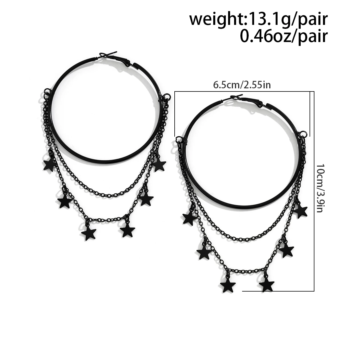 DAIIIBABYYY  -  Gothic Black Metal Big Ring Hoop Earrings Fashion Star Circle Tassel Pendant Earrings Women's Dark Style Jewelry