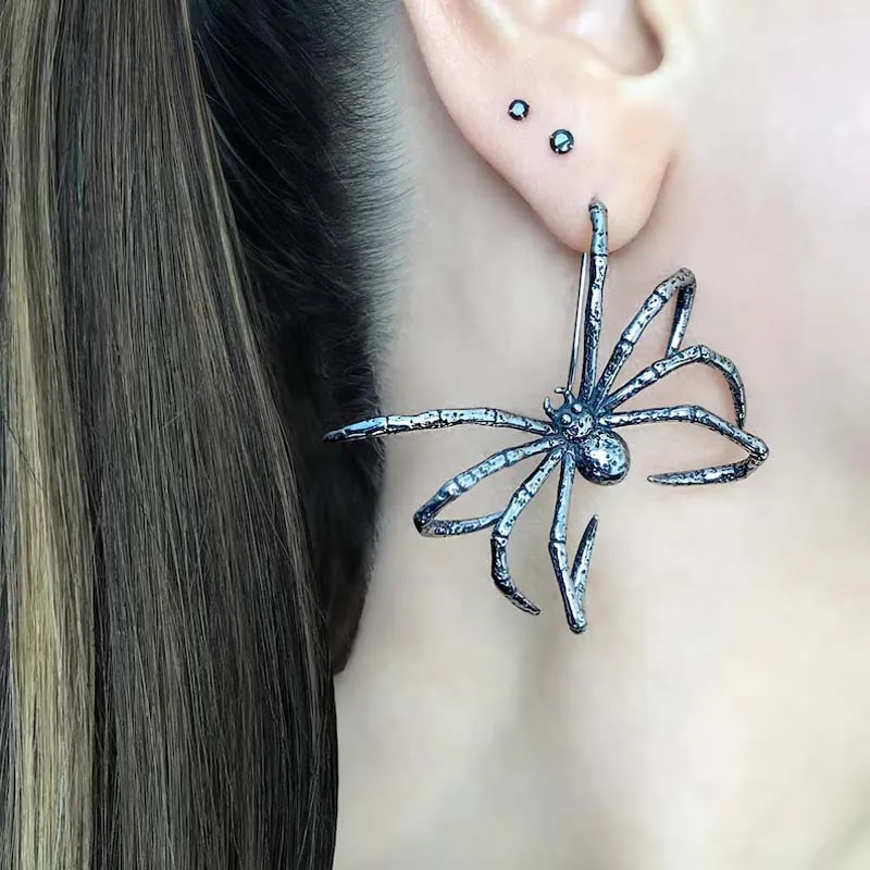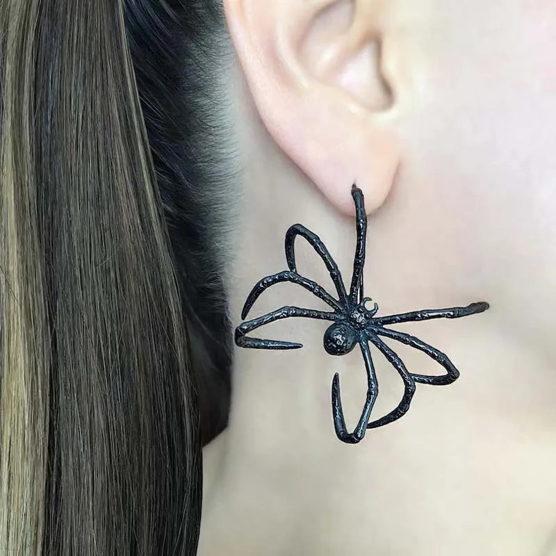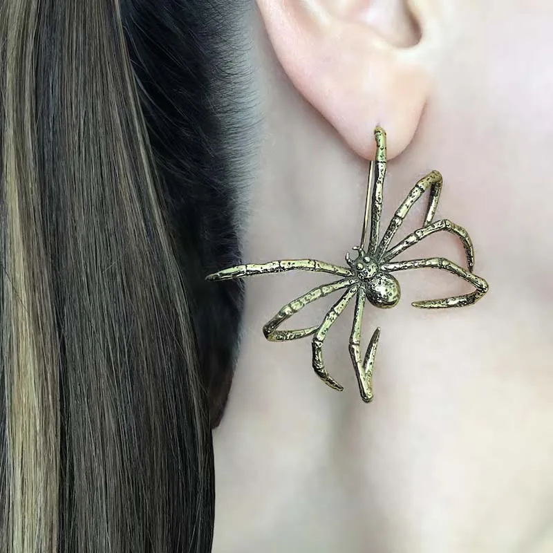 Daiiibabyyy Gothic Metal Spider Pendant Earrings for Women Exaggerated Gold Color Big Spider Personality Earrings Party Jewelry Gifts