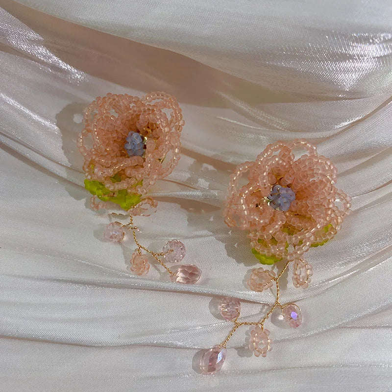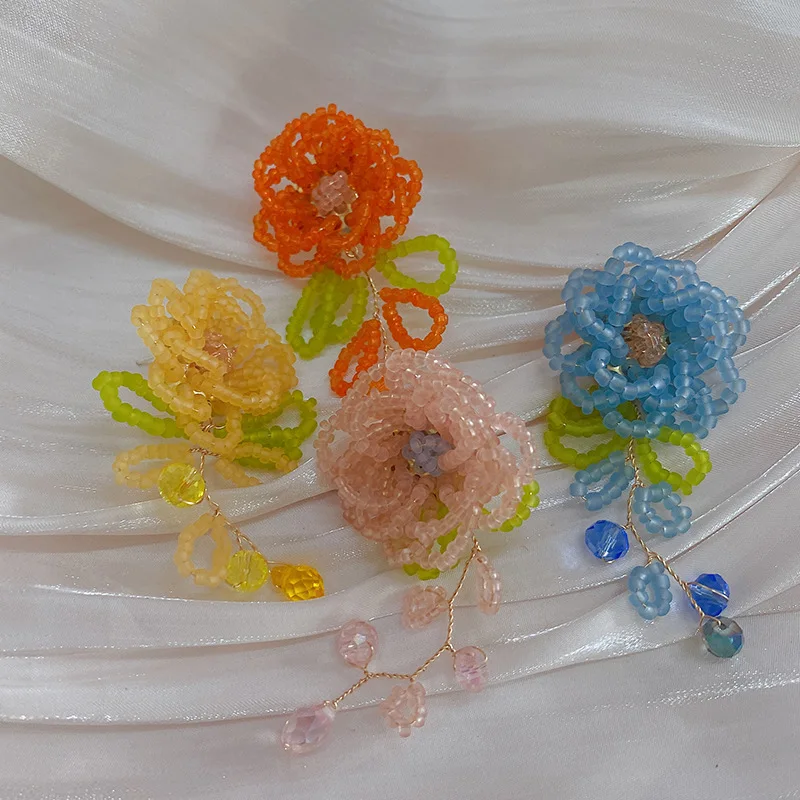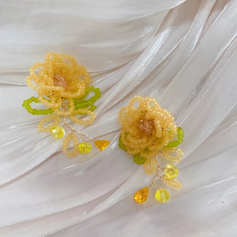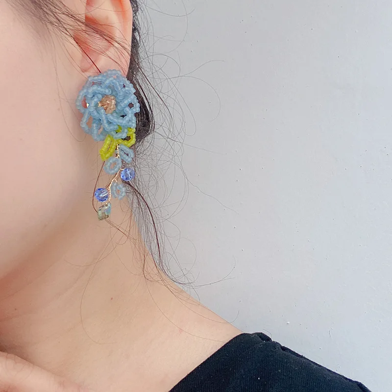 DAIIIBABYYY - Hand Woven Blue-Yellow Hollow Out Flower Leaf Tassel Crystal Drop Earrings for Women Acrylic Beaded Earrings Jewelry