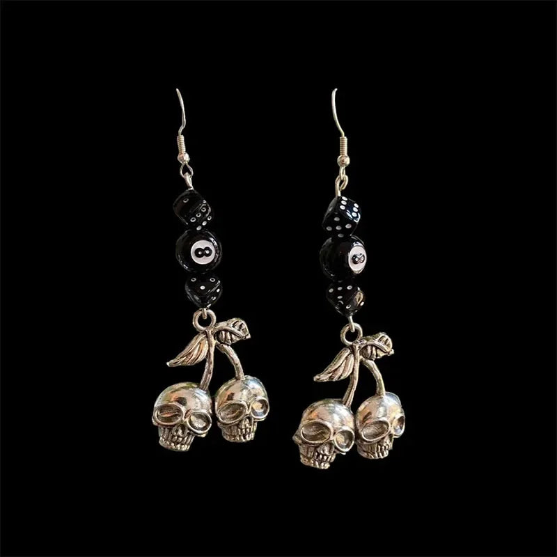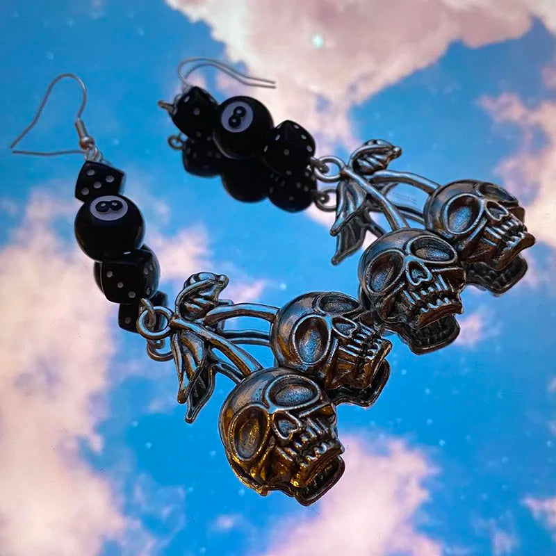 DAIIIBABYYY - handmade skull lucky cherry cherries grunge earrings eight balls black dice