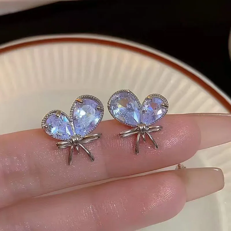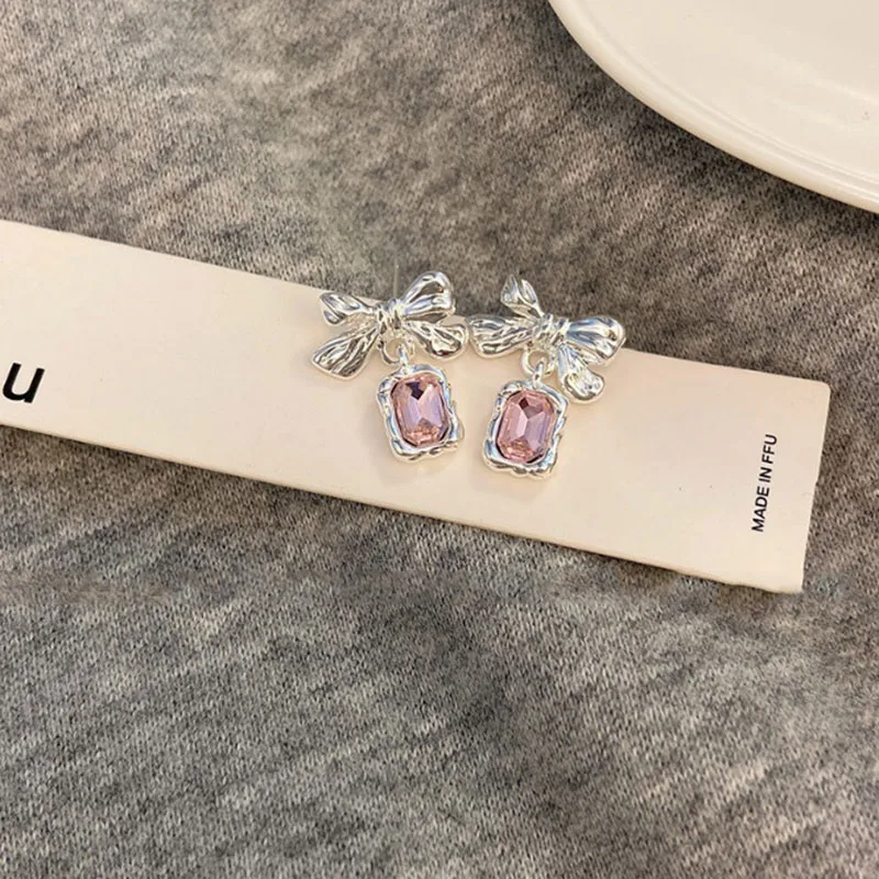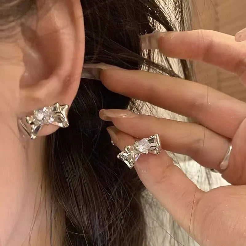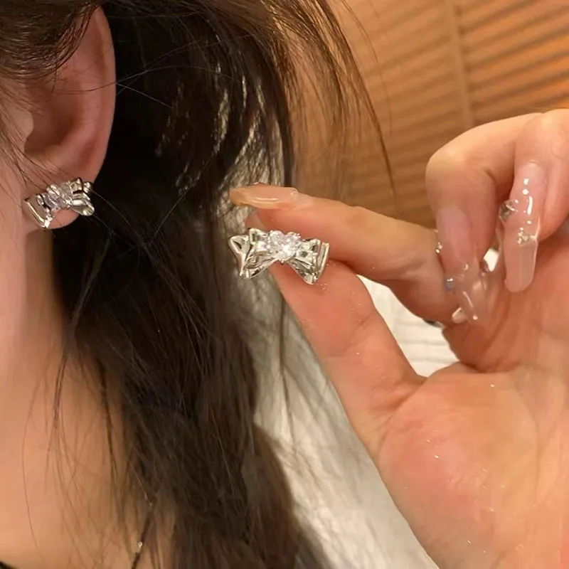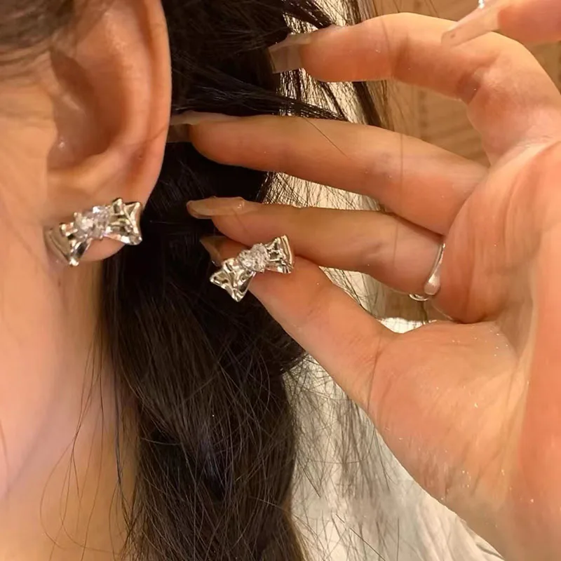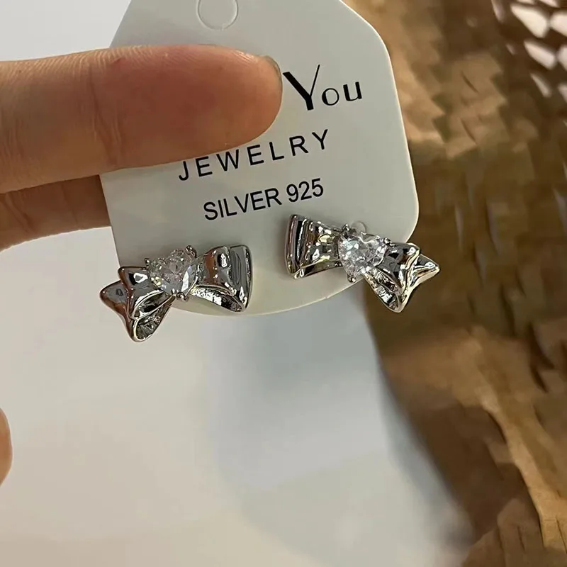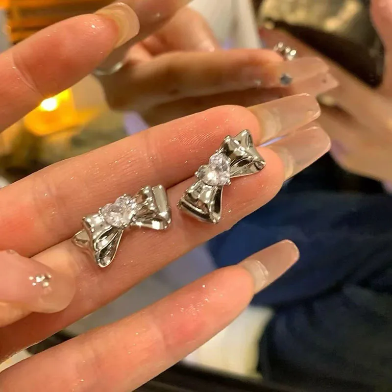 DAIIIBABYYY  -  Heart Shaped Zircon Bow Earrings Sweet Cool Female Creative Design Cool Transcendent Style Earrings High-End Jewelry Accessories